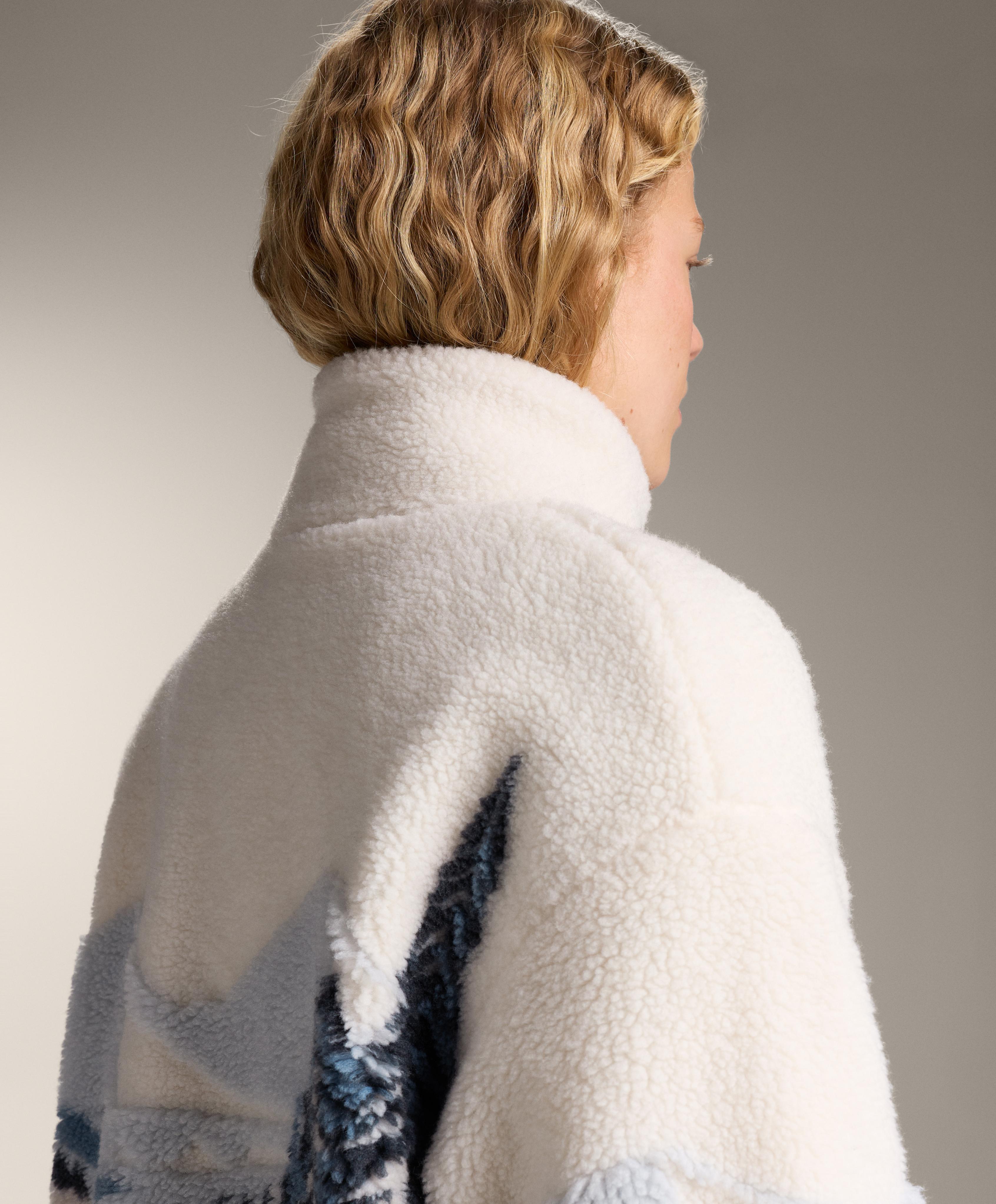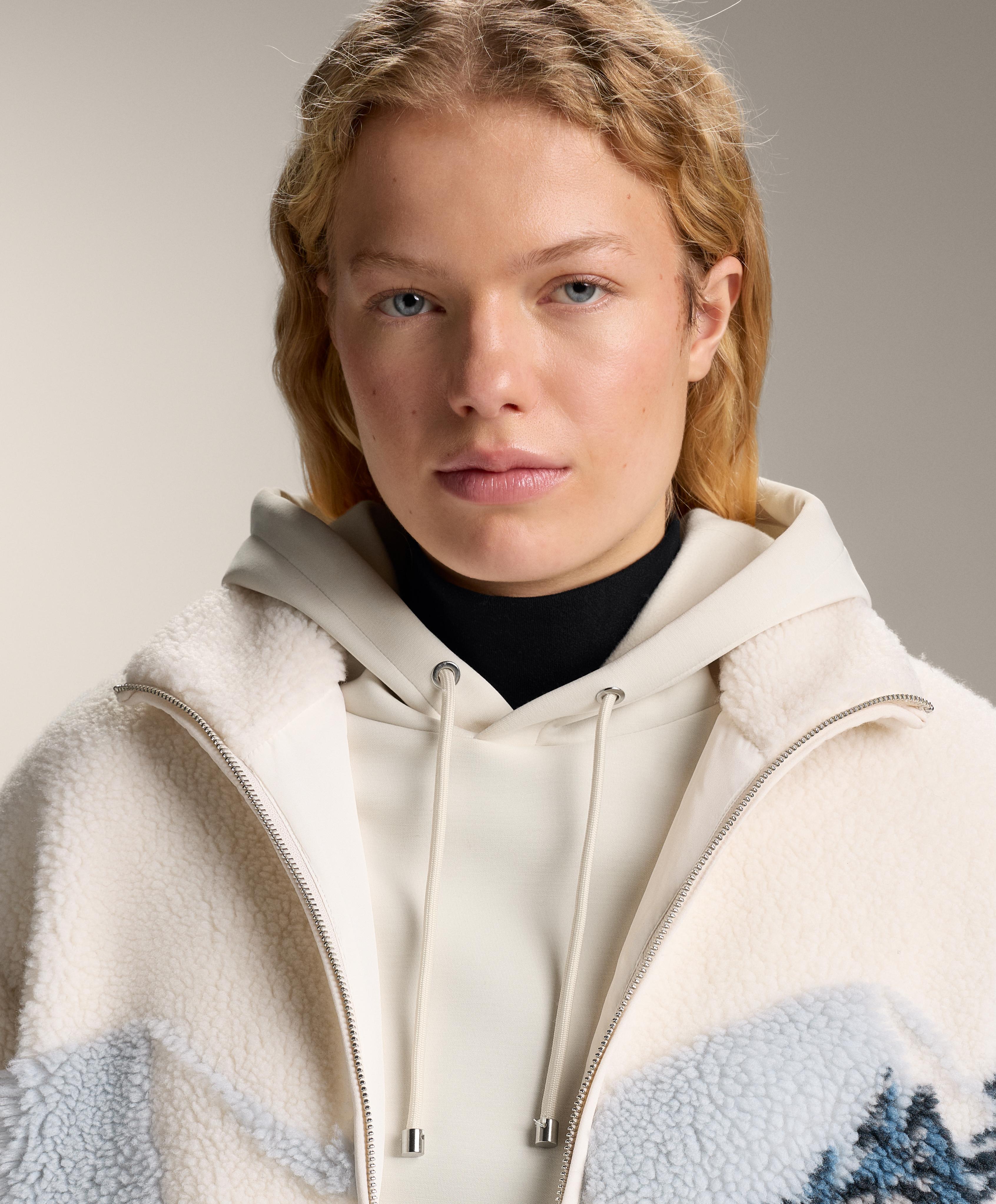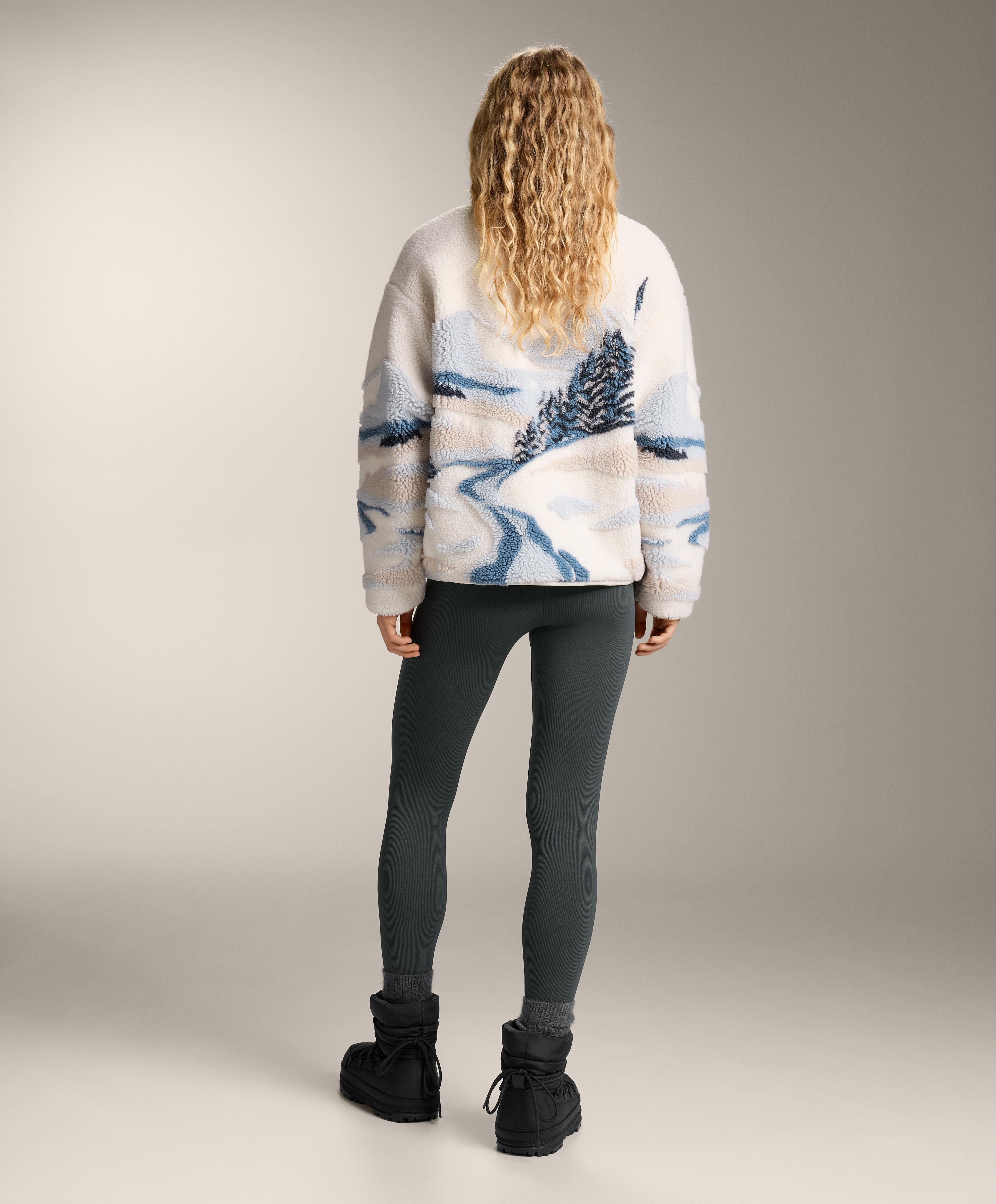 Oysho Куртка из искусственной овчины с горным принтом, экрю