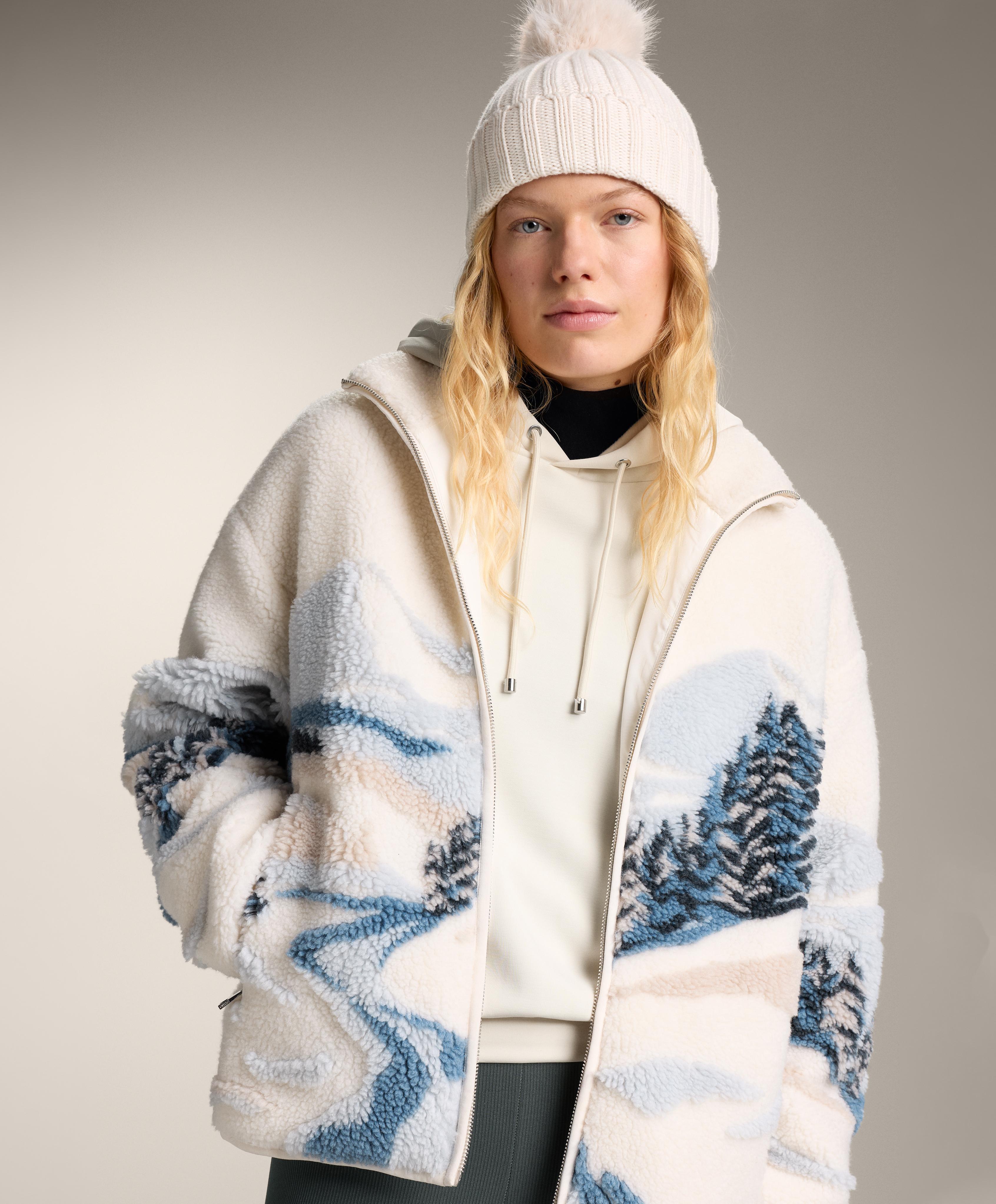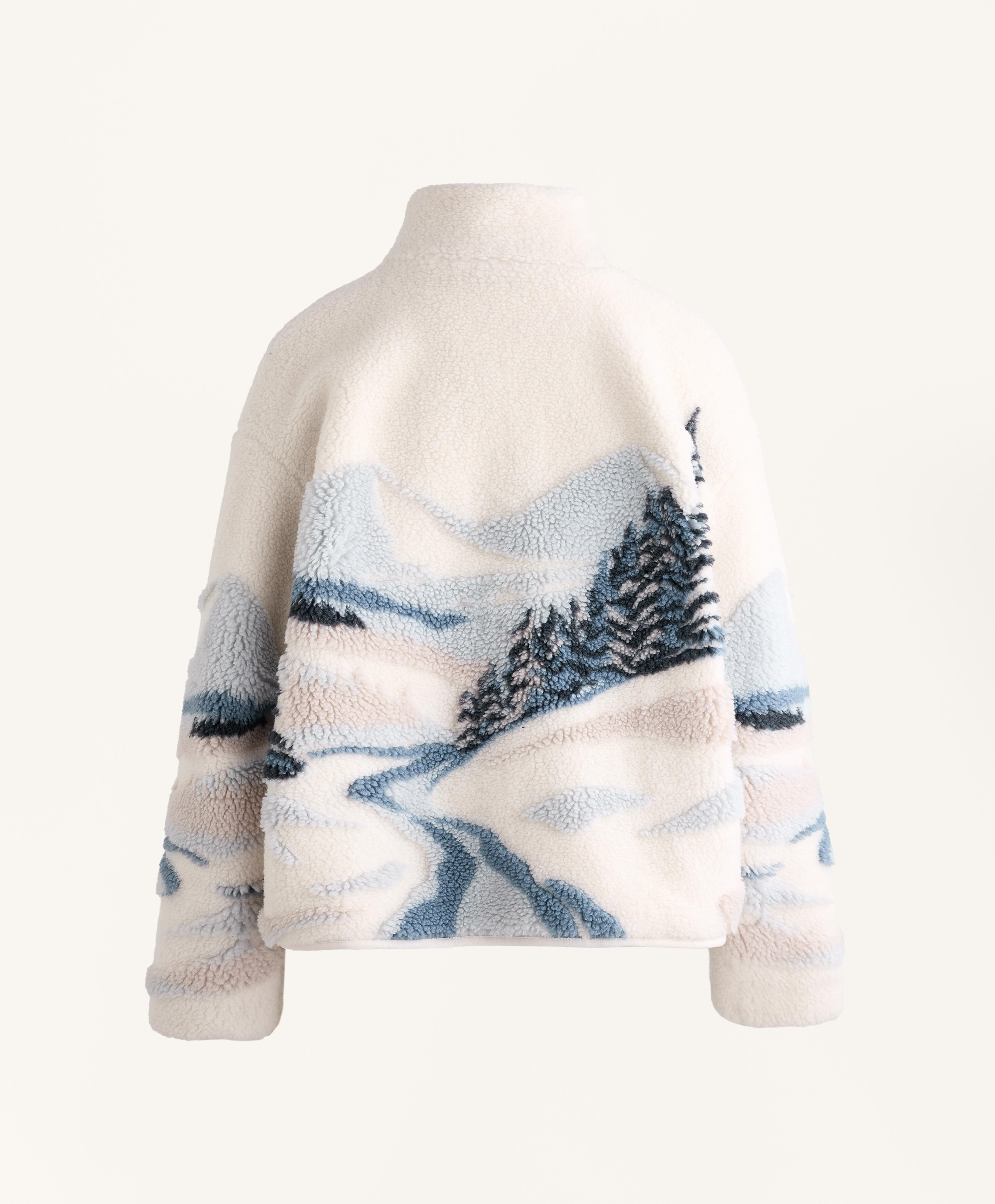 Куртка из искусственной овчины с горным принтом, изготовленная из дышащей, высокопрочной ткани с подкладкой из полярного флиса. Застёжка-молния спереди. Боковые карманы.