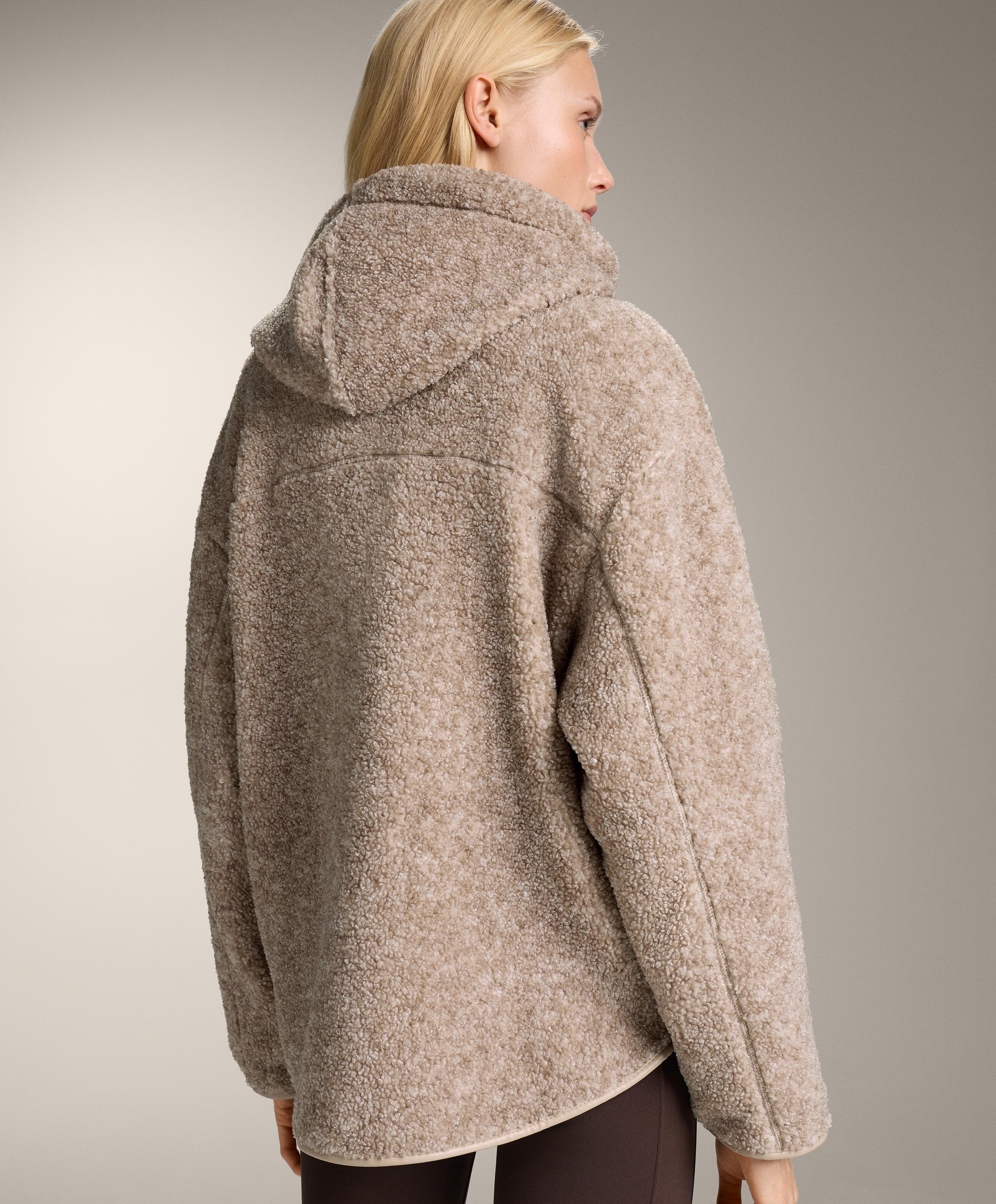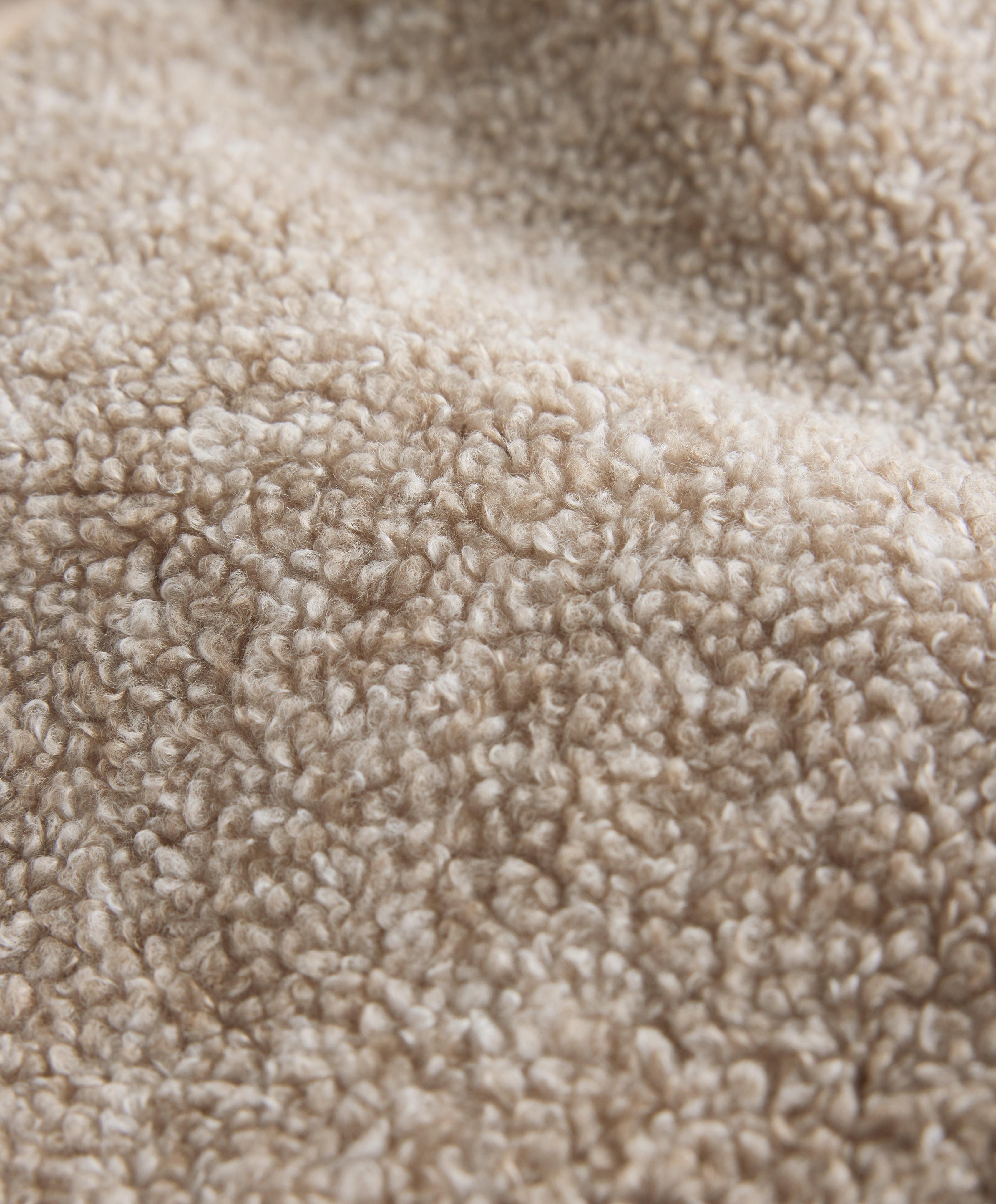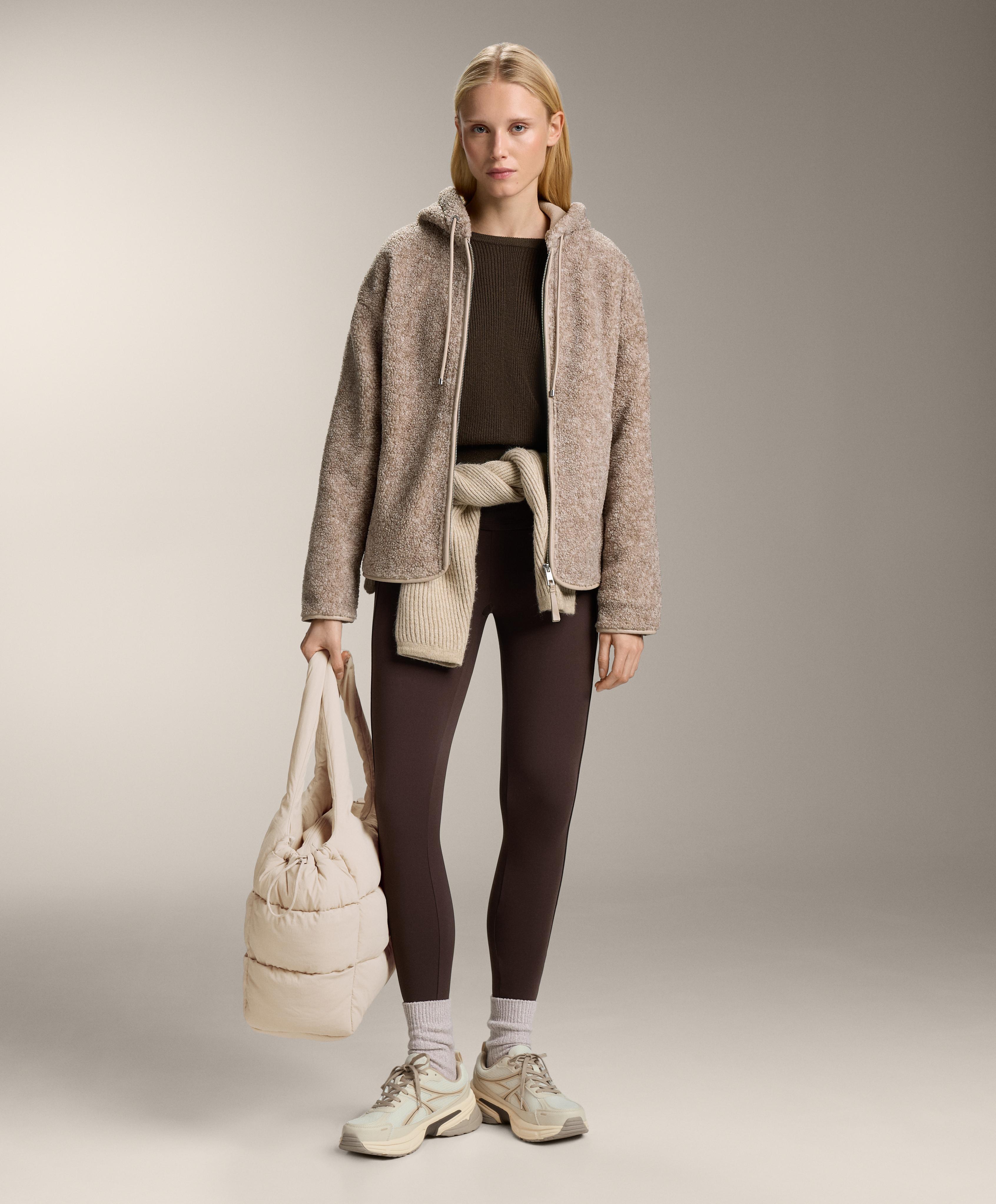 Куртка из искусственной овчины с капюшоном, регулируемым шнурком, и застежкой-молнией спереди. Передние карманы на молнии и начес с внутренней стороны. Дышащая и износостойкая ткань.