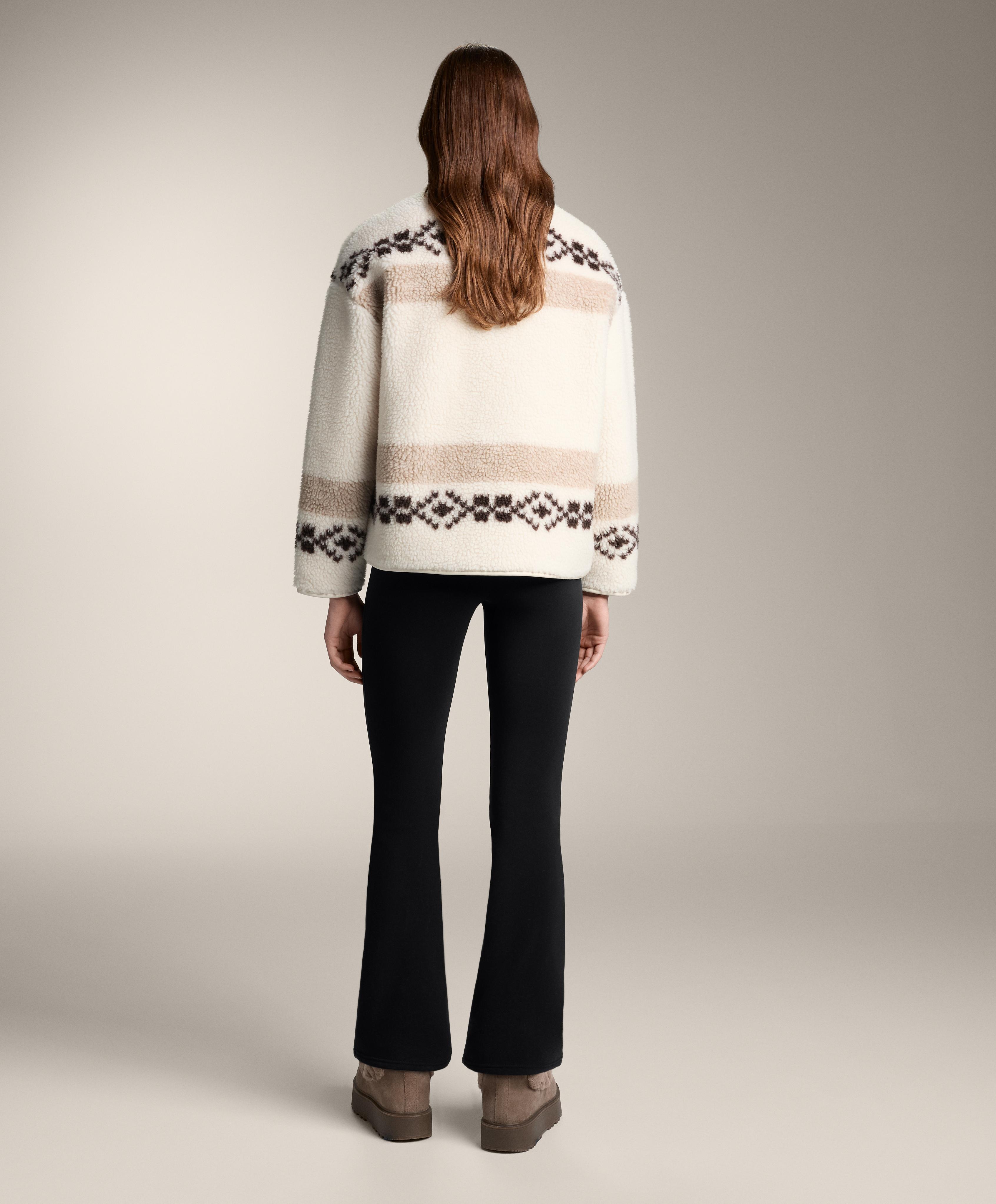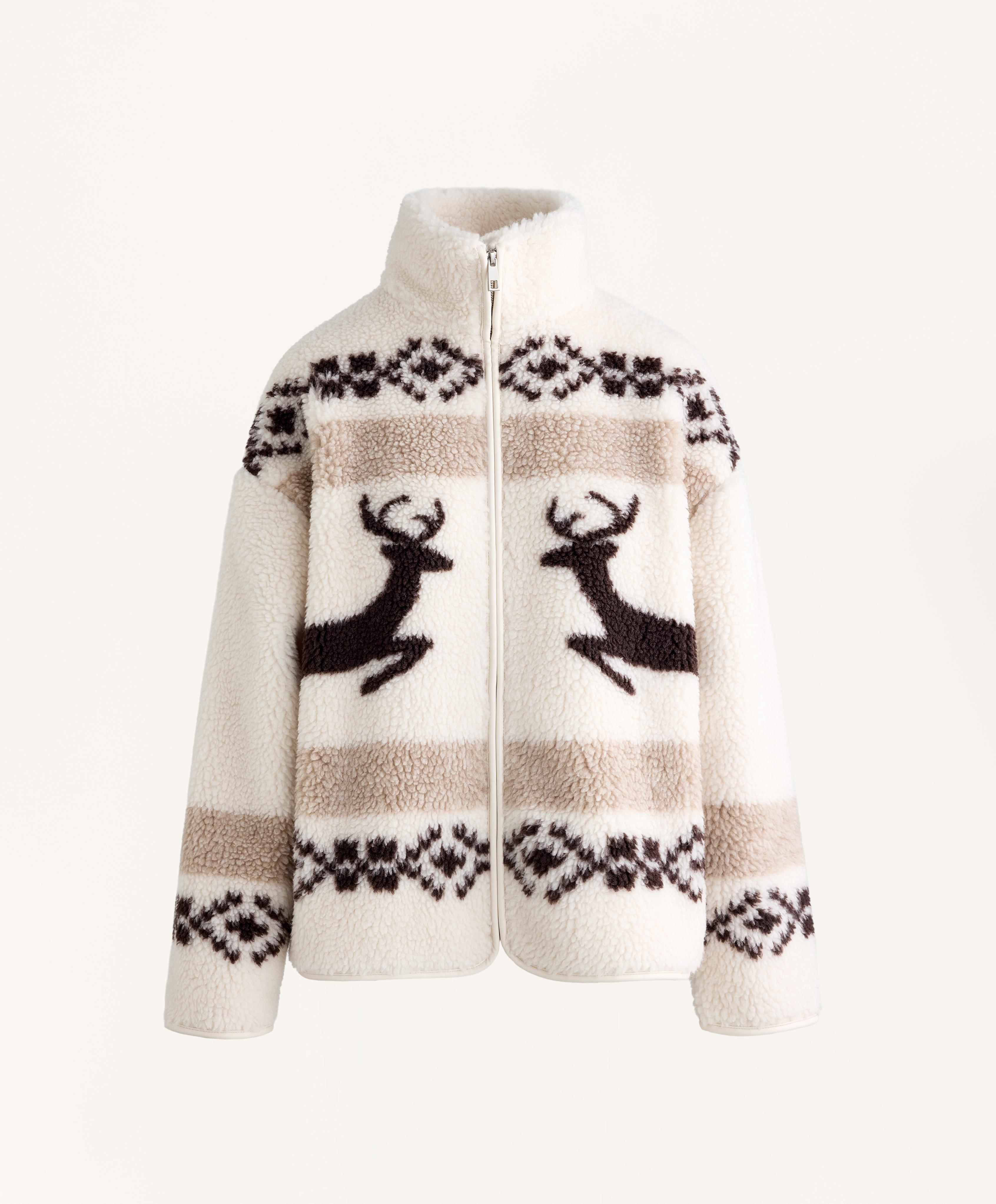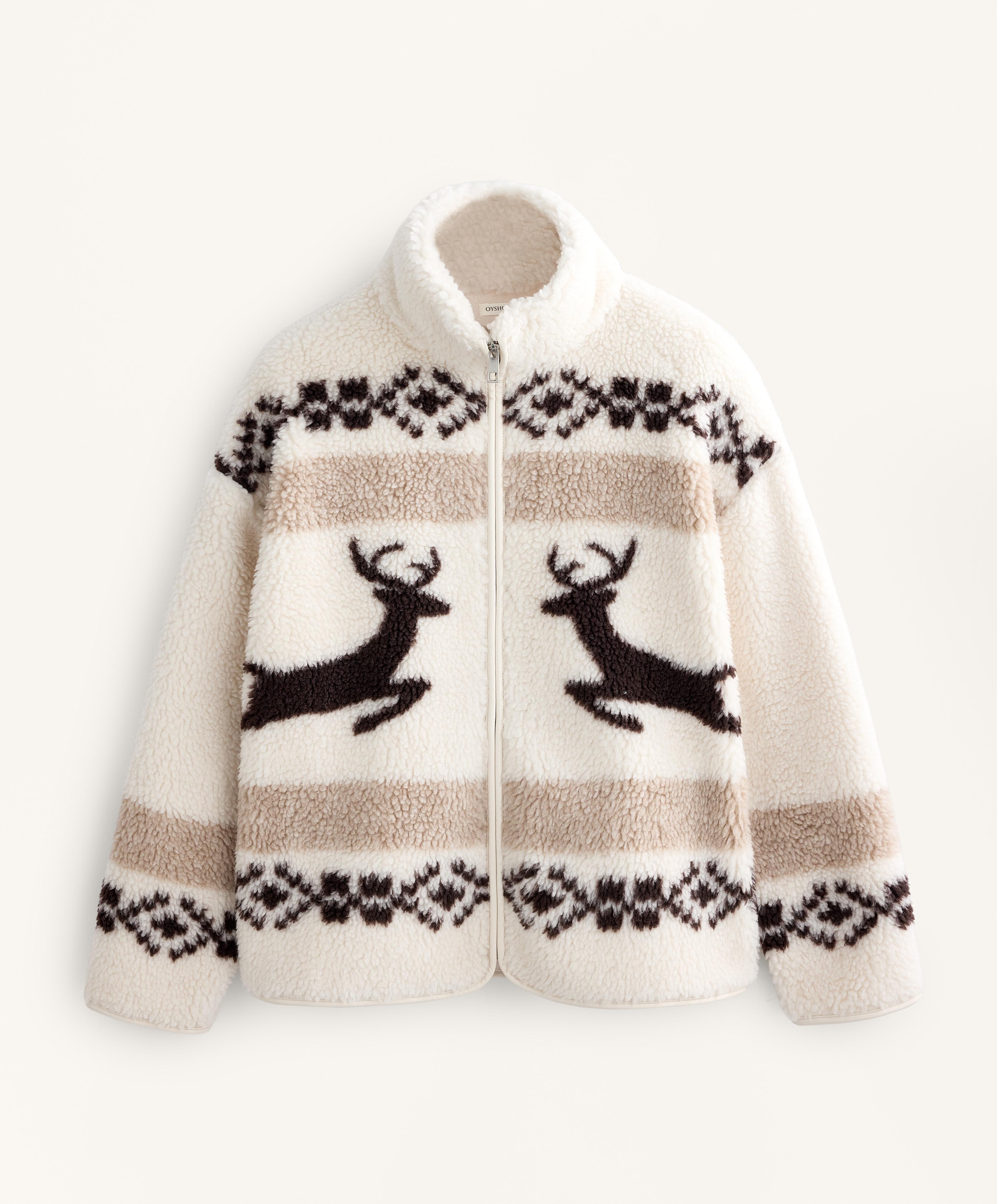 Oysho Куртка из искусственной овчины с оленями и высоким воротником, экрю