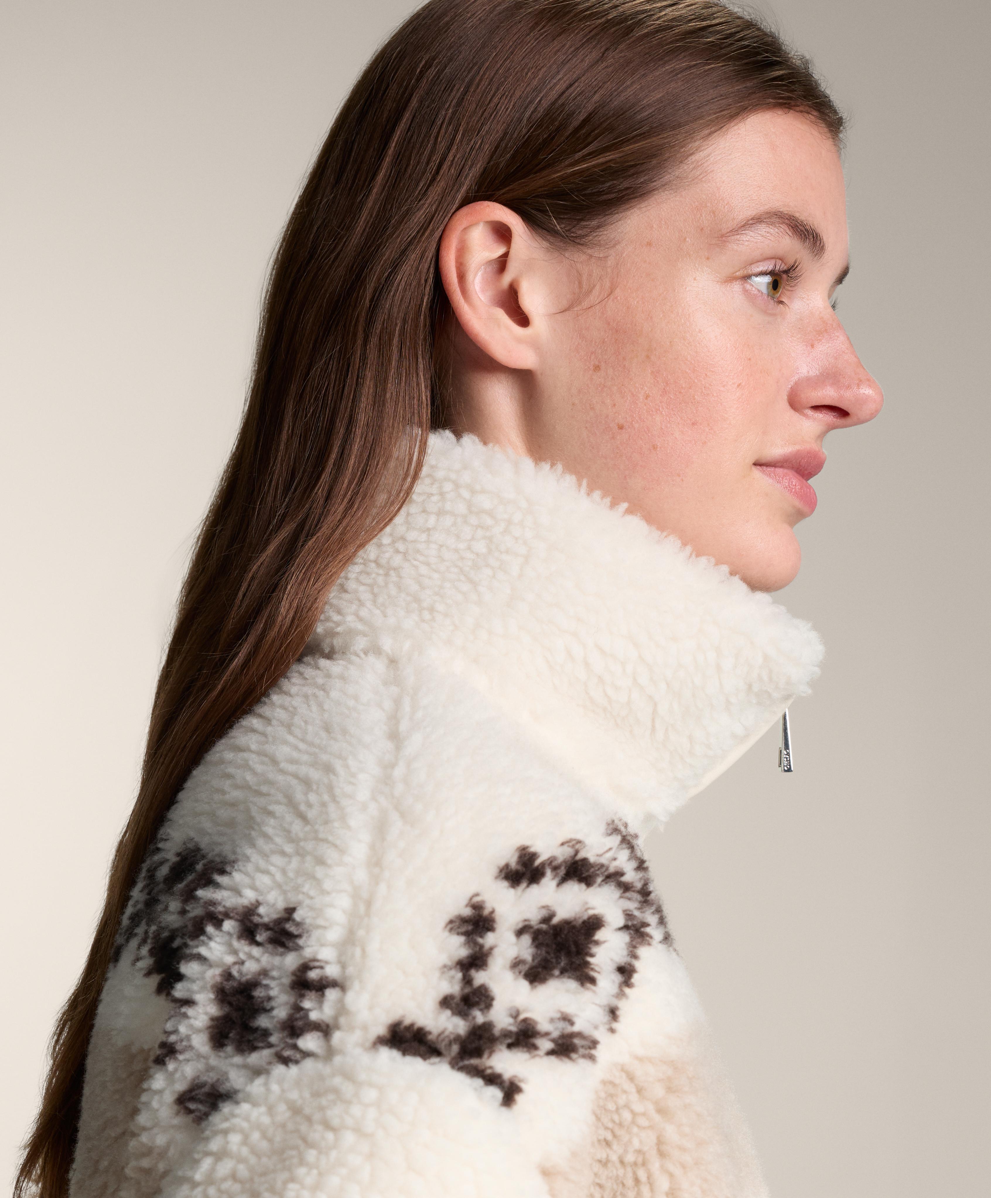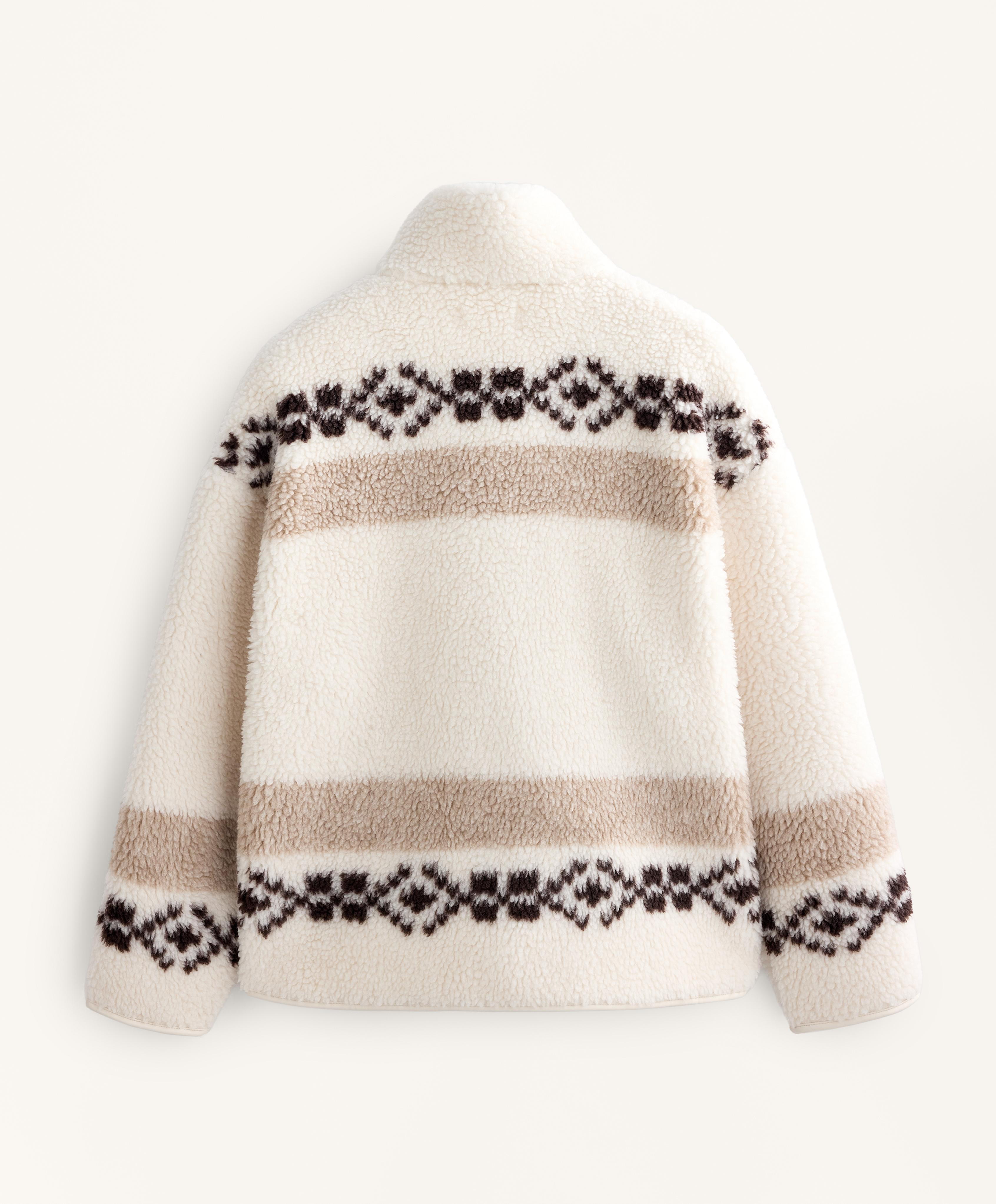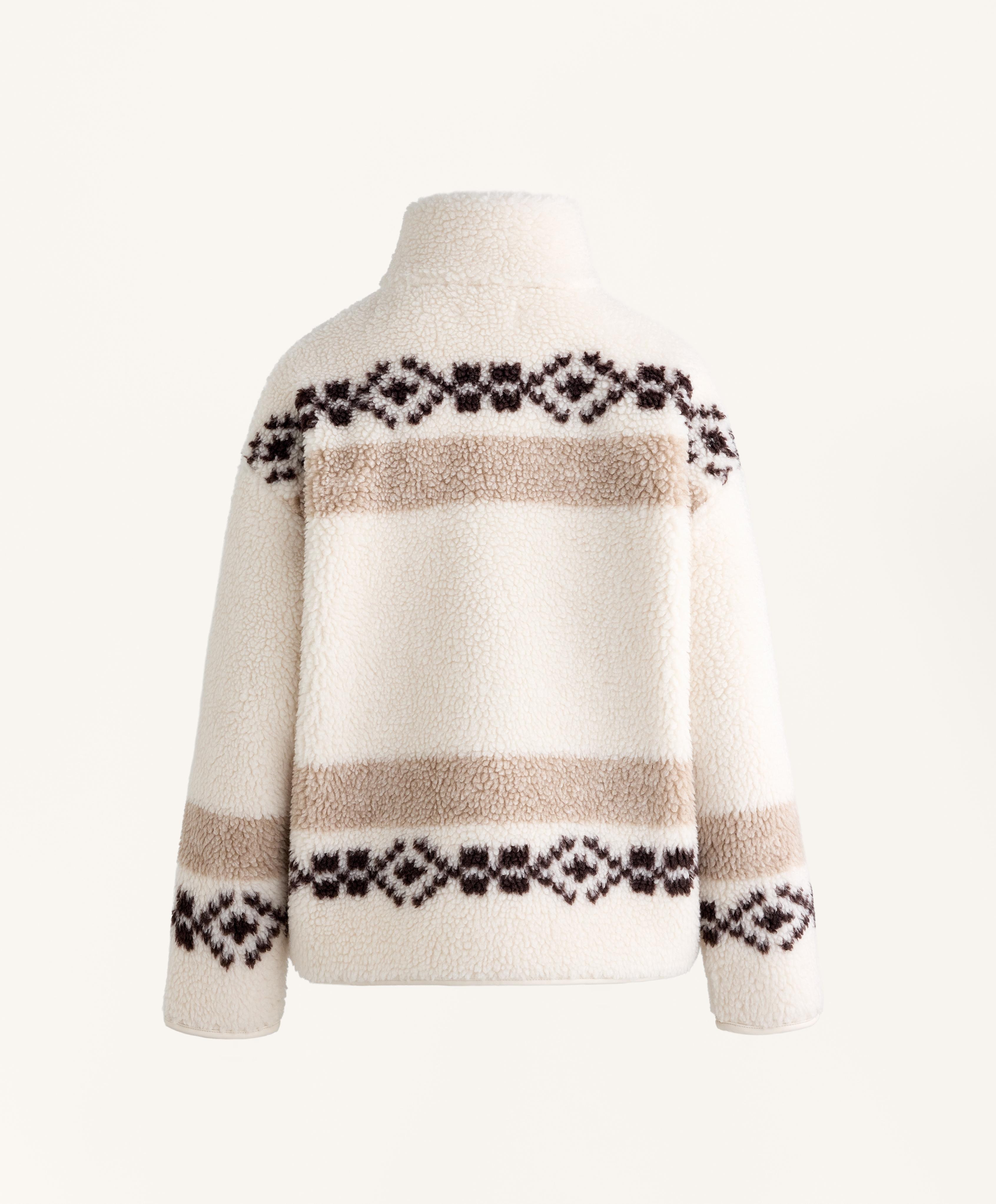 Oysho Куртка из искусственной овчины с оленями и высоким воротником, экрю