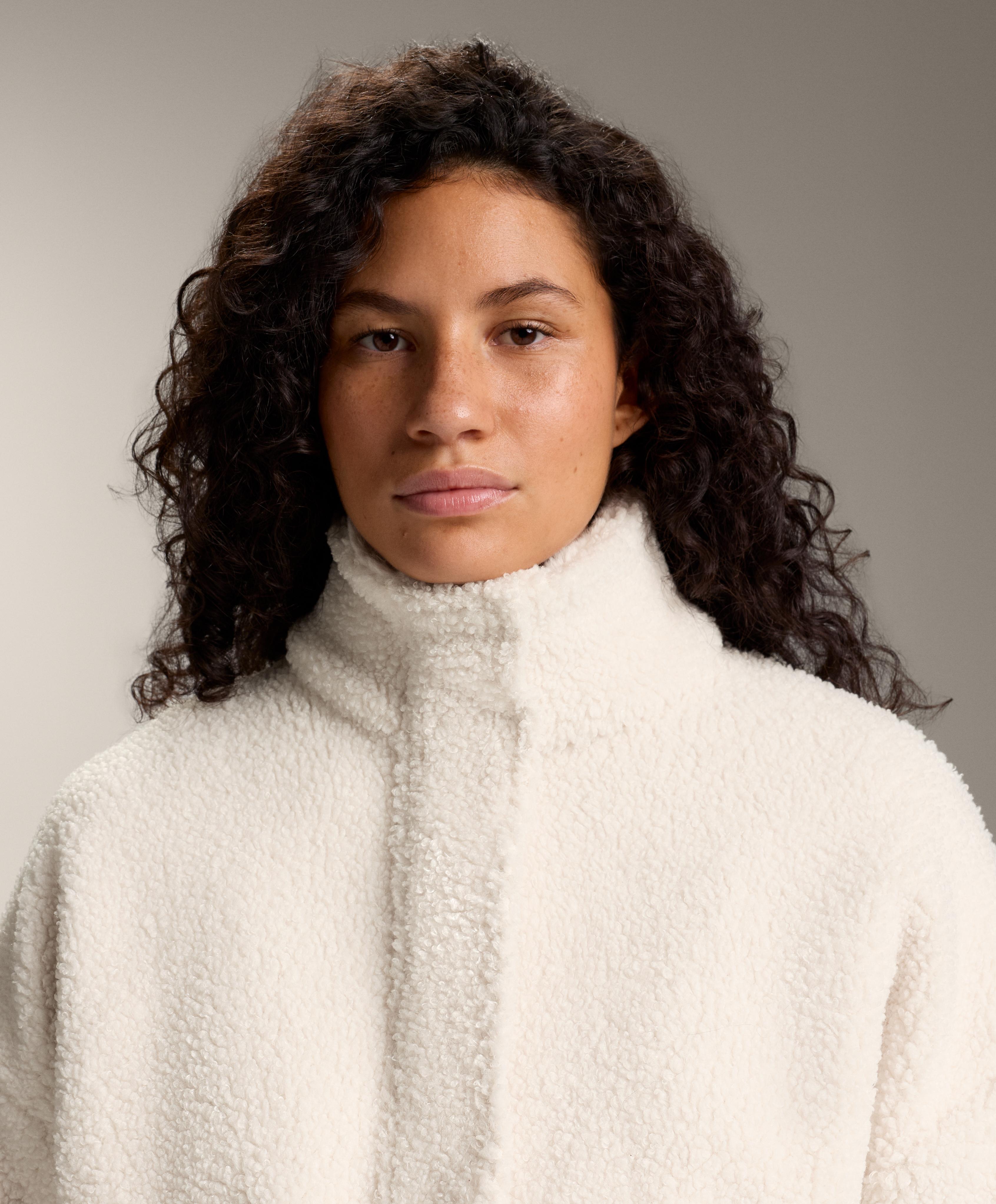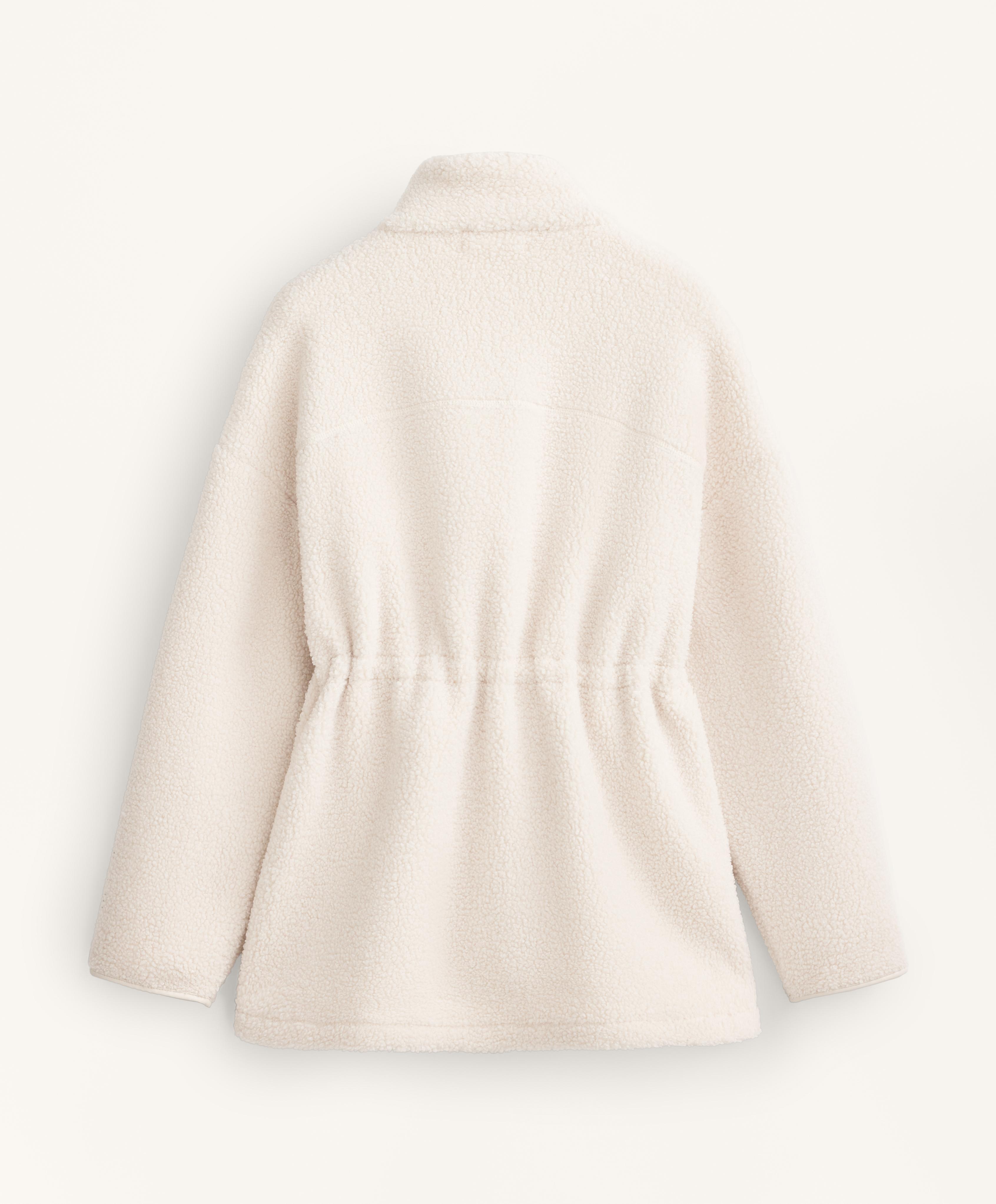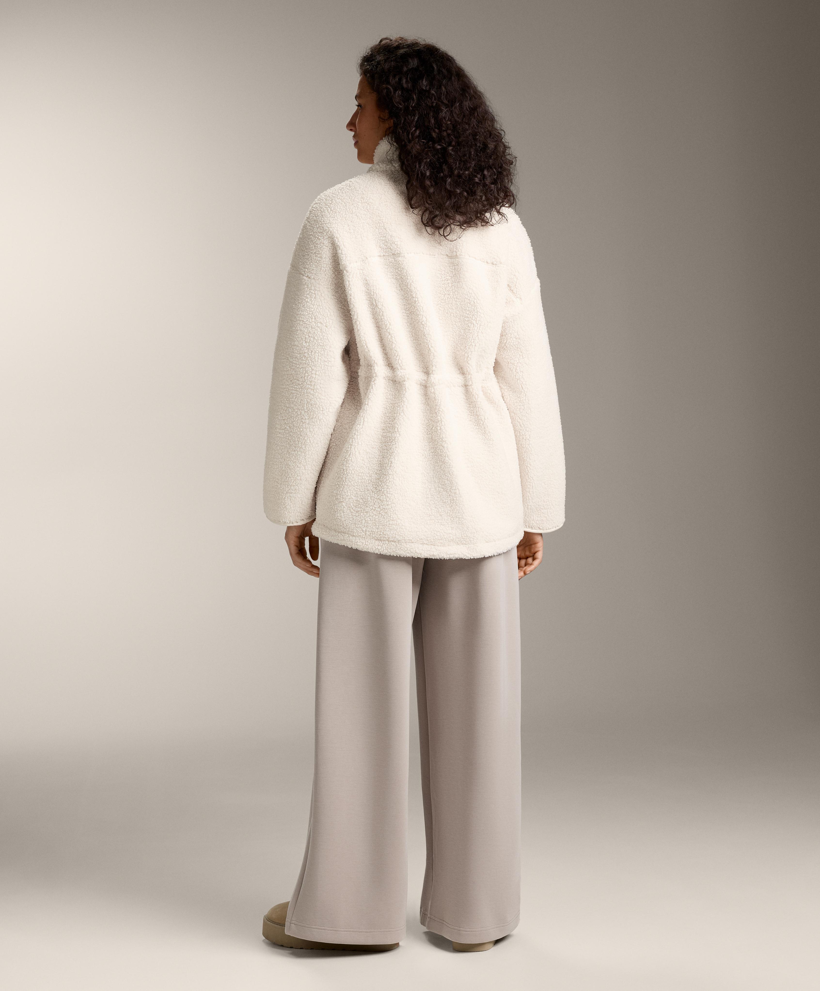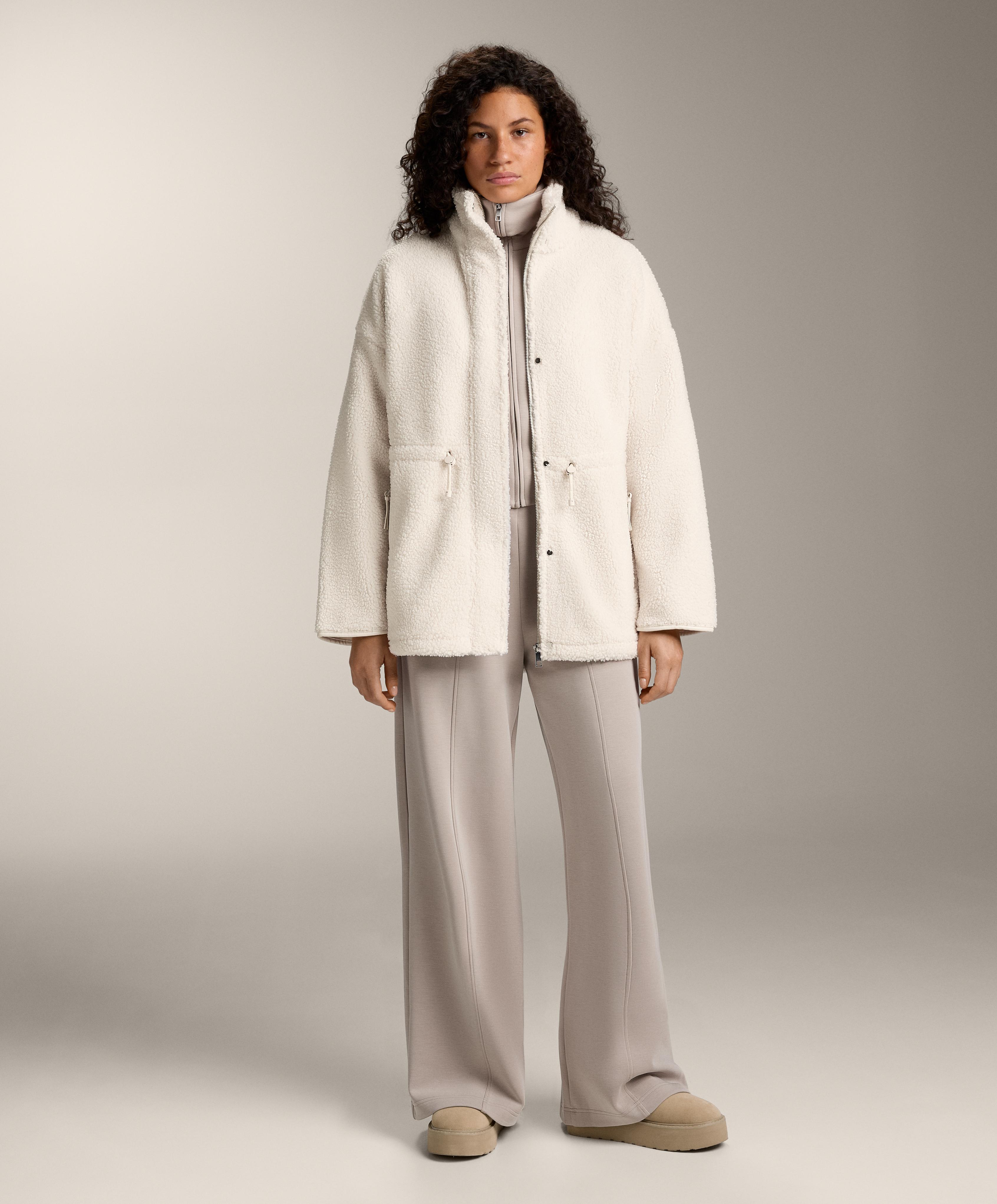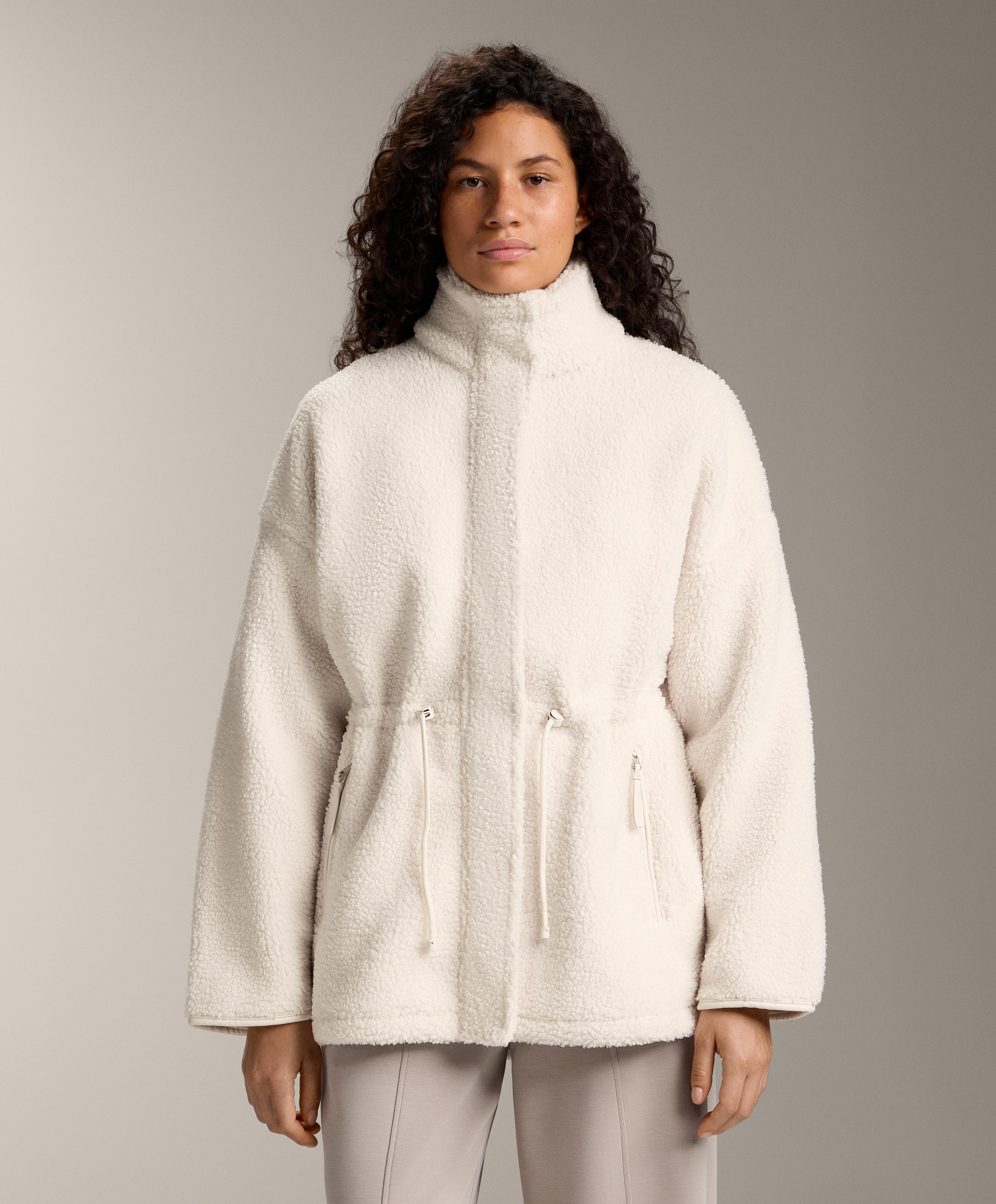 Куртка из воздухопроницаемой искусственной овчины высокой прочности с флисовым подкладом. Застежка-молния спереди и регулируемая талия на эластичном шнурке. Передние карманы.