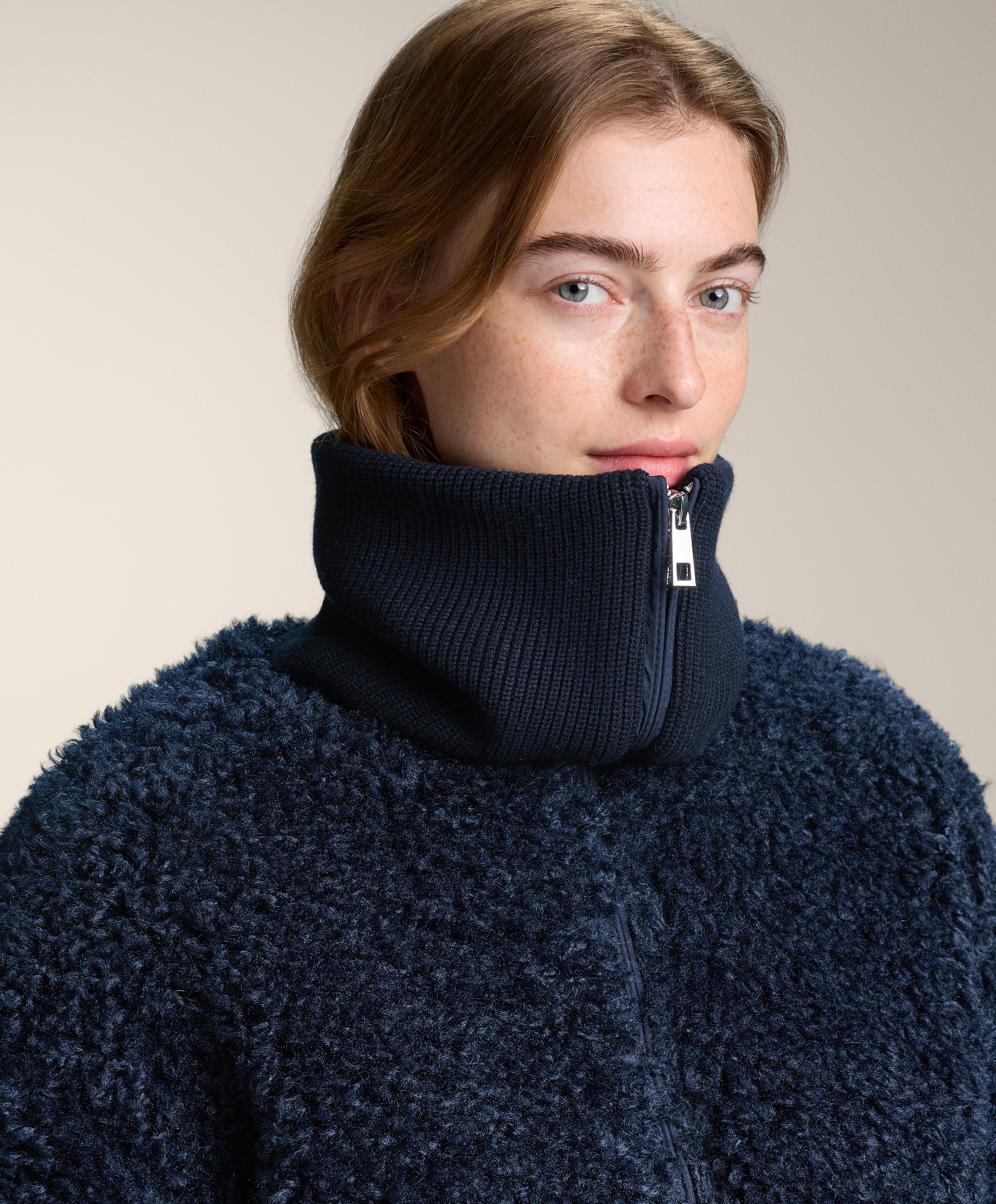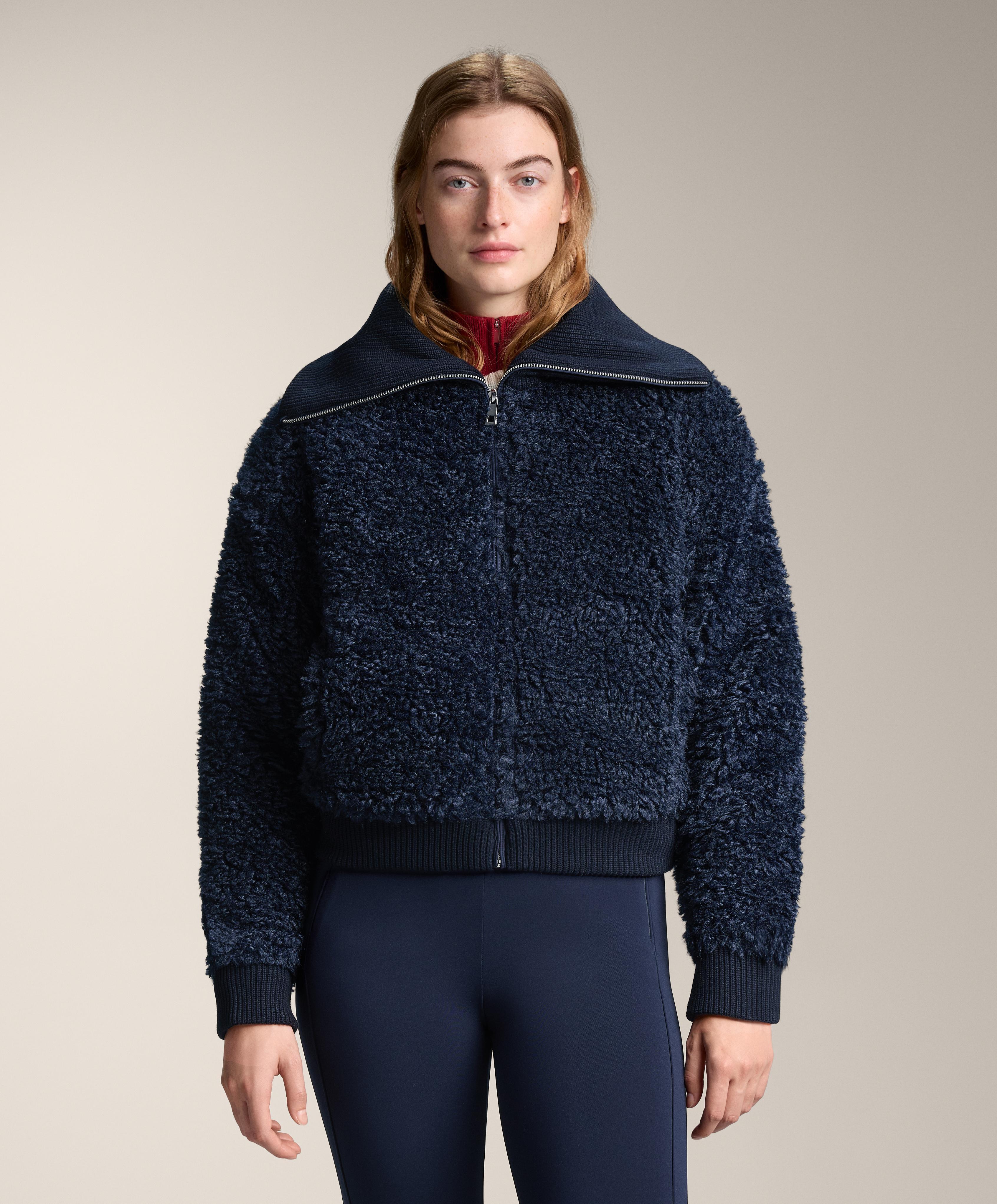 Куртка из искусственной овчины с текстурой «кудрявый мех», с застежкой-молнией спереди и передними карманами. Вязаные детали в рубчик на воротнике, манжетах и по нижнему краю. Изготовлена из воздухопроницаемой и высокопрочной ткани. Эта куртка сертифицирована для защиты при температурах от +10ºC (низкая активность) до -10ºC (умеренная активность), что было подтверждено в ходе стандартизированного теста с имитацией ветра 0,4 м/с, когда на испытуемом были футболка с длинным рукавом и высоким воротником, брюки, нижнее белье, носки, обувь, перчатки и вязаная шапка.