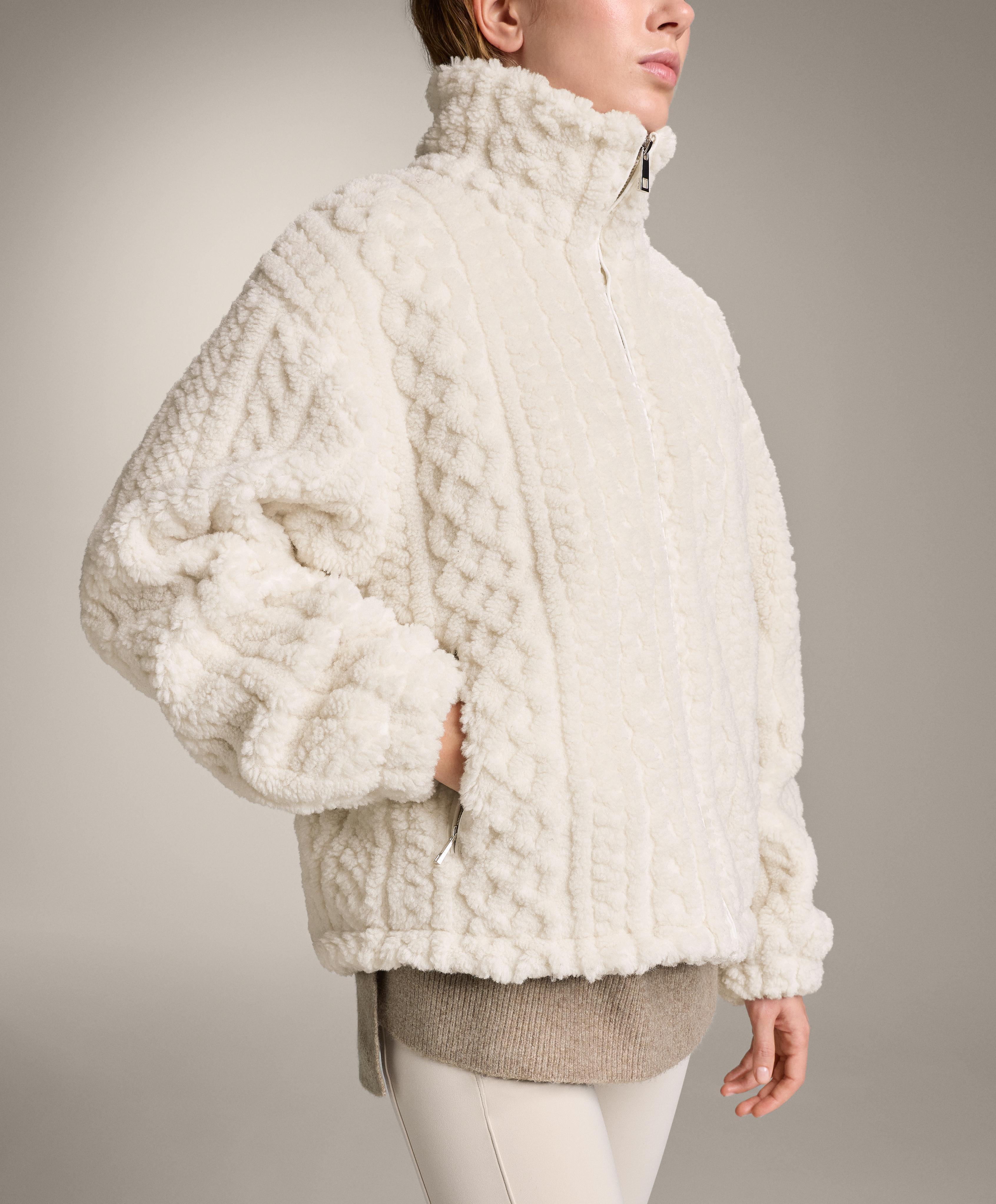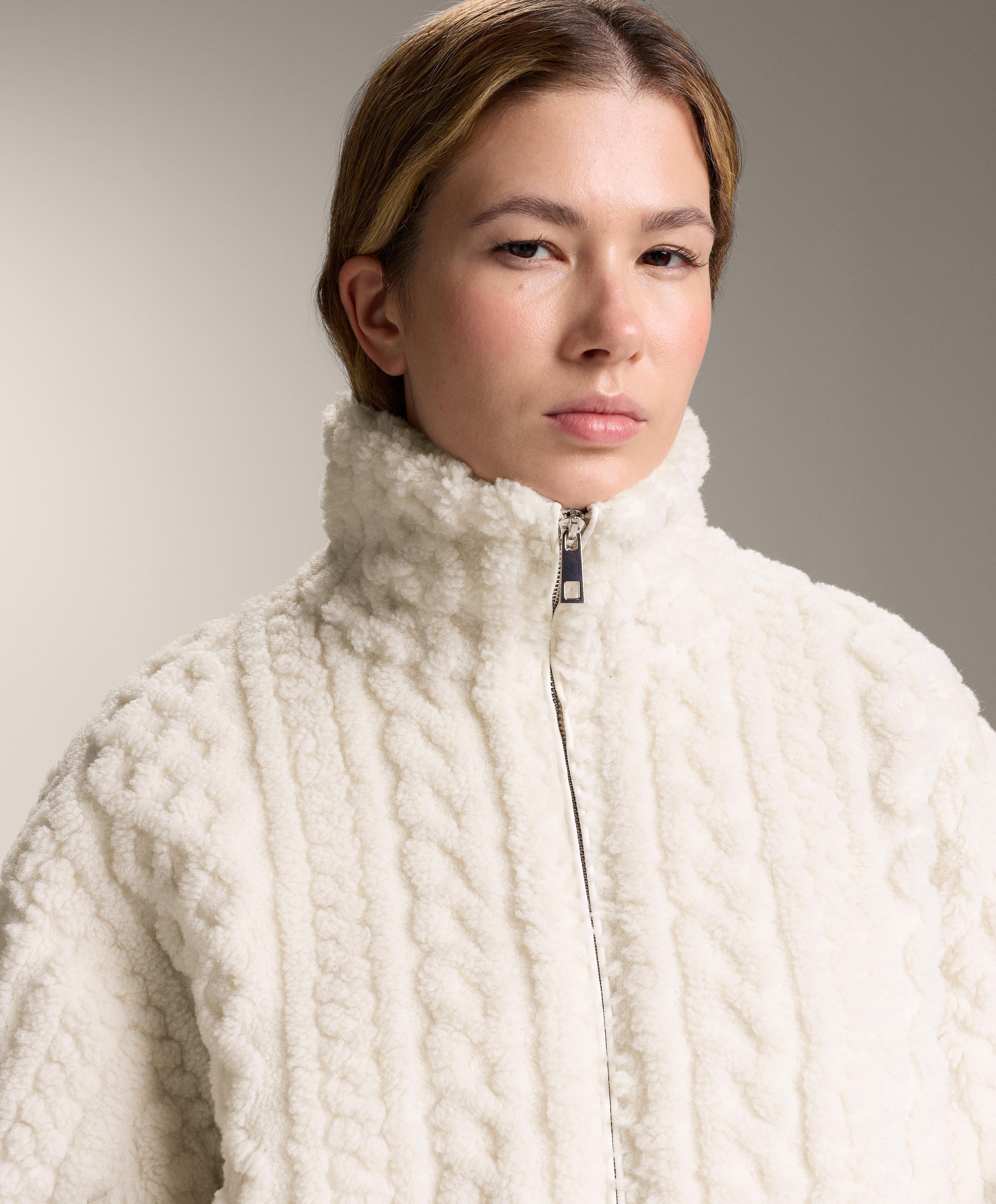 Куртка из искусственной овчины с отделкой «косичка», изготовленная из высокопрочной дышащей ткани, с внутренней частью из термобелья. Застёжка-молния спереди. Боковые карманы.