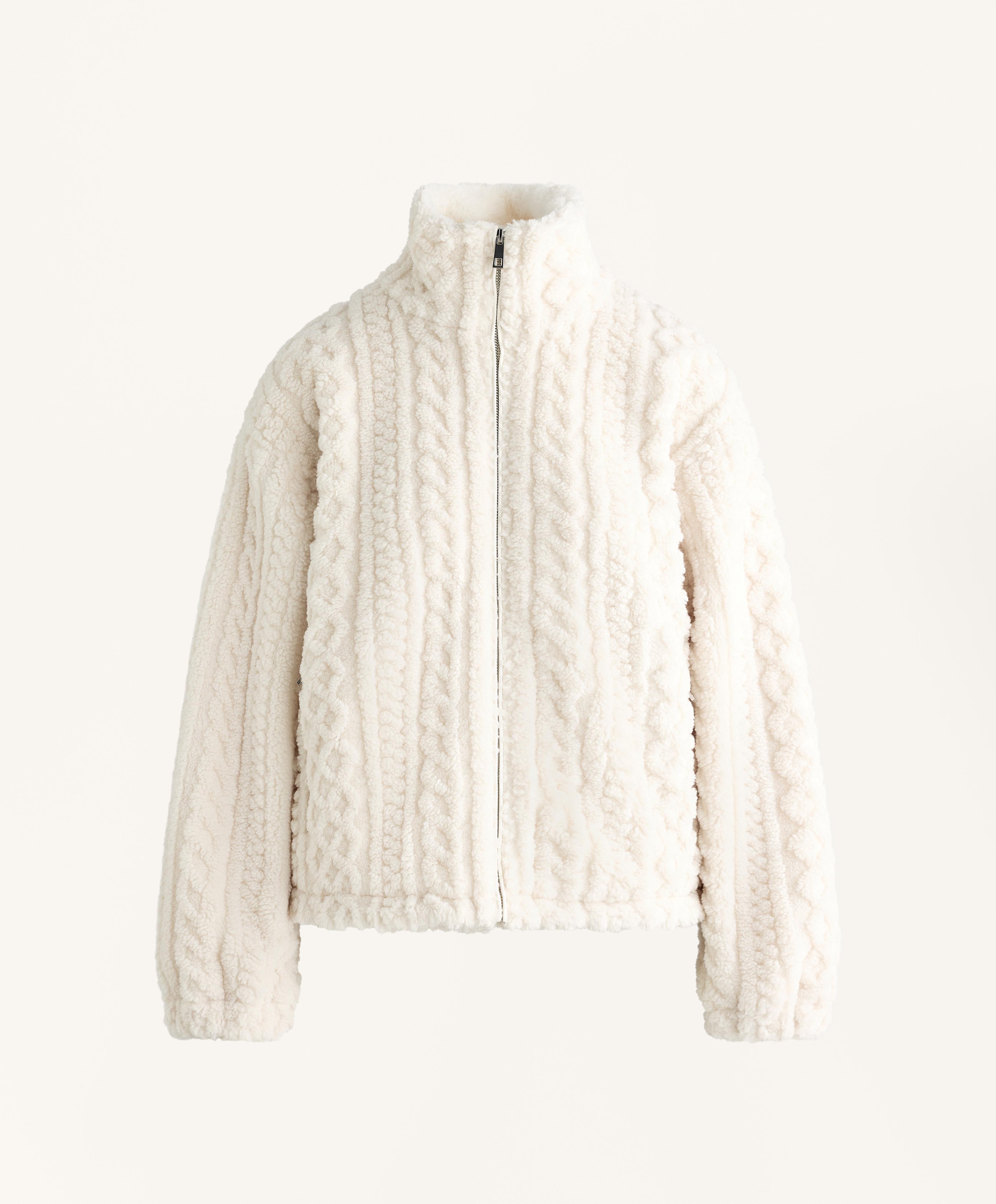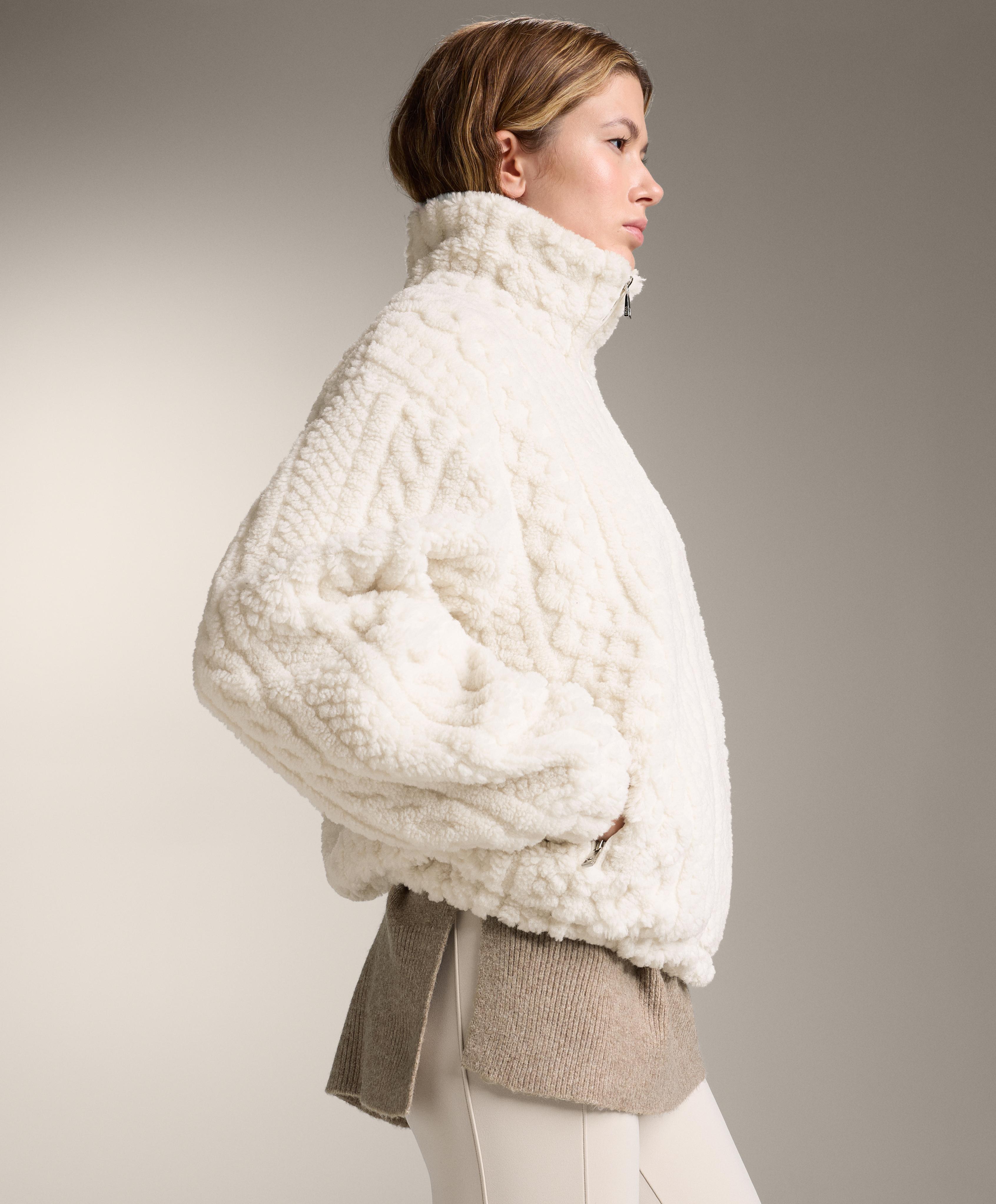 Oysho Куртка из искусственной овчины с вязка косичкой, экрю