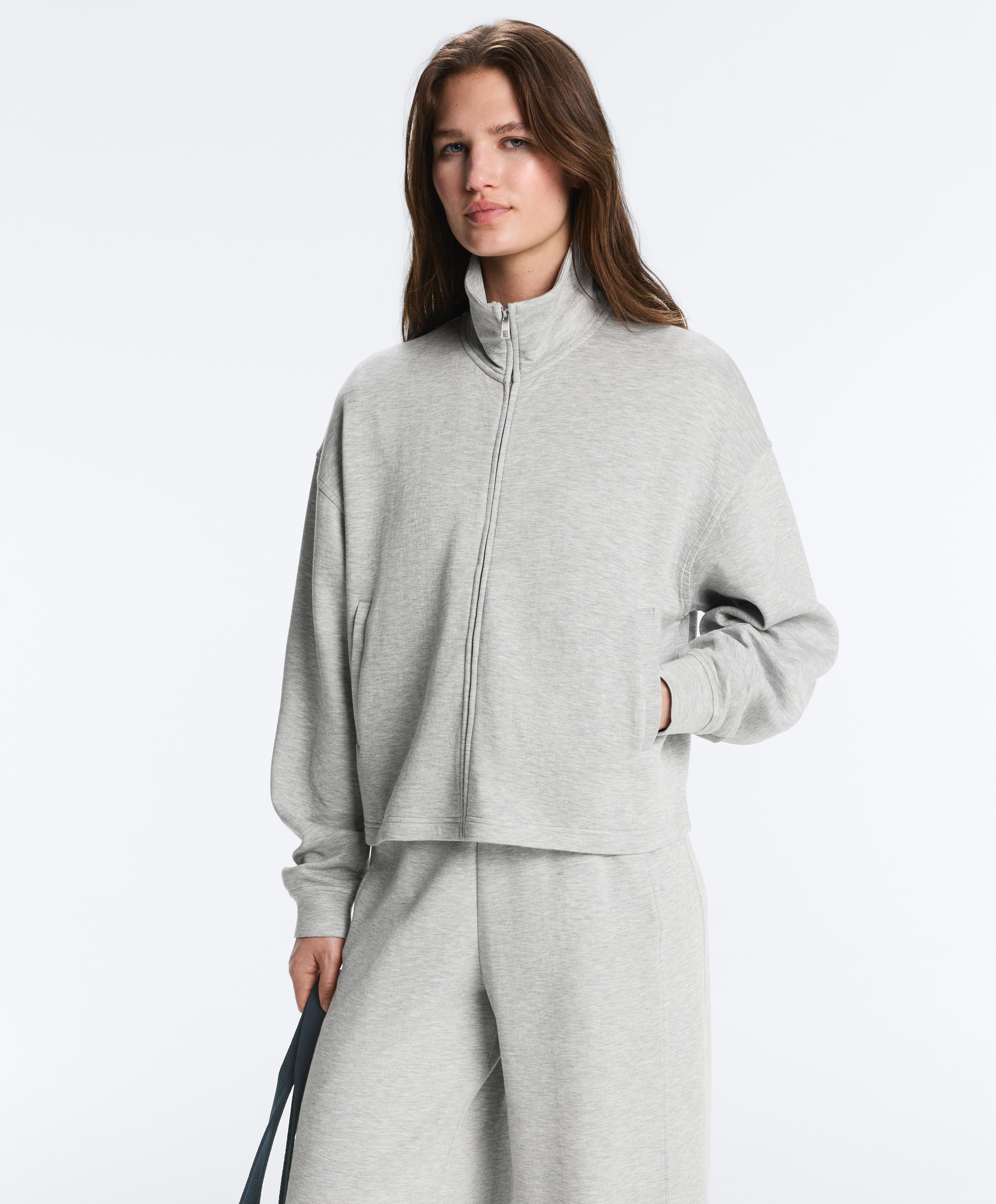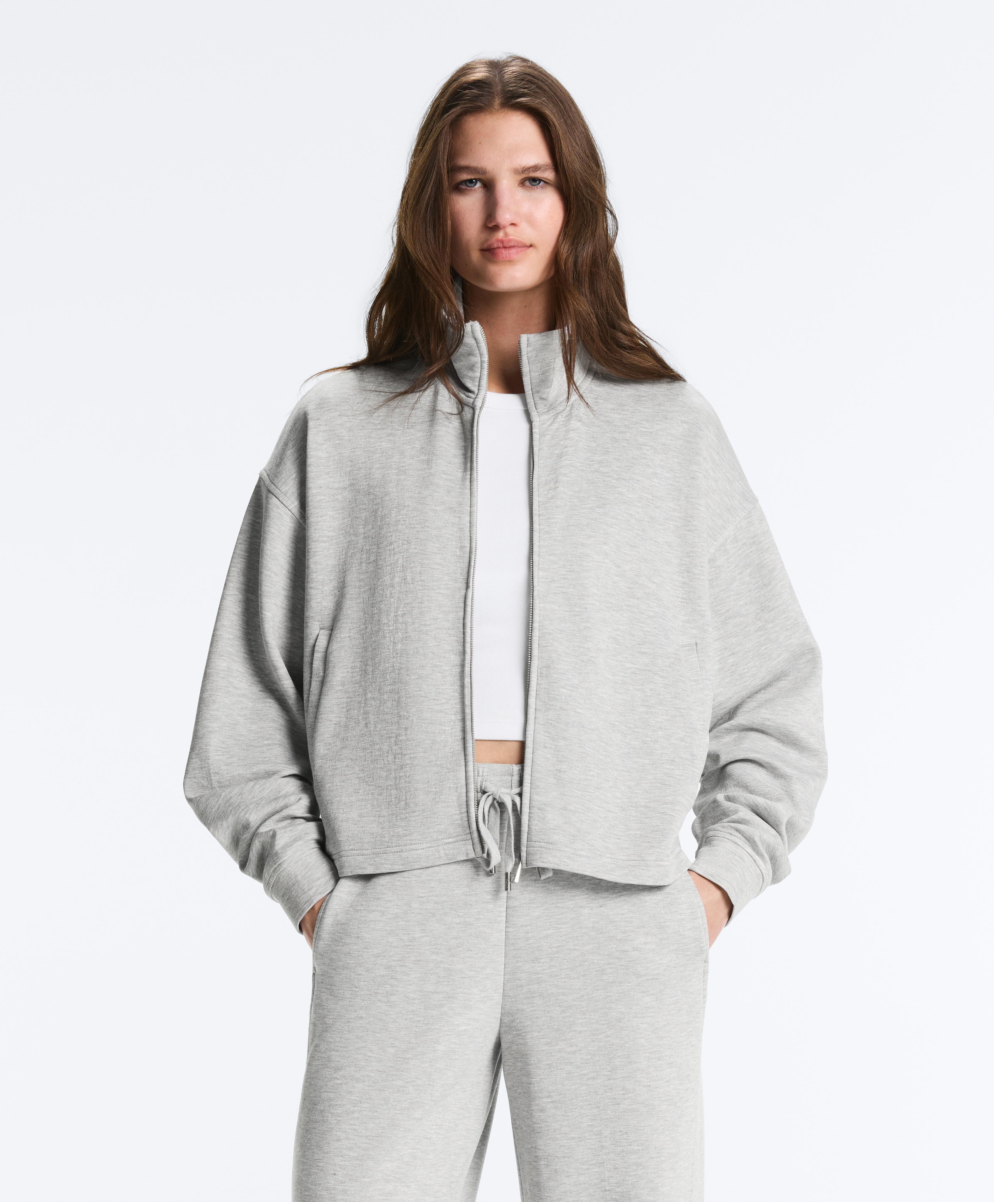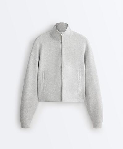 Куртка с застежкой-молнией спереди и высоким воротником. Ткань пике меланж.