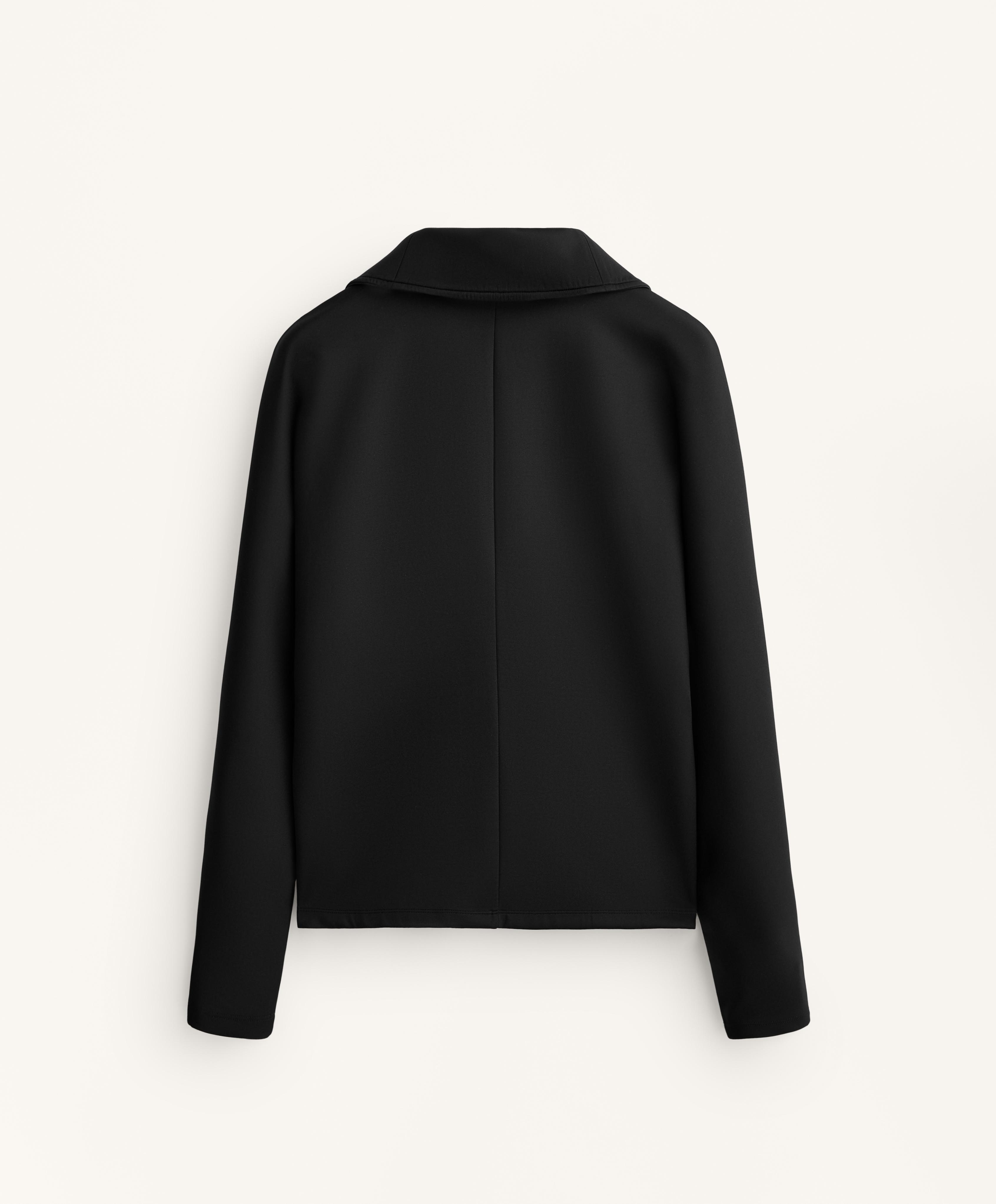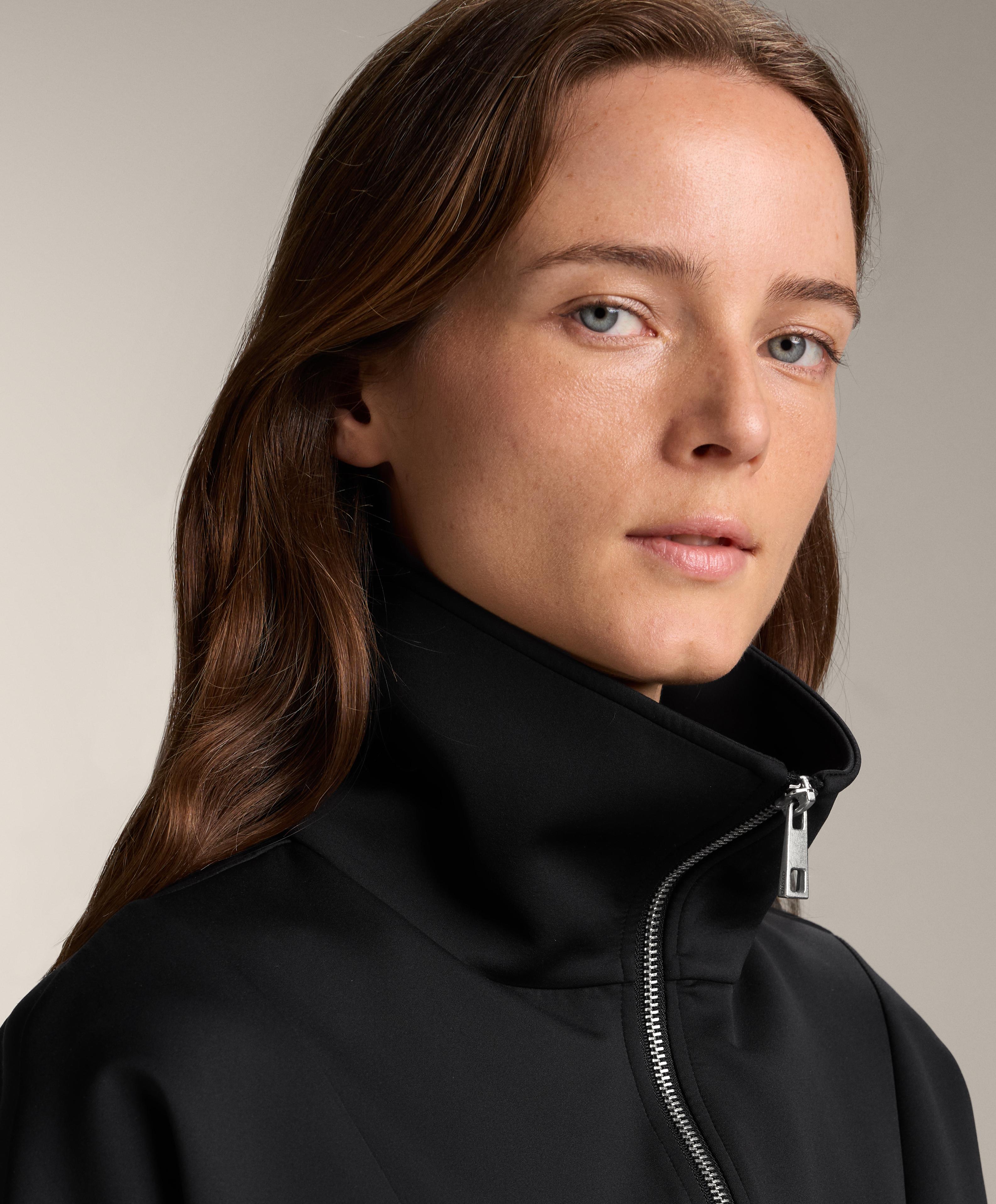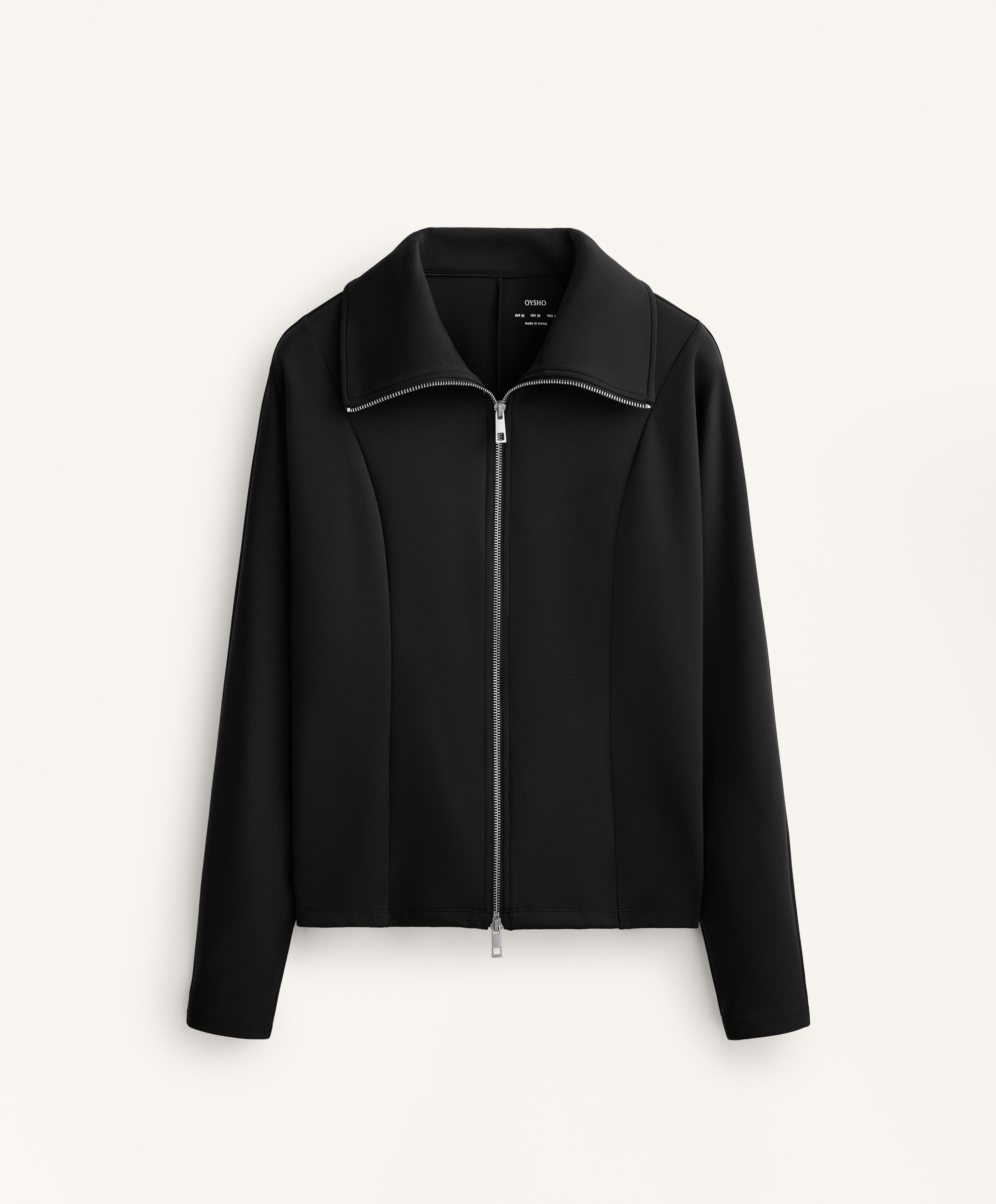 Куртка с эффектом неопрена и двойной застежкой-молнией спереди. Высокий воротник. Дышащая, износостойкая ткань, быстросохнущая.