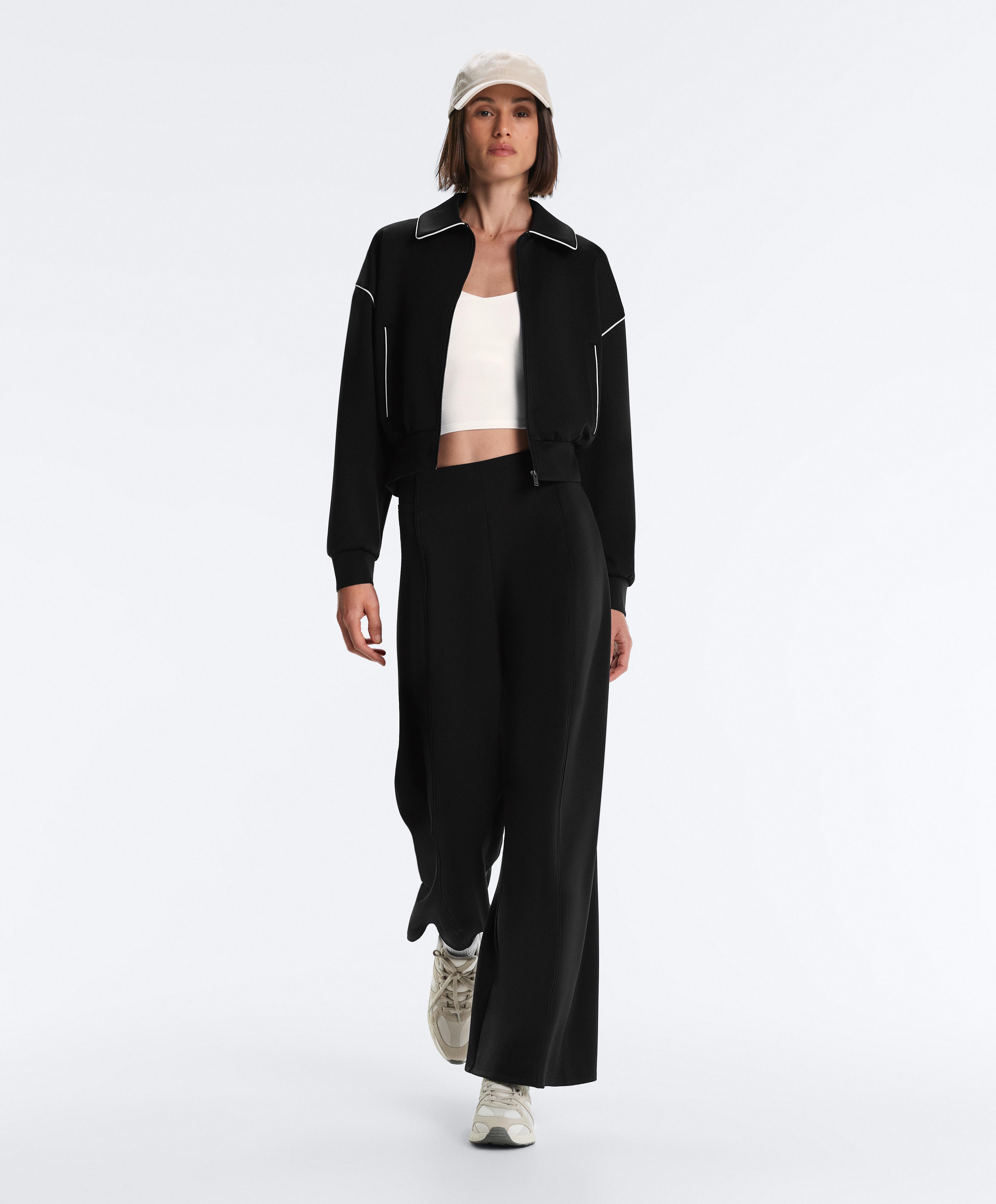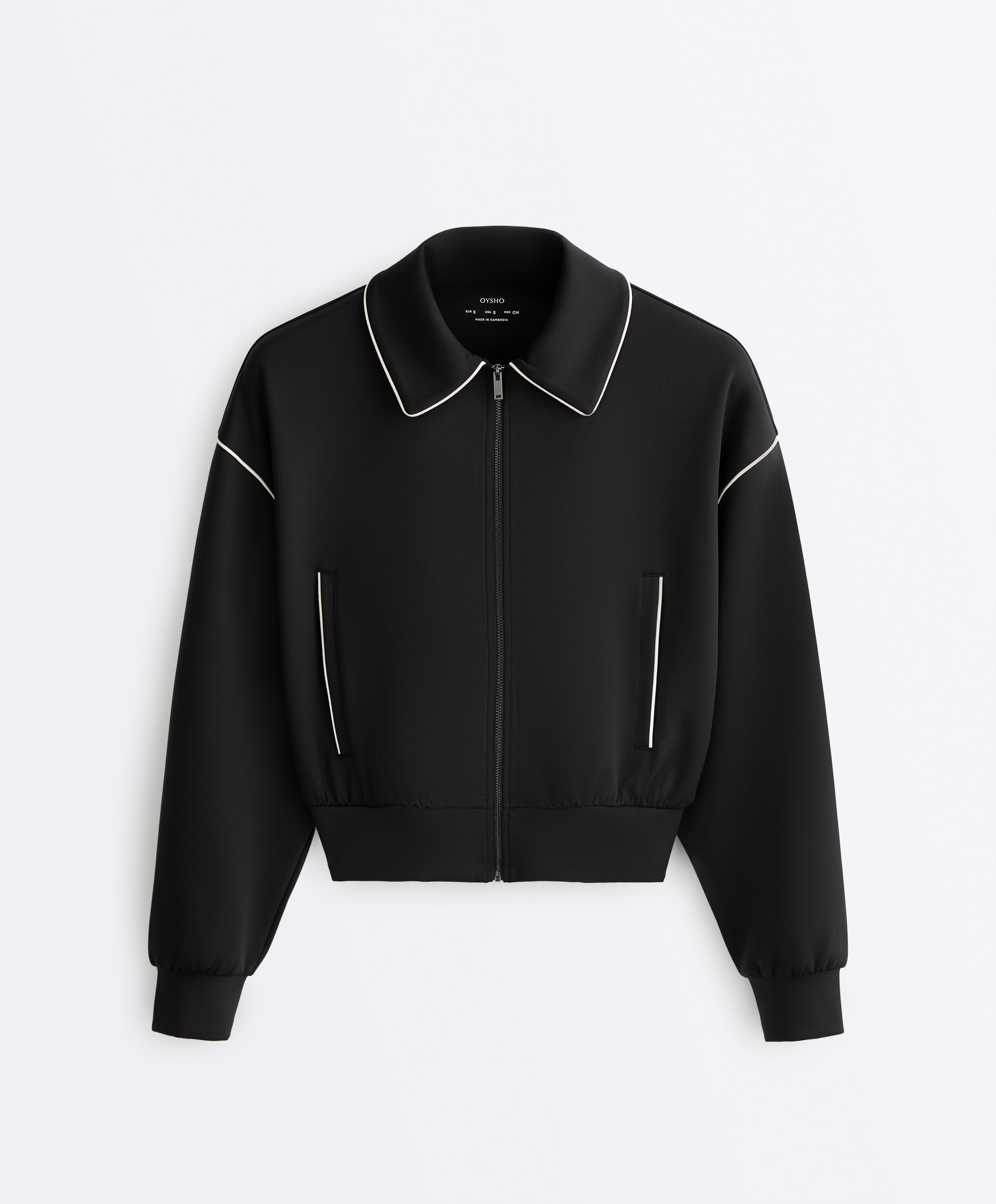 Oysho Куртка с эффектом неопрена без капюшона, черный