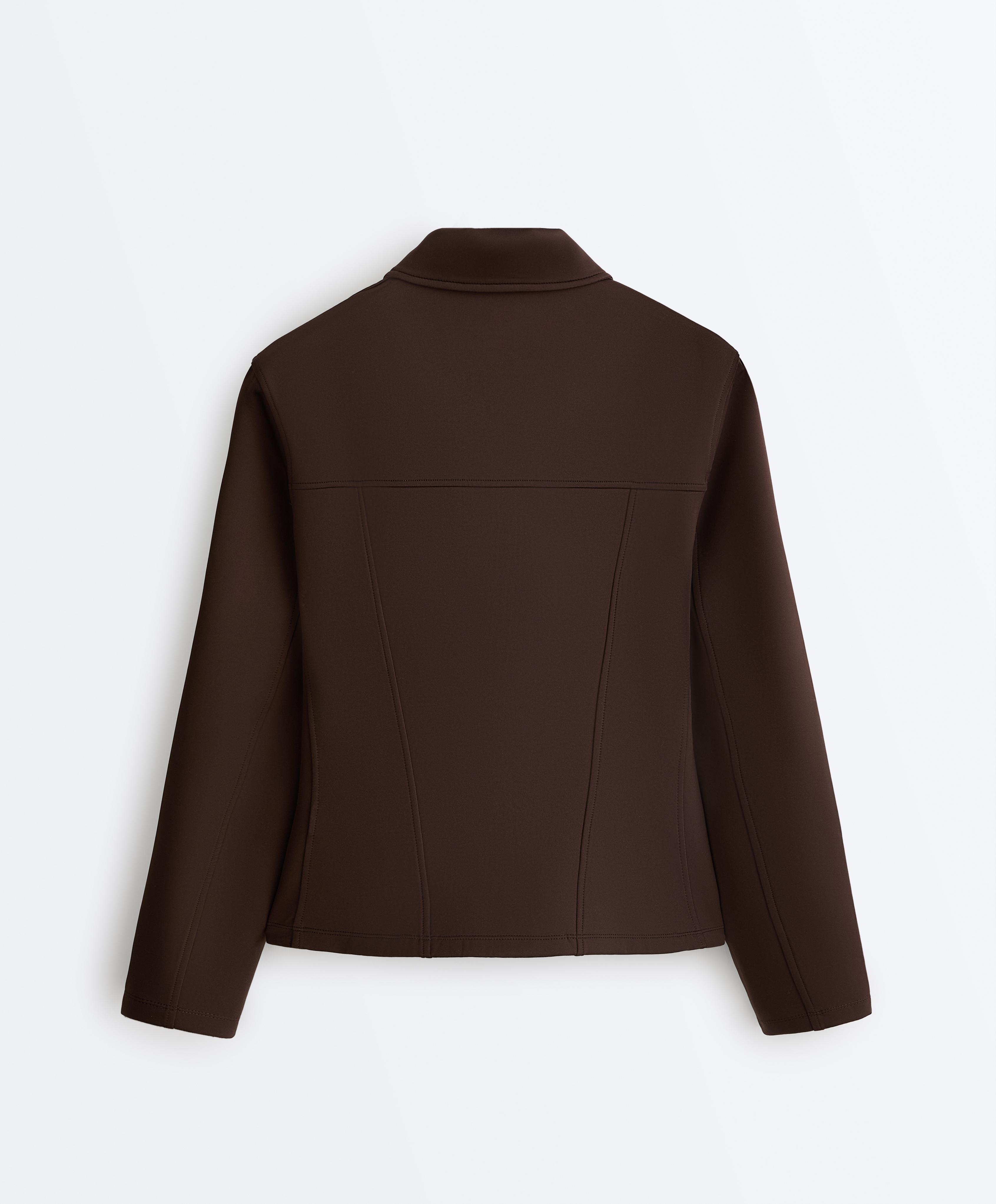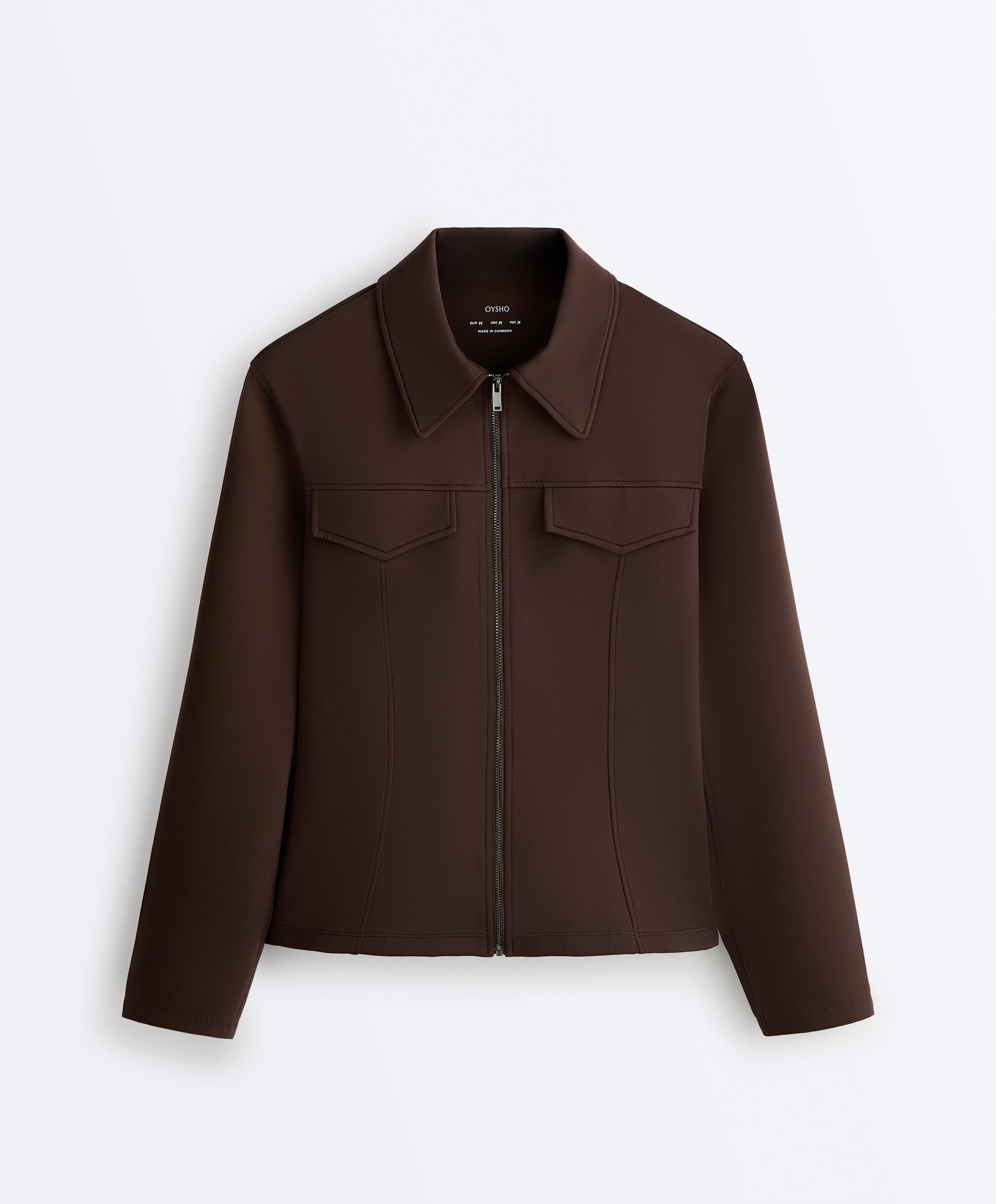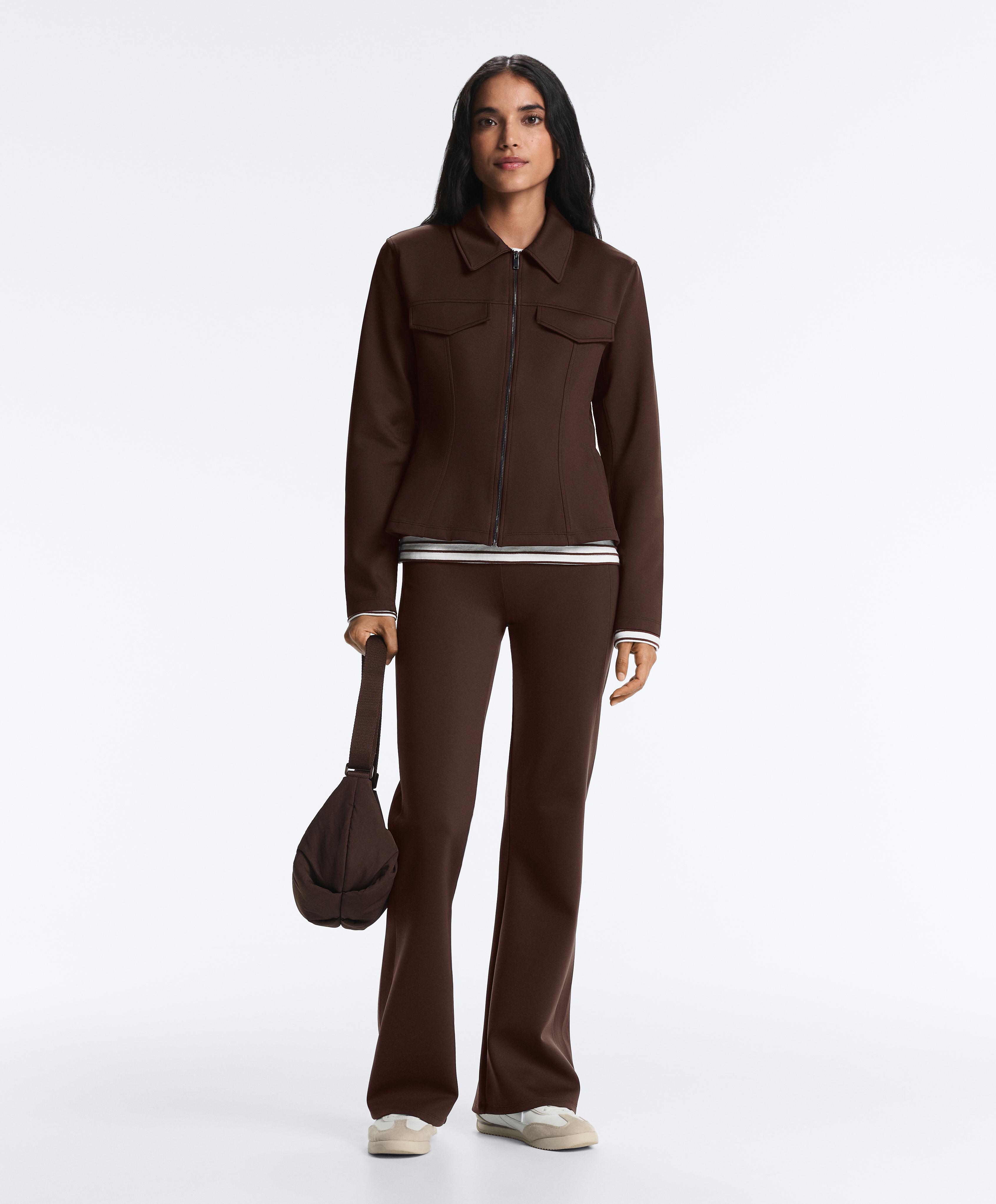 Oysho Куртка с эффектом неопрена в рубчик, коричневый