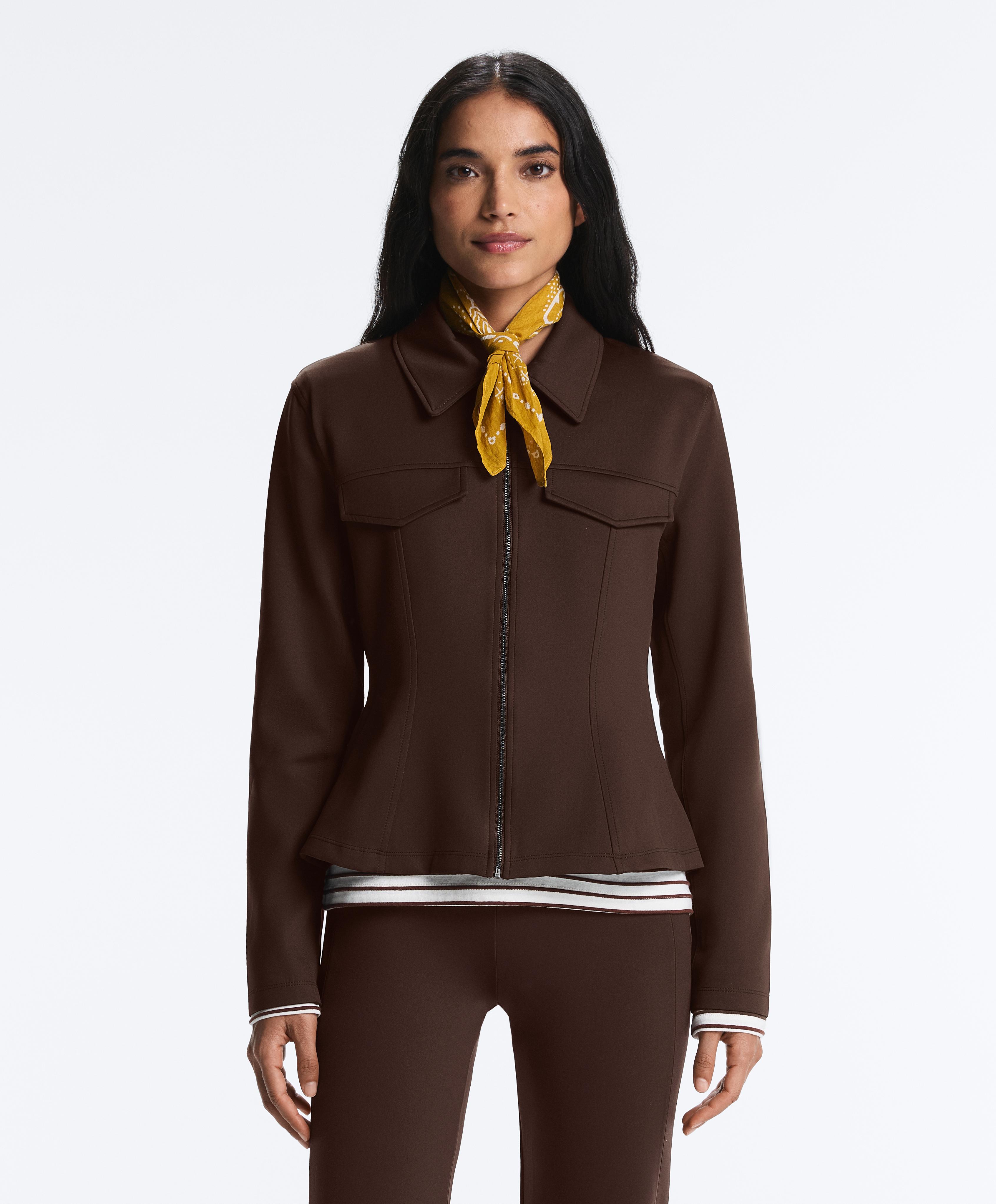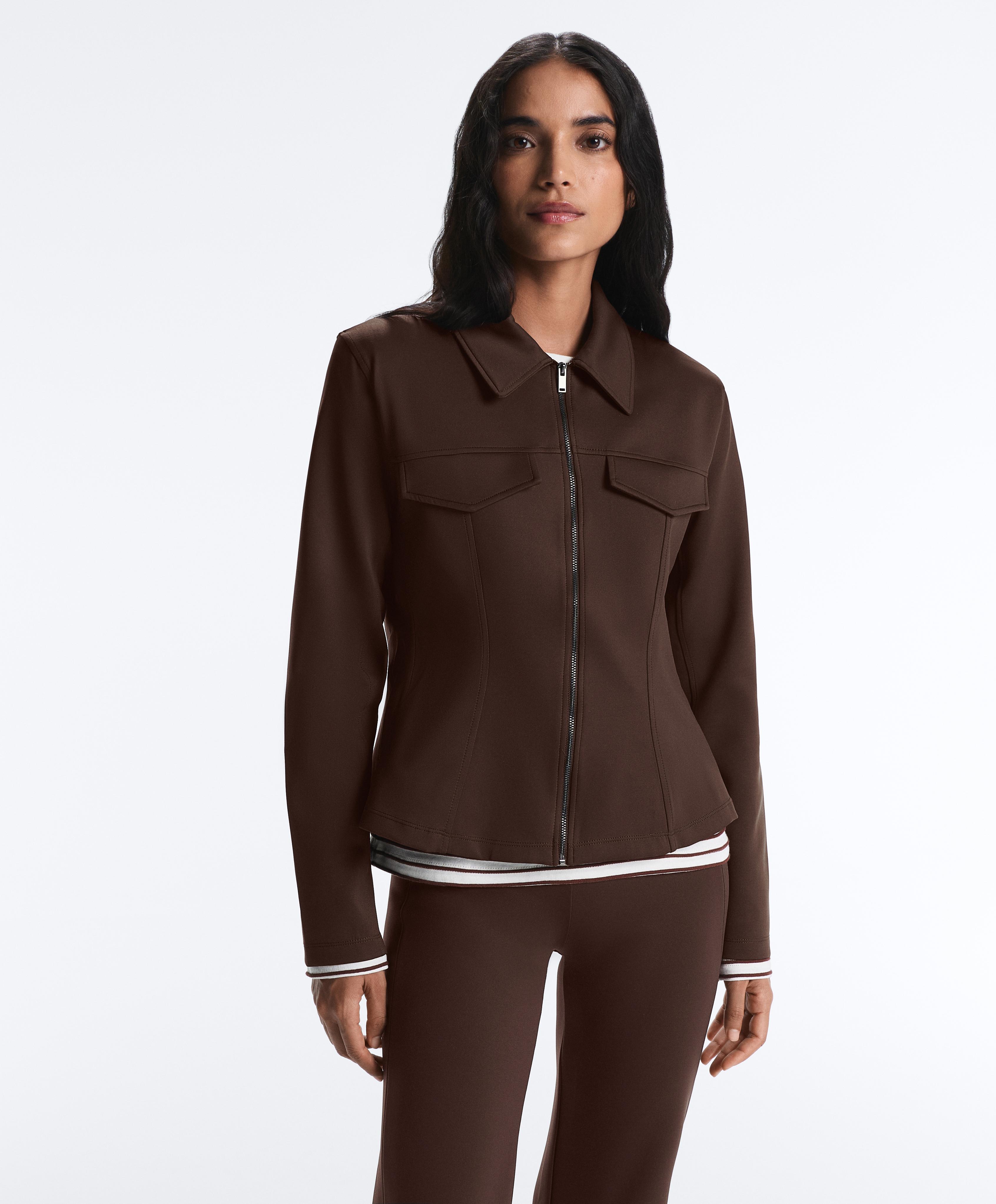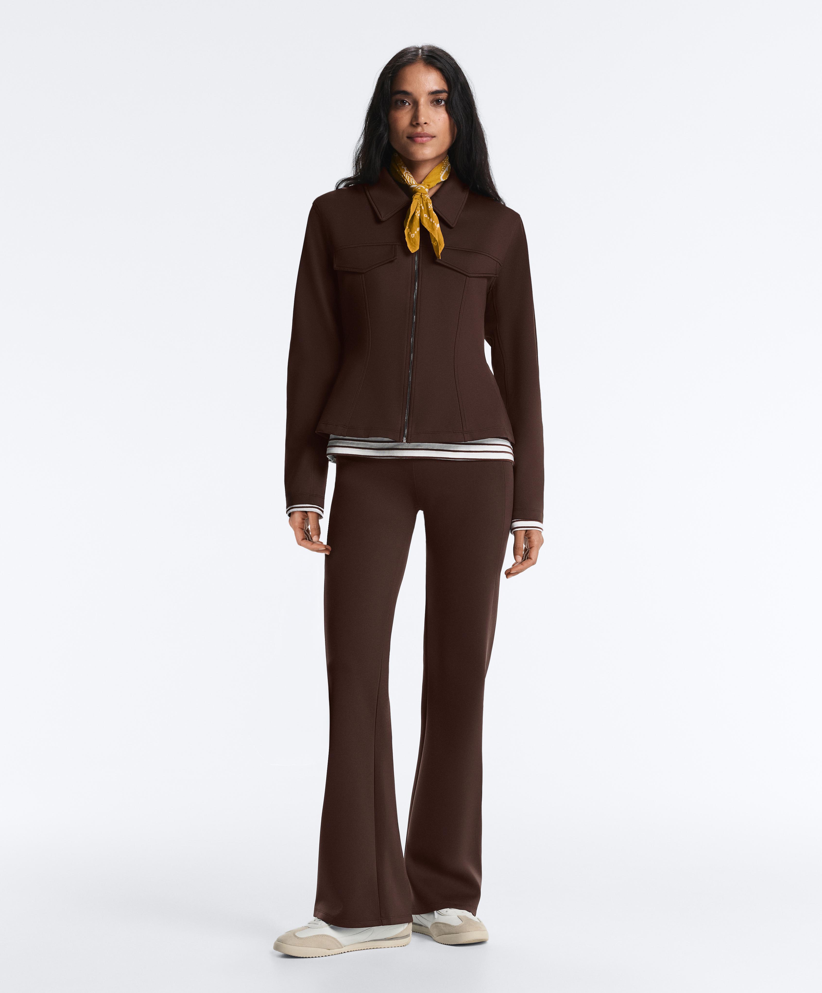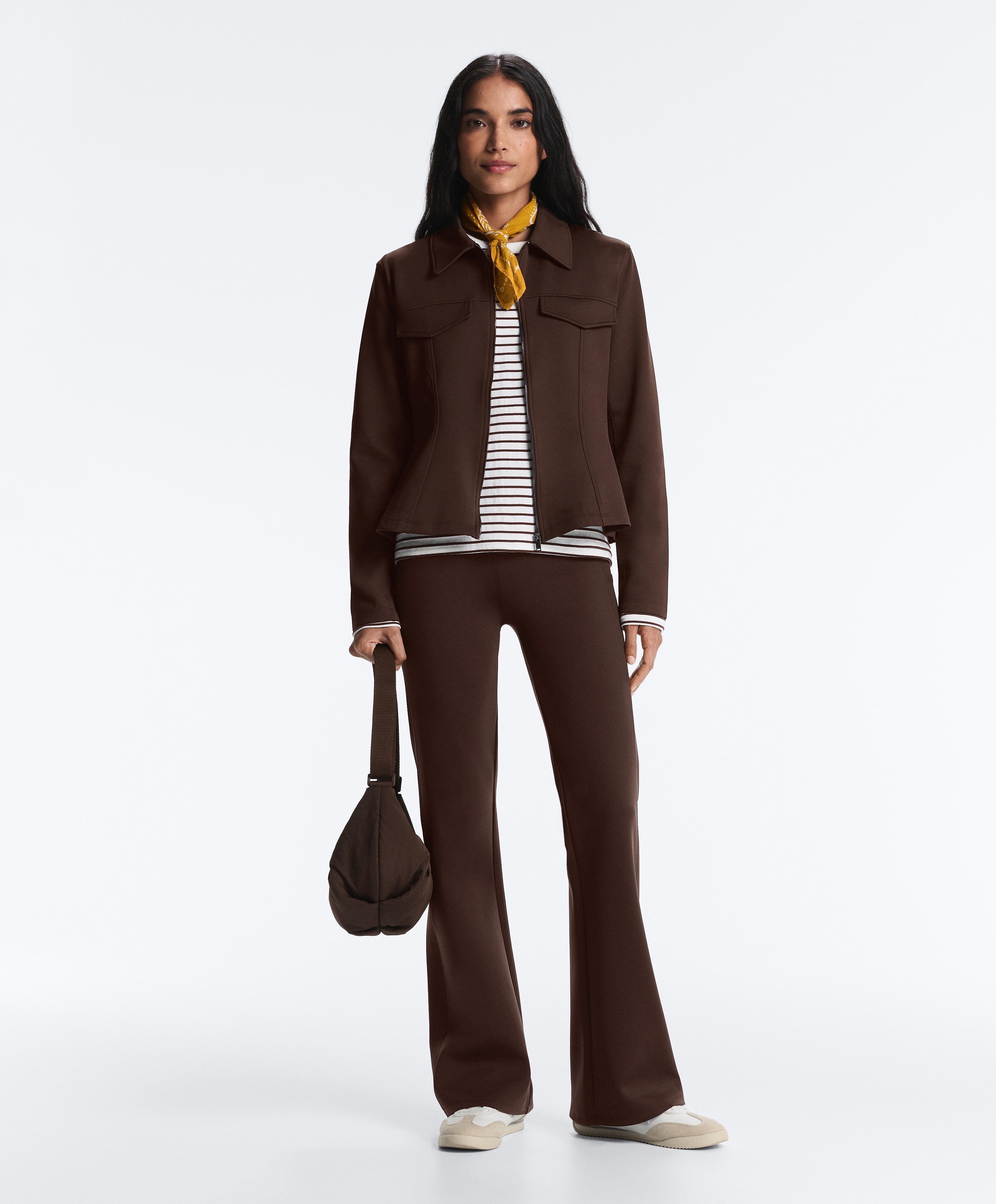 Oysho Куртка с эффектом неопрена в рубчик, коричневый