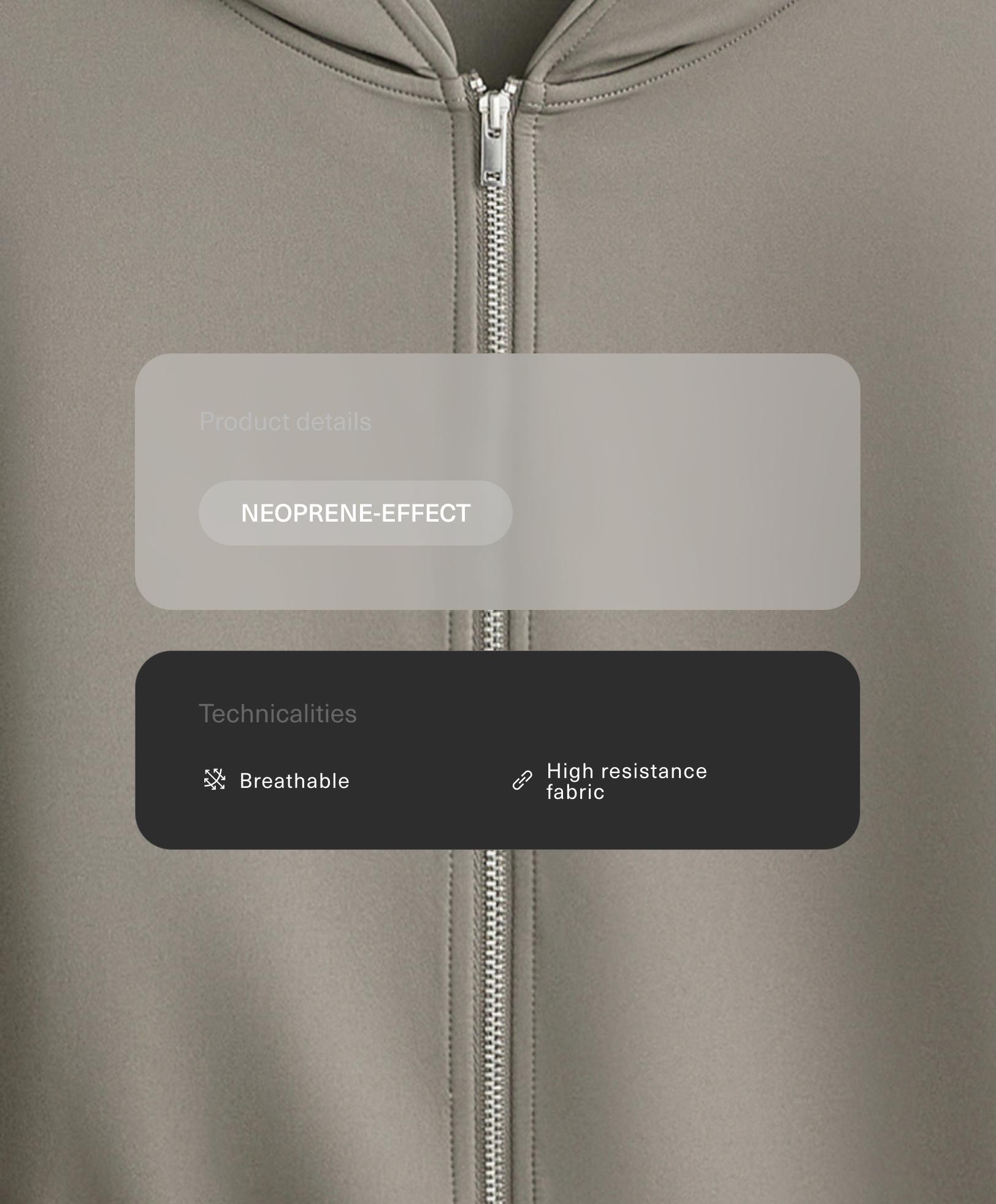 Куртка с капюшоном и эффектом неопрена. Застежка-молния спереди. Дышащая и очень прочная ткань.