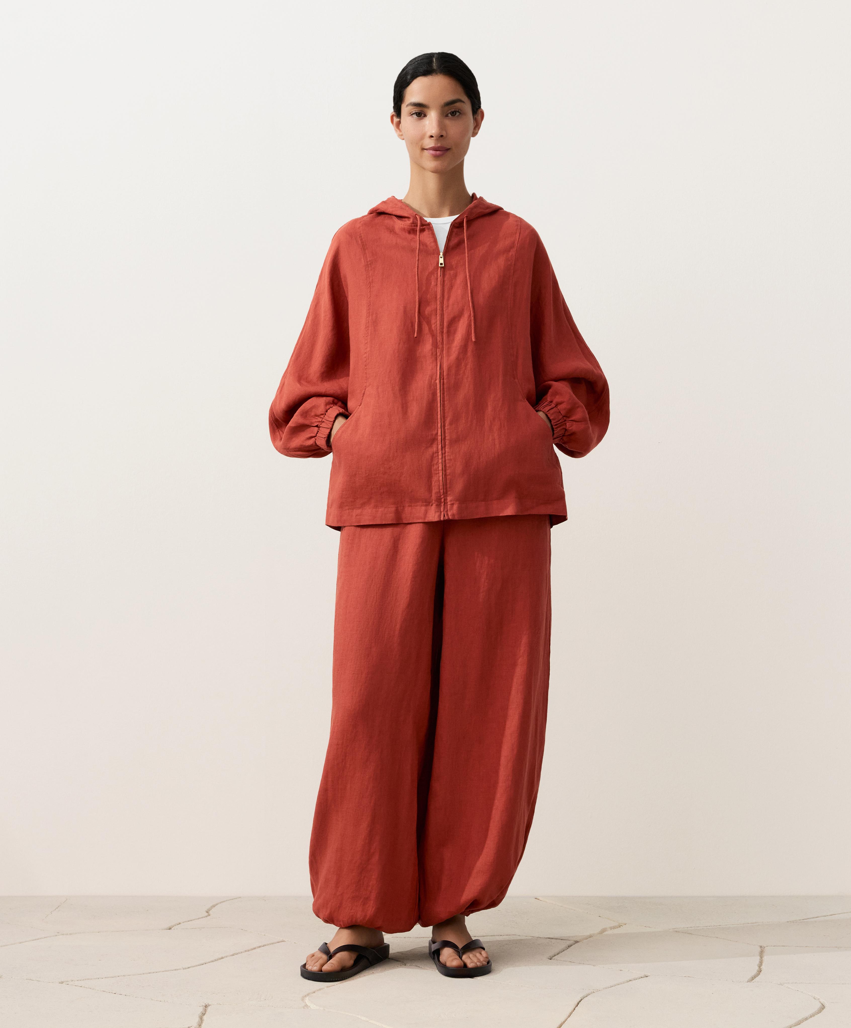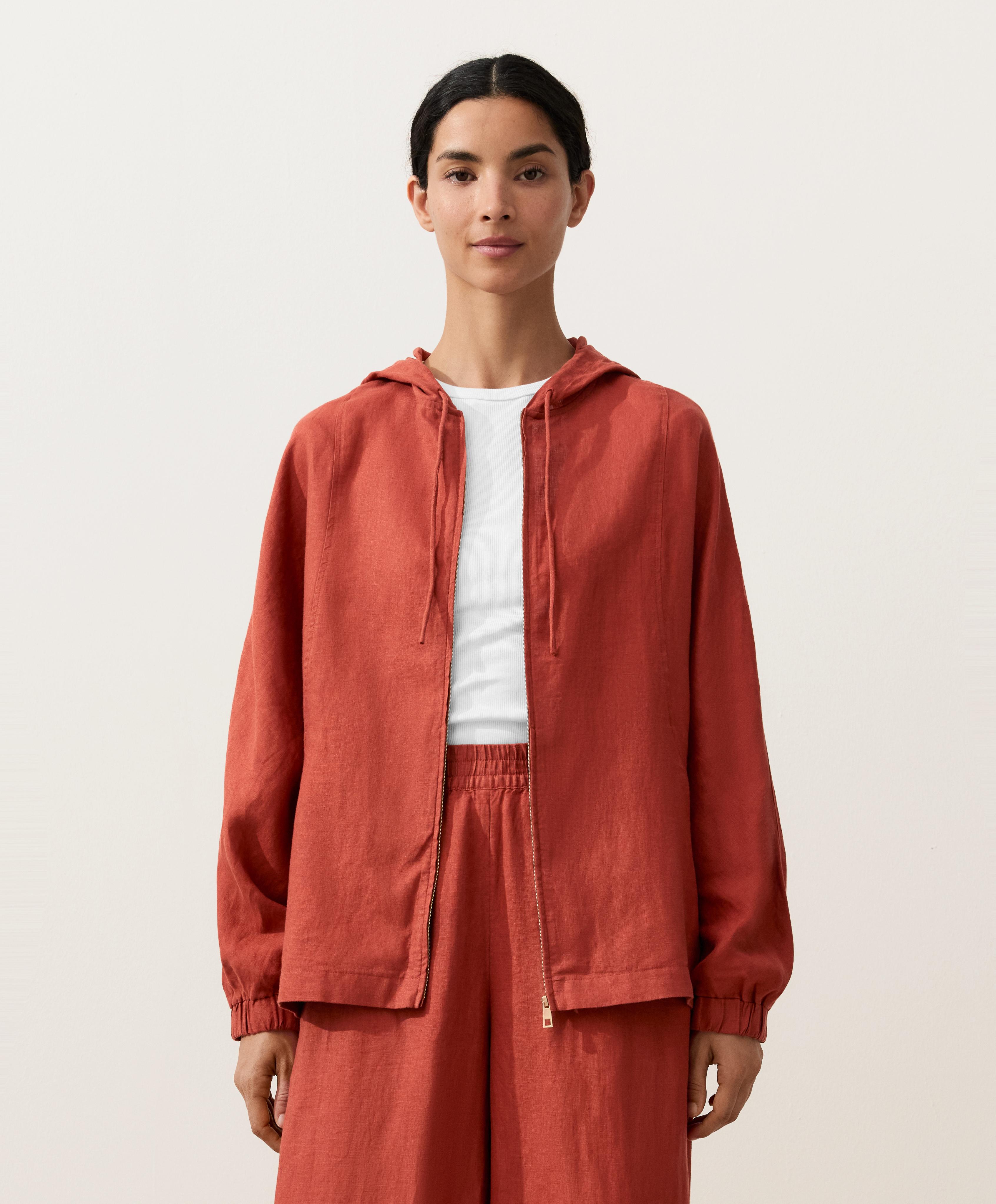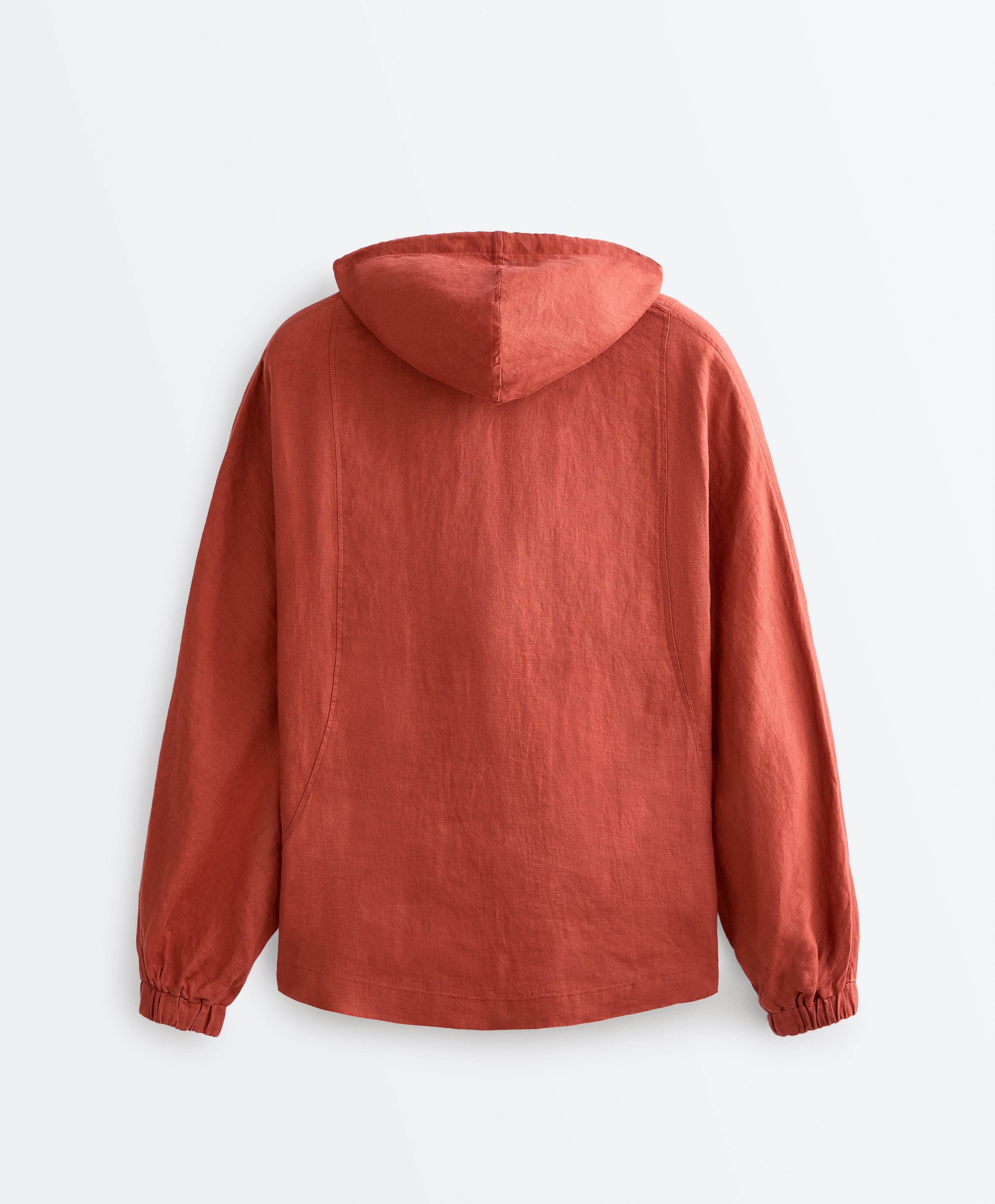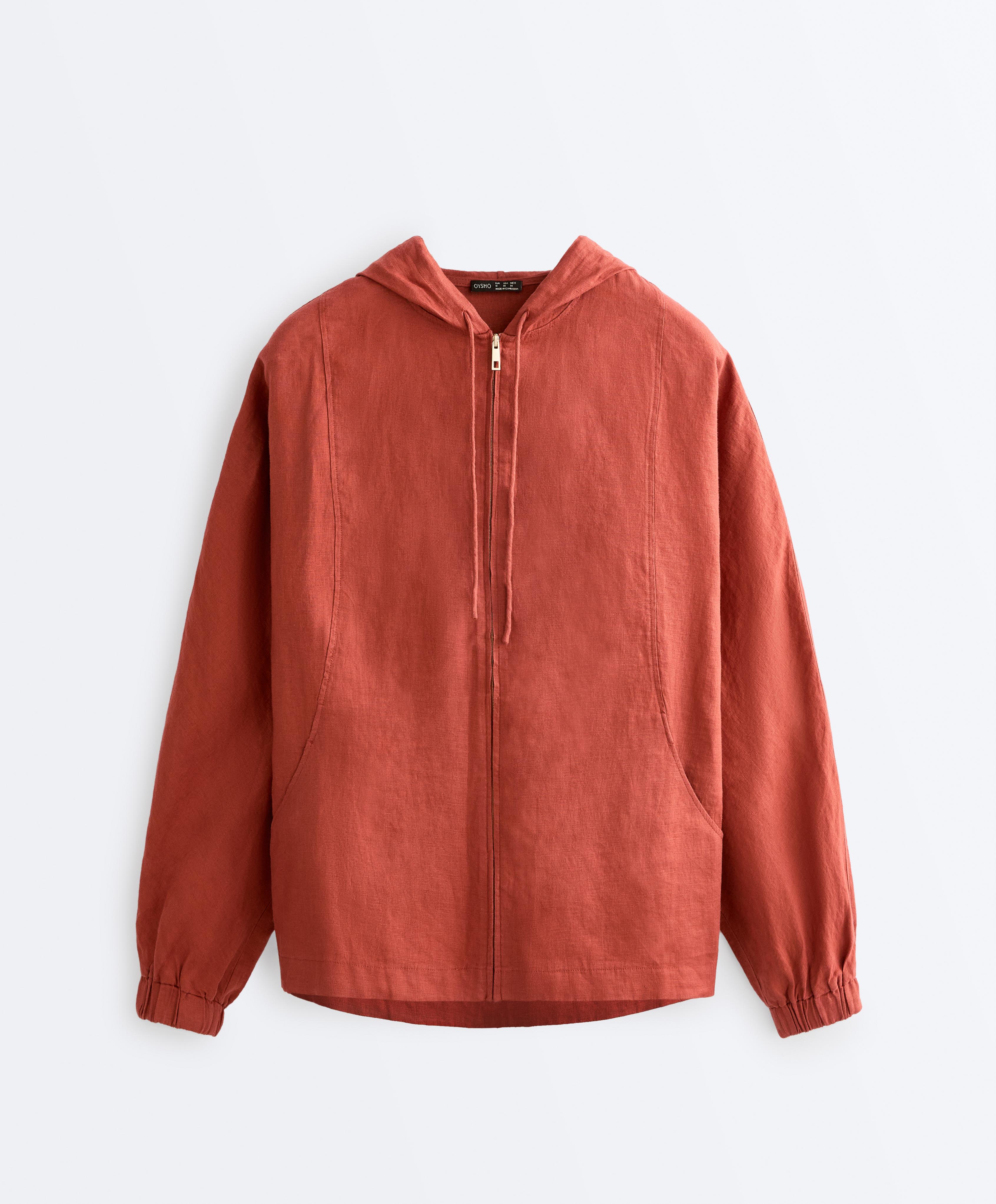 Oysho Куртка с капюшоном в полоску из 100% льна, красноватый