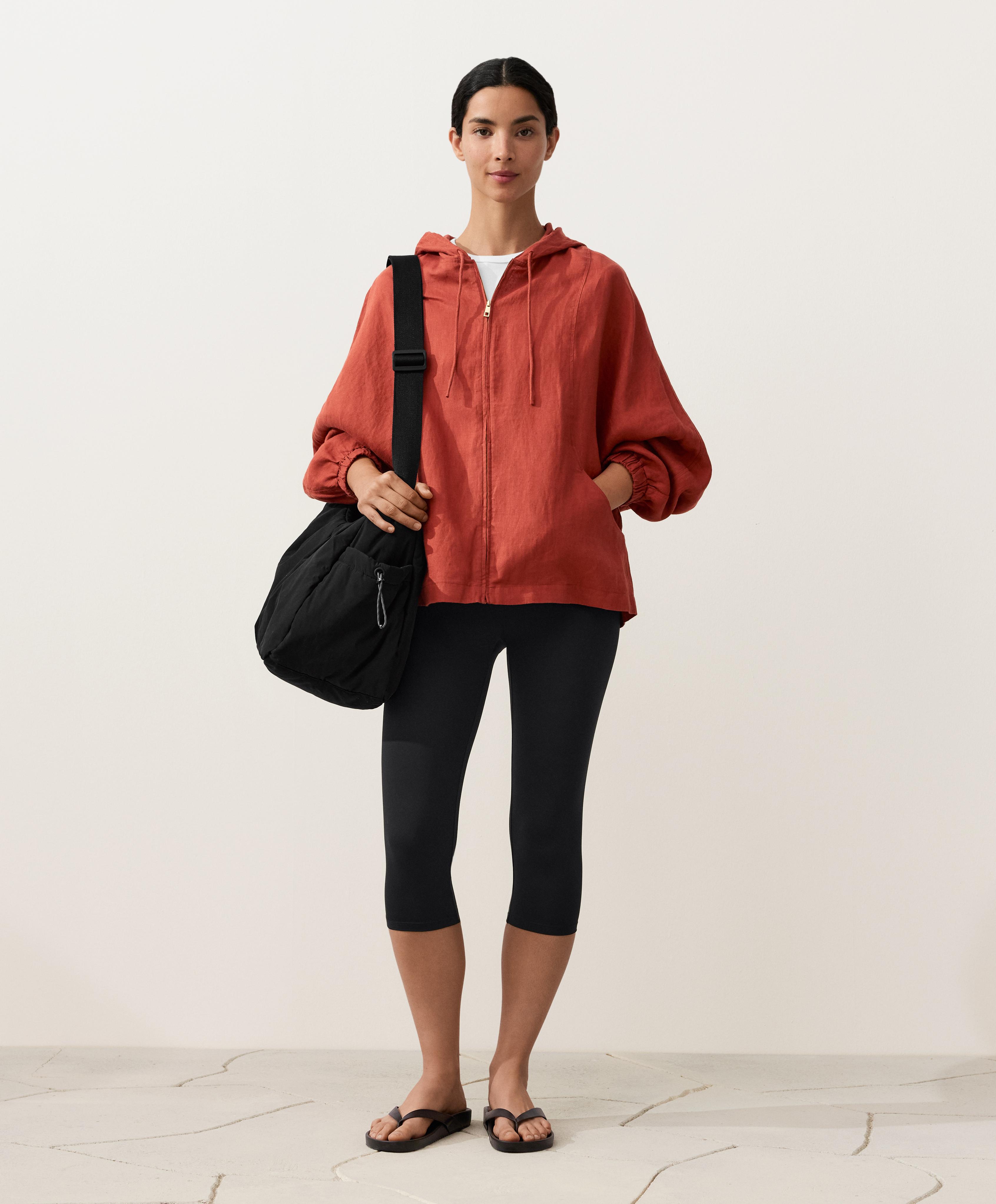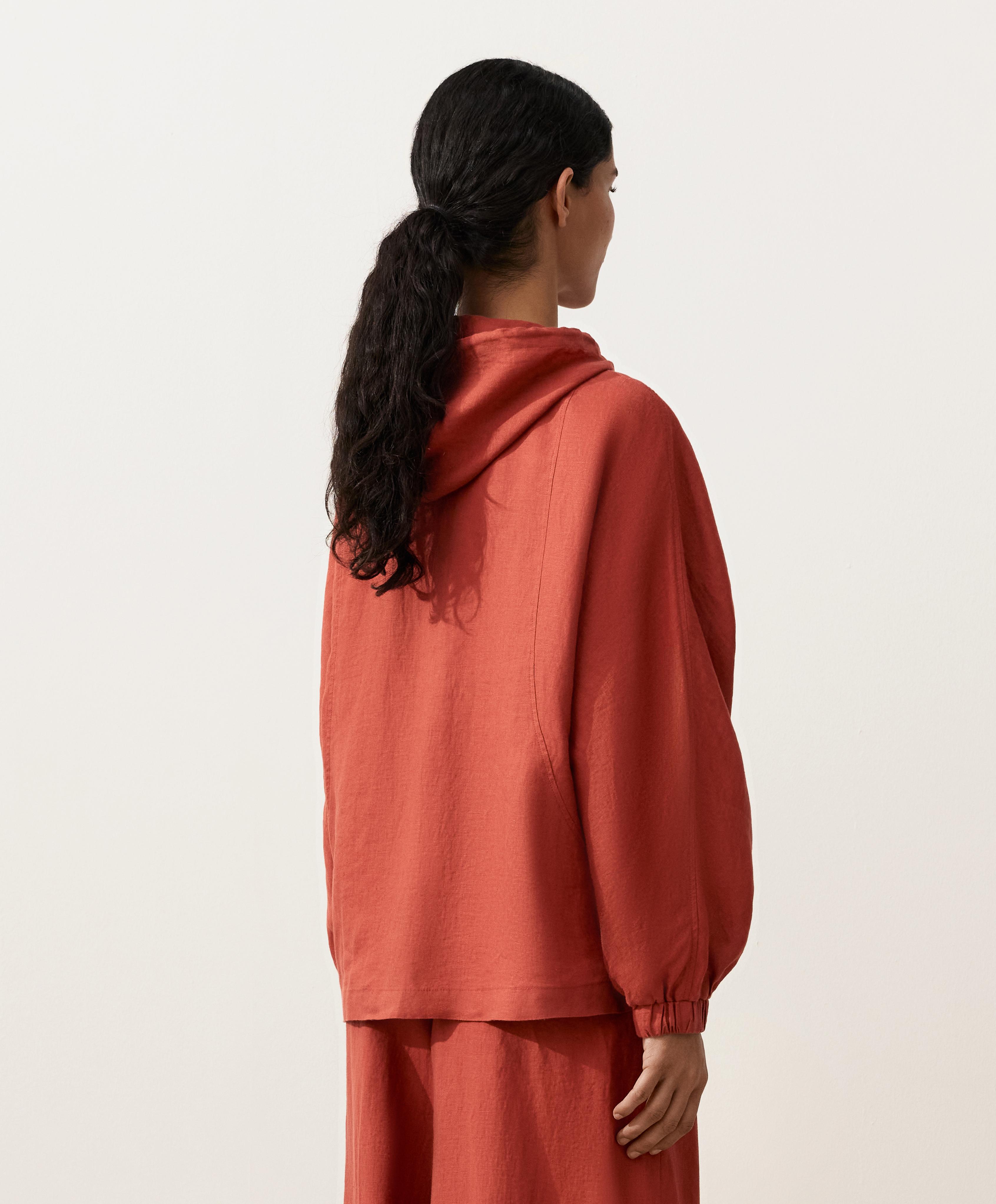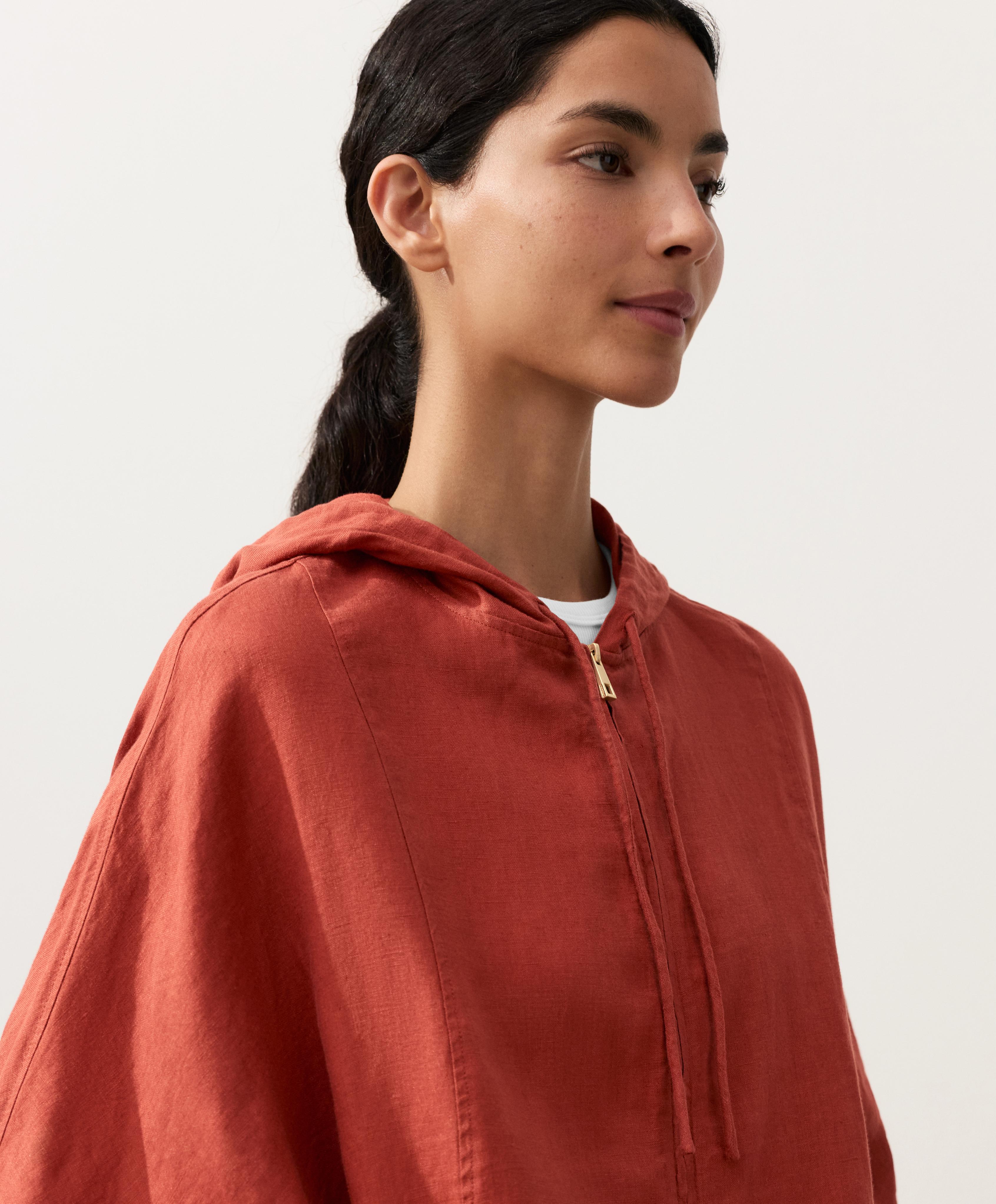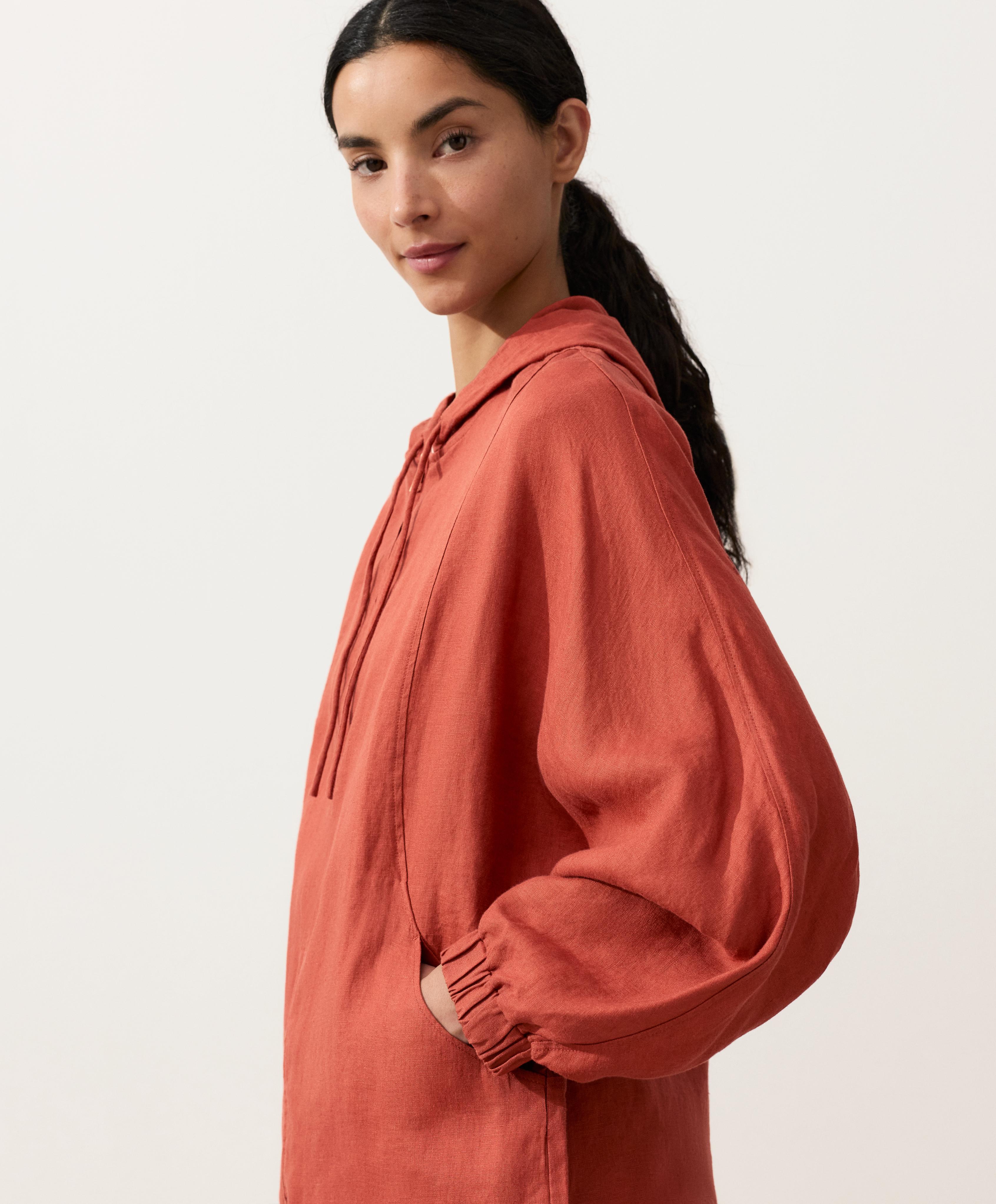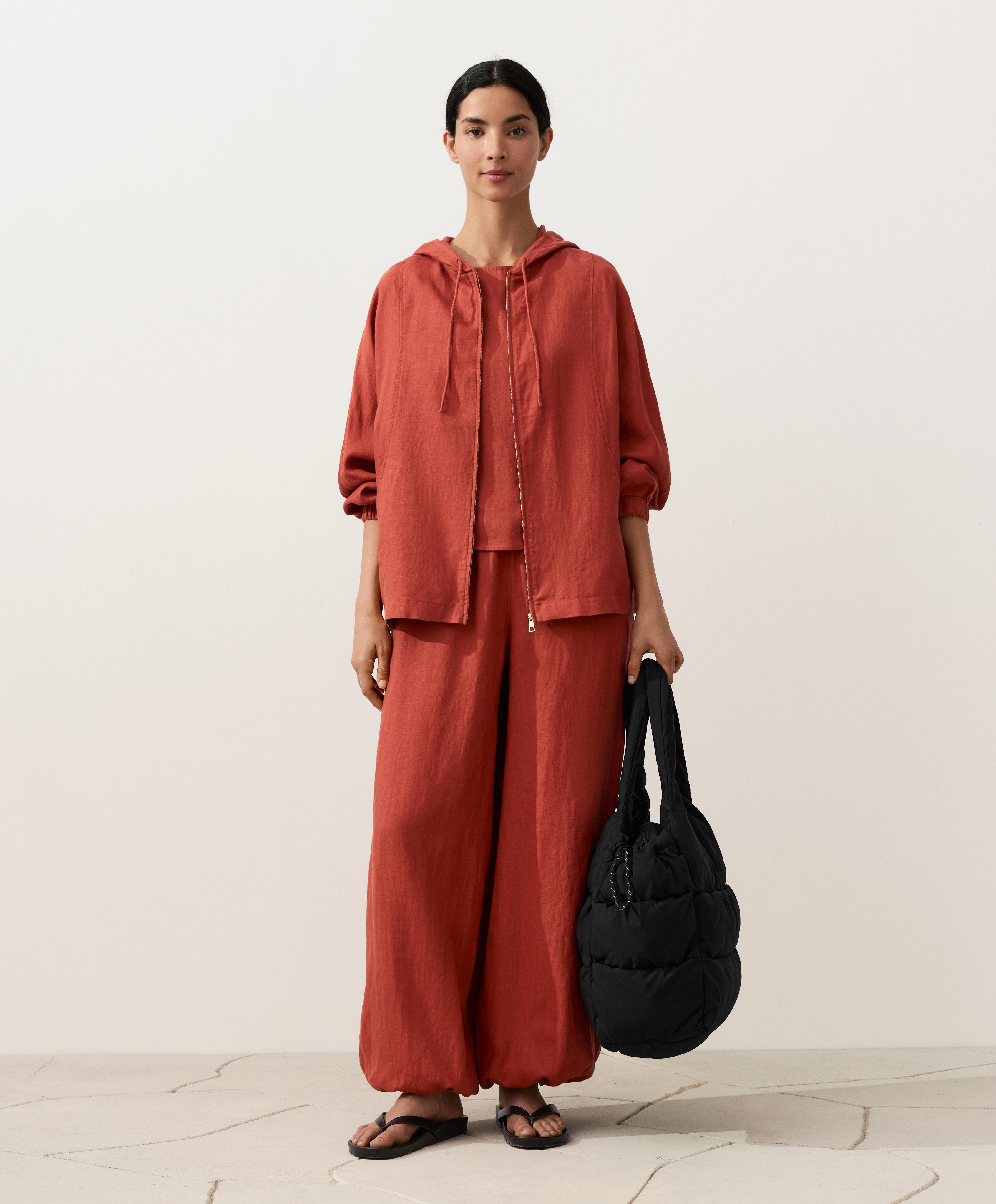Oysho Куртка с капюшоном в полоску из 100% льна, красноватый