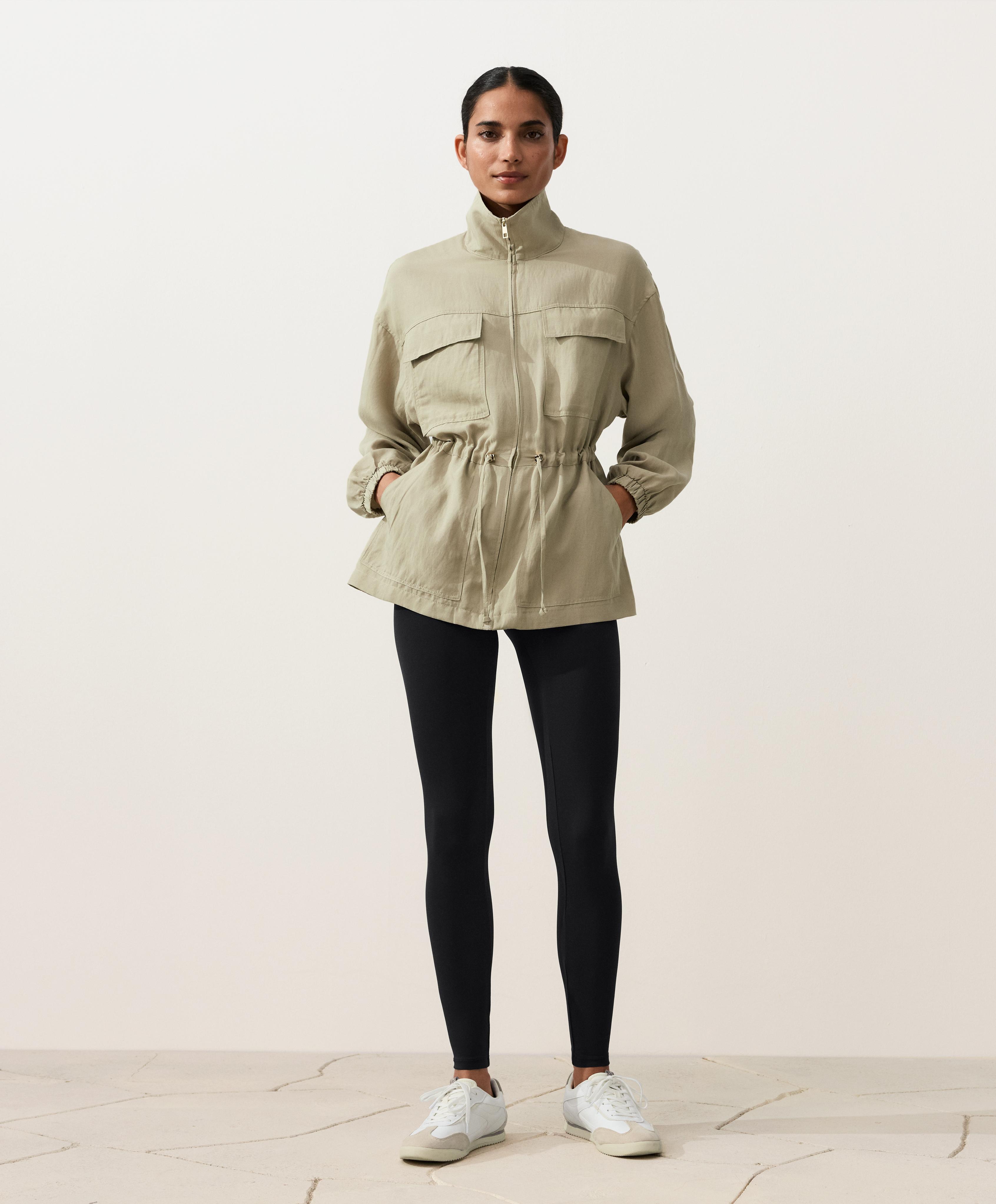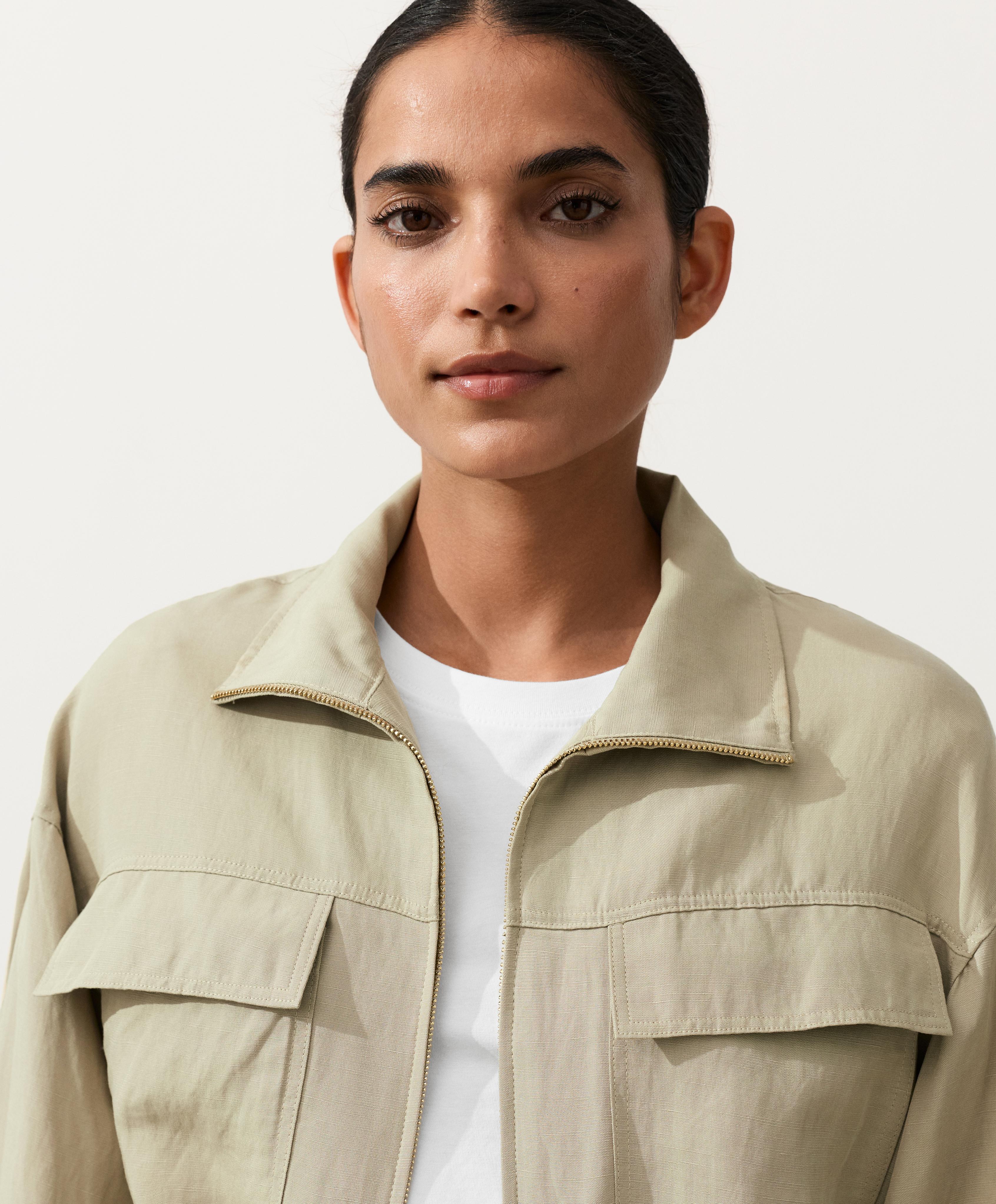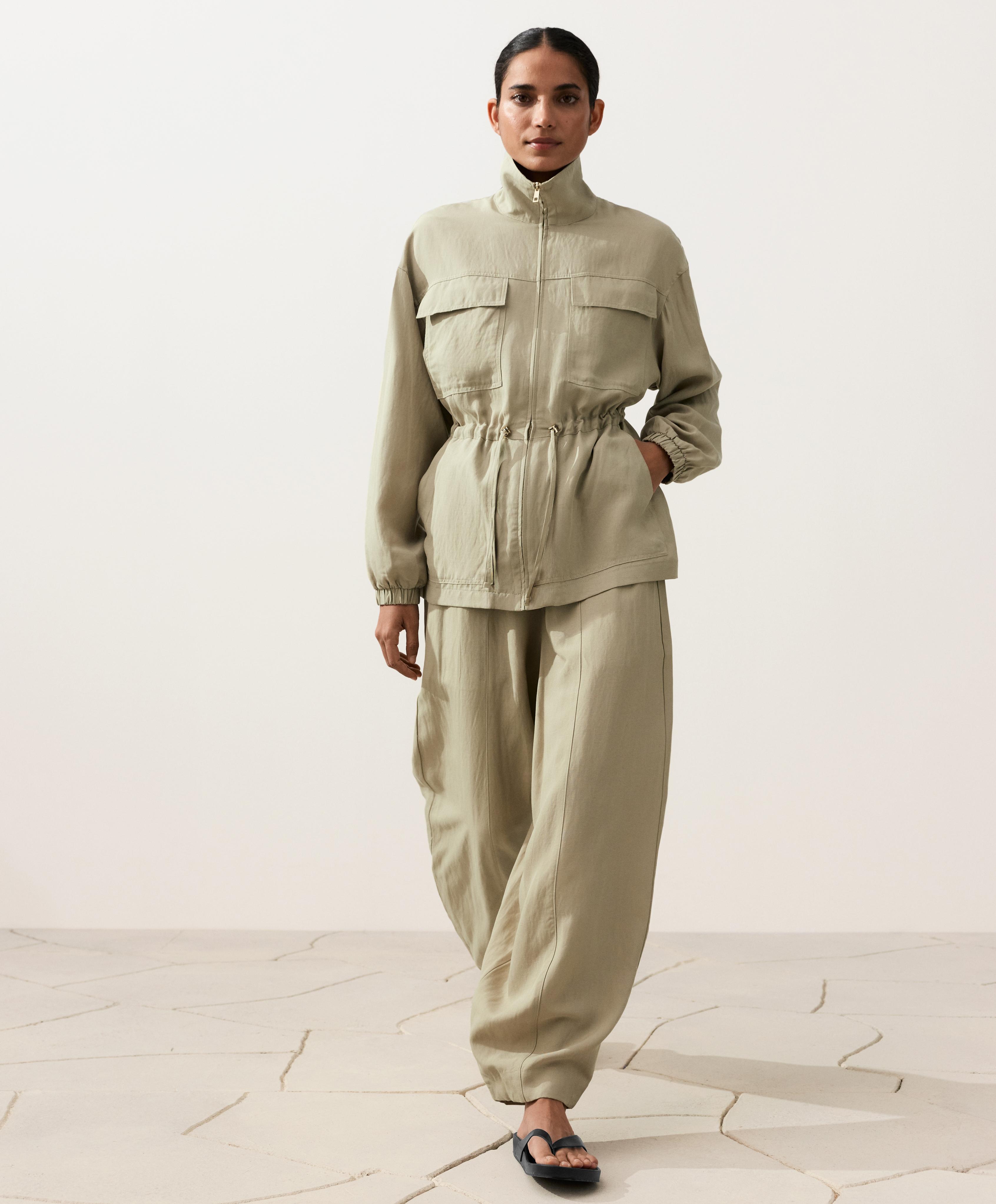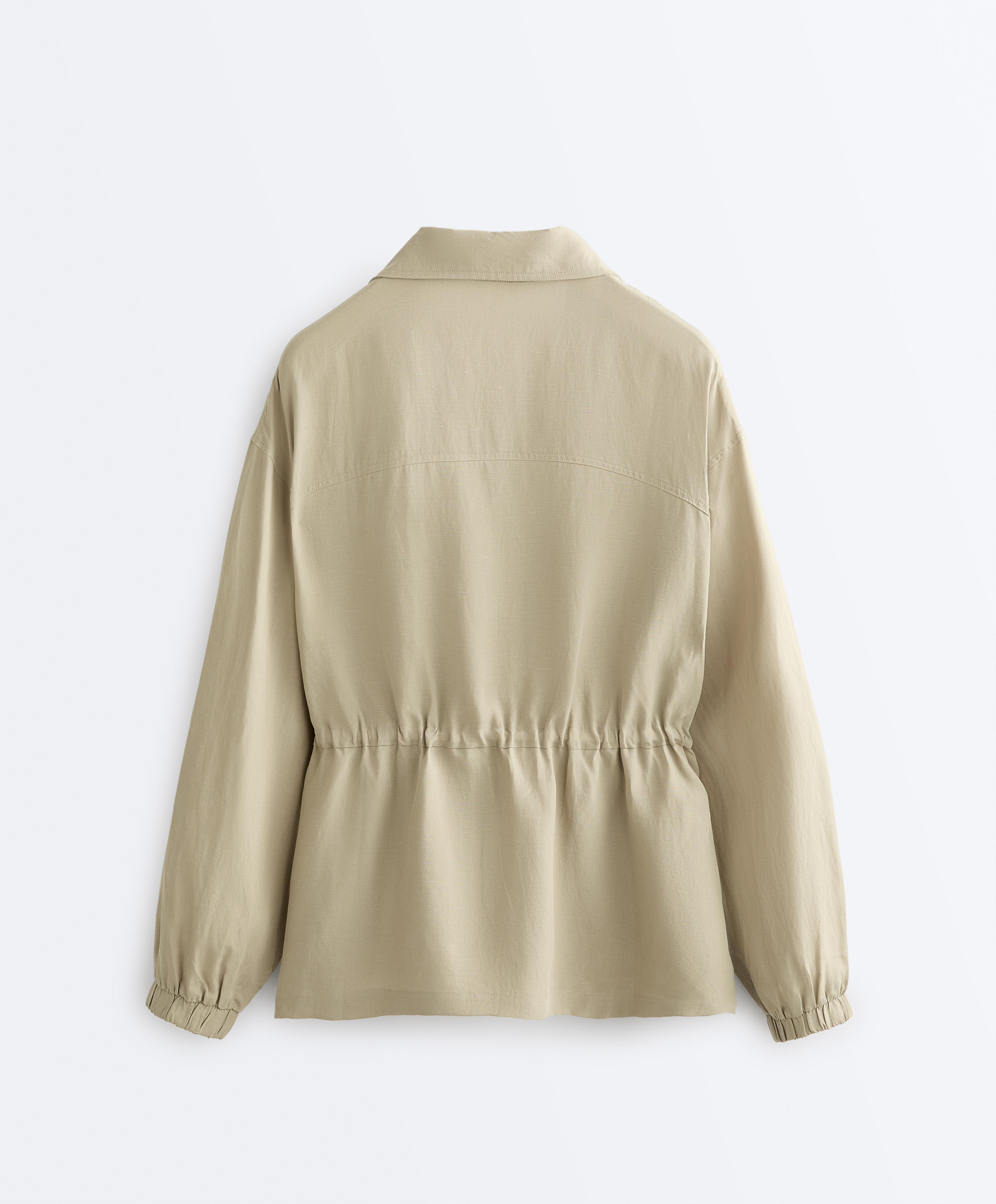 Oysho Куртка с присборенной талией из смеси лиоцелла и 24% льна, бежево-зеленый