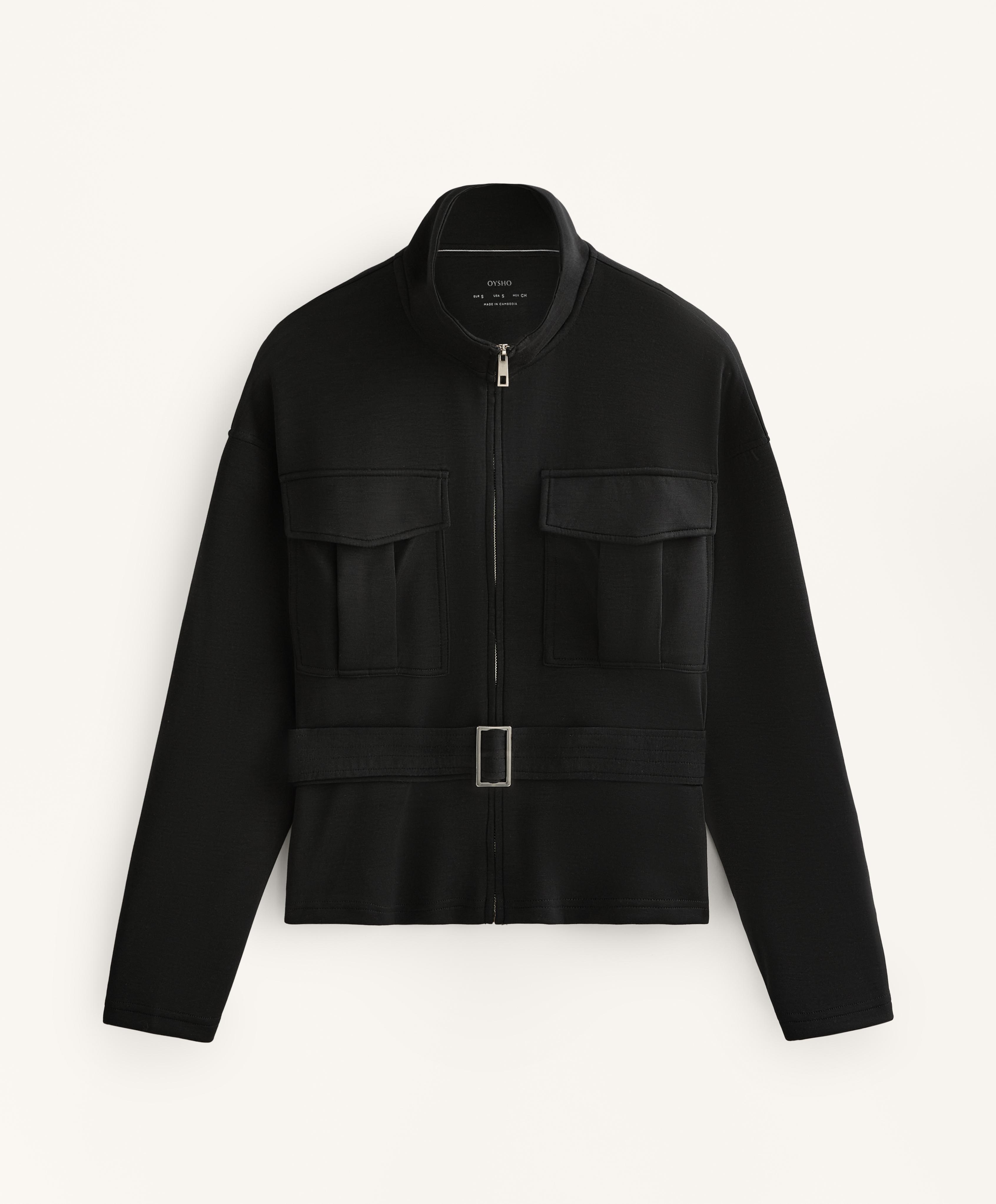 Oysho Куртка с ремнем из мягкой ткани с модалом, черный