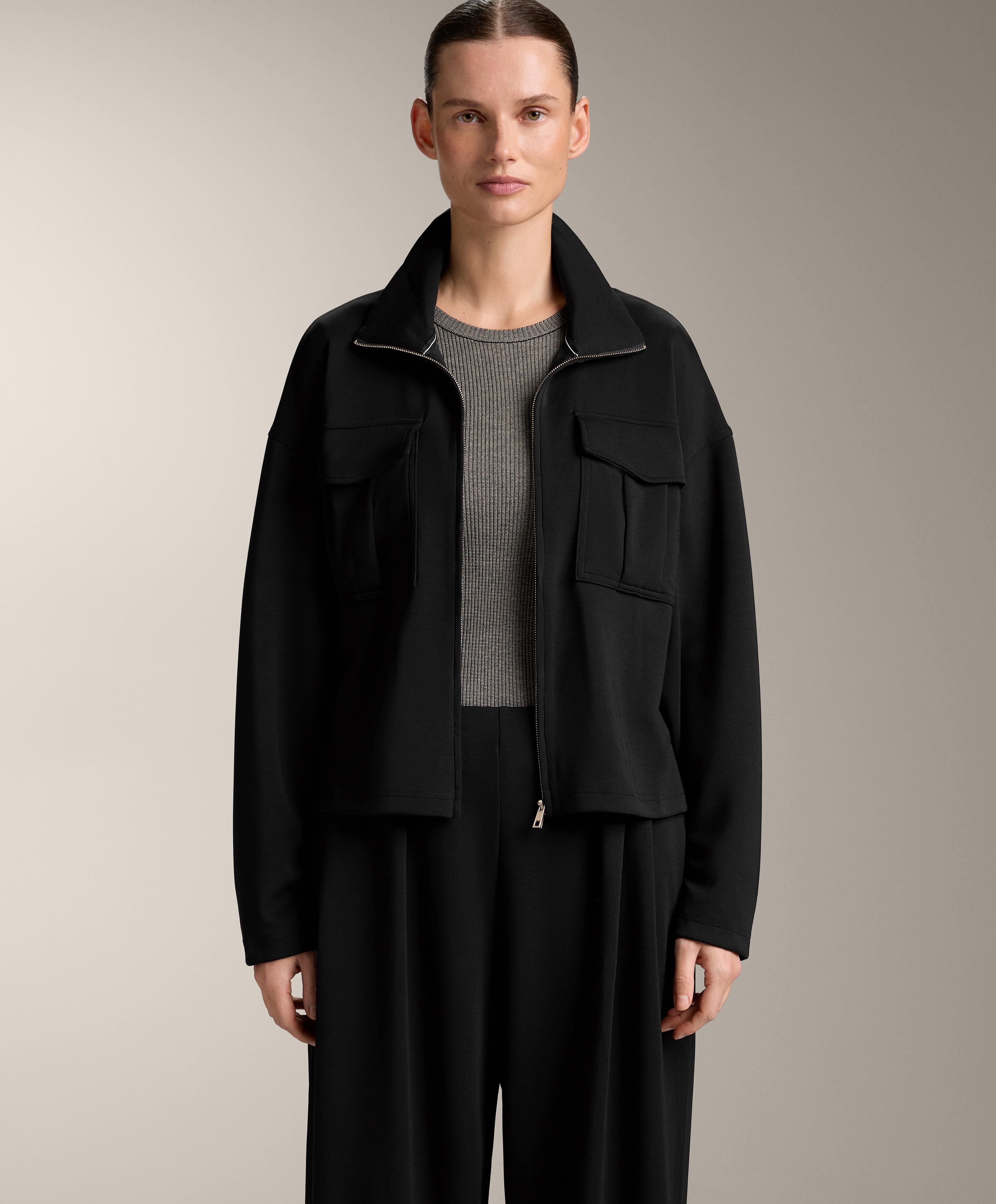 Куртка с длинным рукавом и воротником-стойкой. Застежка-молния спереди и нагрудные карманы. В комплекте регулируемый пояс. Дышащая ткань с модалом, очень мягкая на ощупь.
