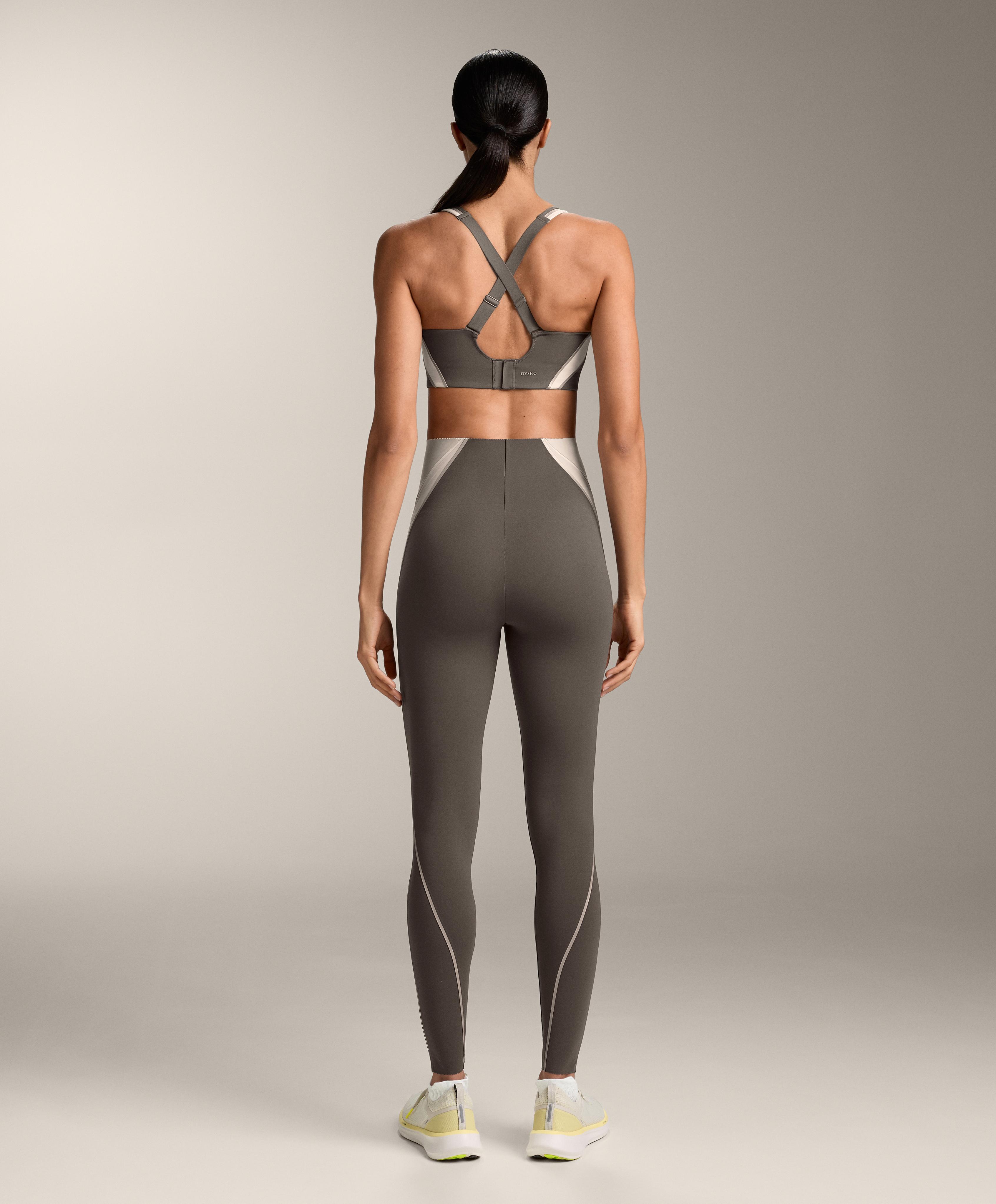 Легинсы с высокой талией, обеспечивающие компрессионный эффект и поддержку до щиколотки, гарантируют фиксацию во время самых интенсивных тренировок. Широкий силиконизированный пояс с бесшовной передней частью. Утягивающая ткань подчеркивает фигуру и создает силуэт, не стесняя движений. Светоотражающие элементы. Высокопрочная, дышащая ткань.