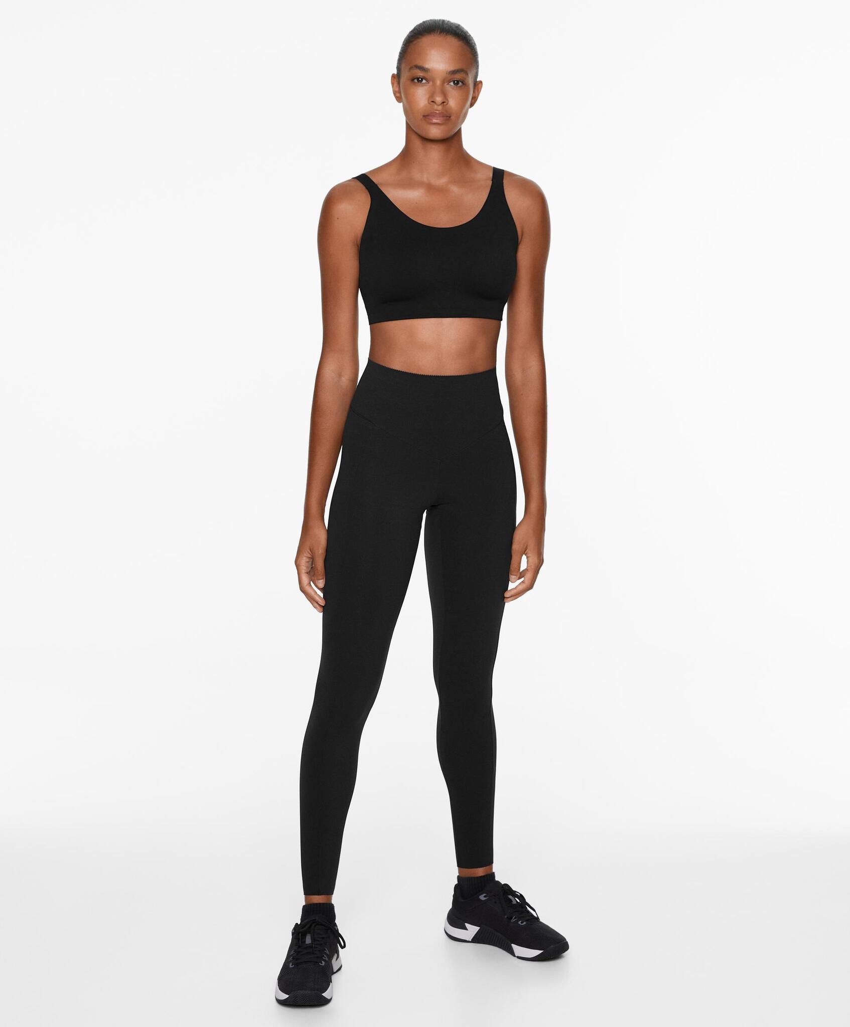 OYSHO Легинсы до щиколотки Compressive, карман и высокая посадка, 65 см, черный