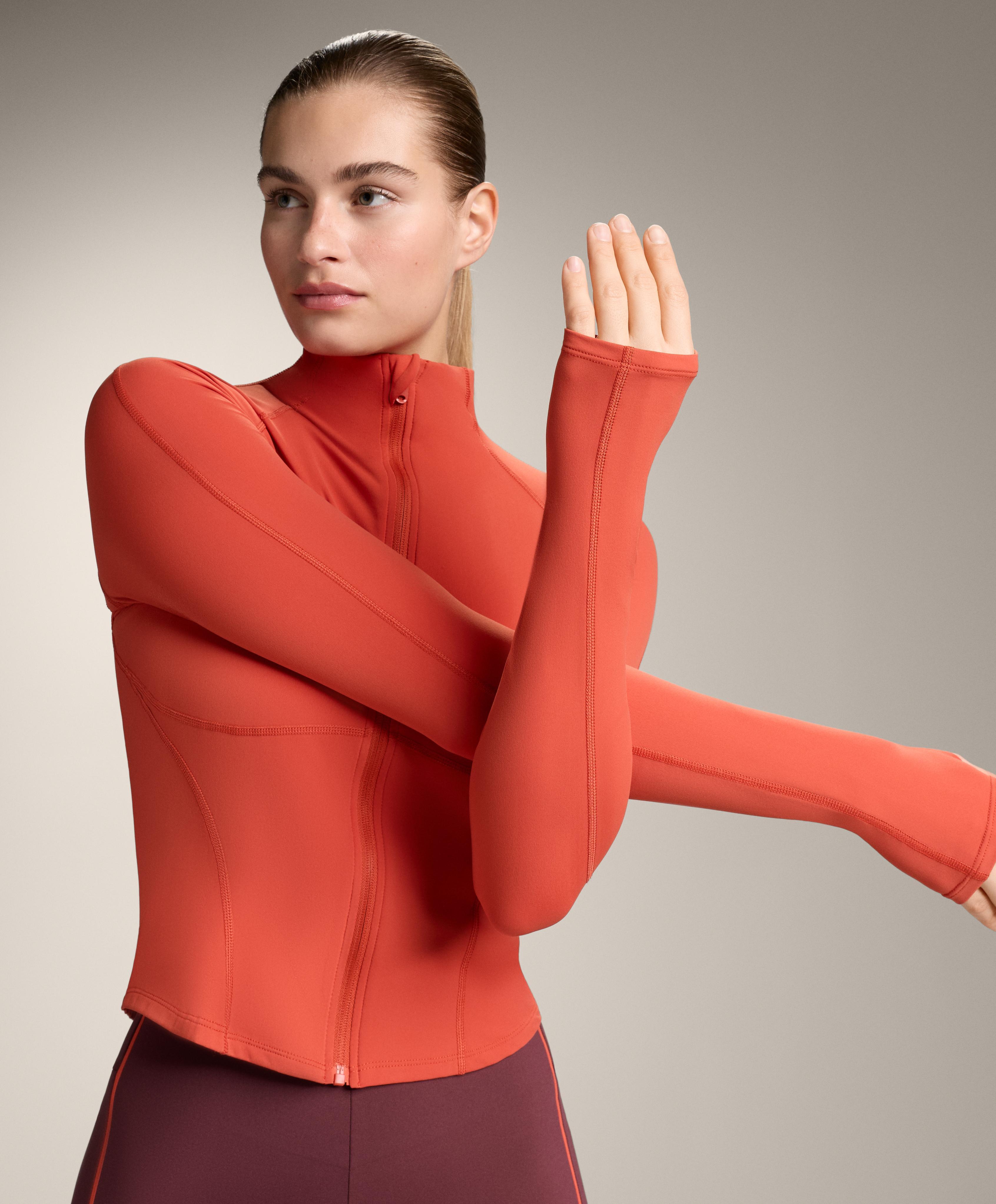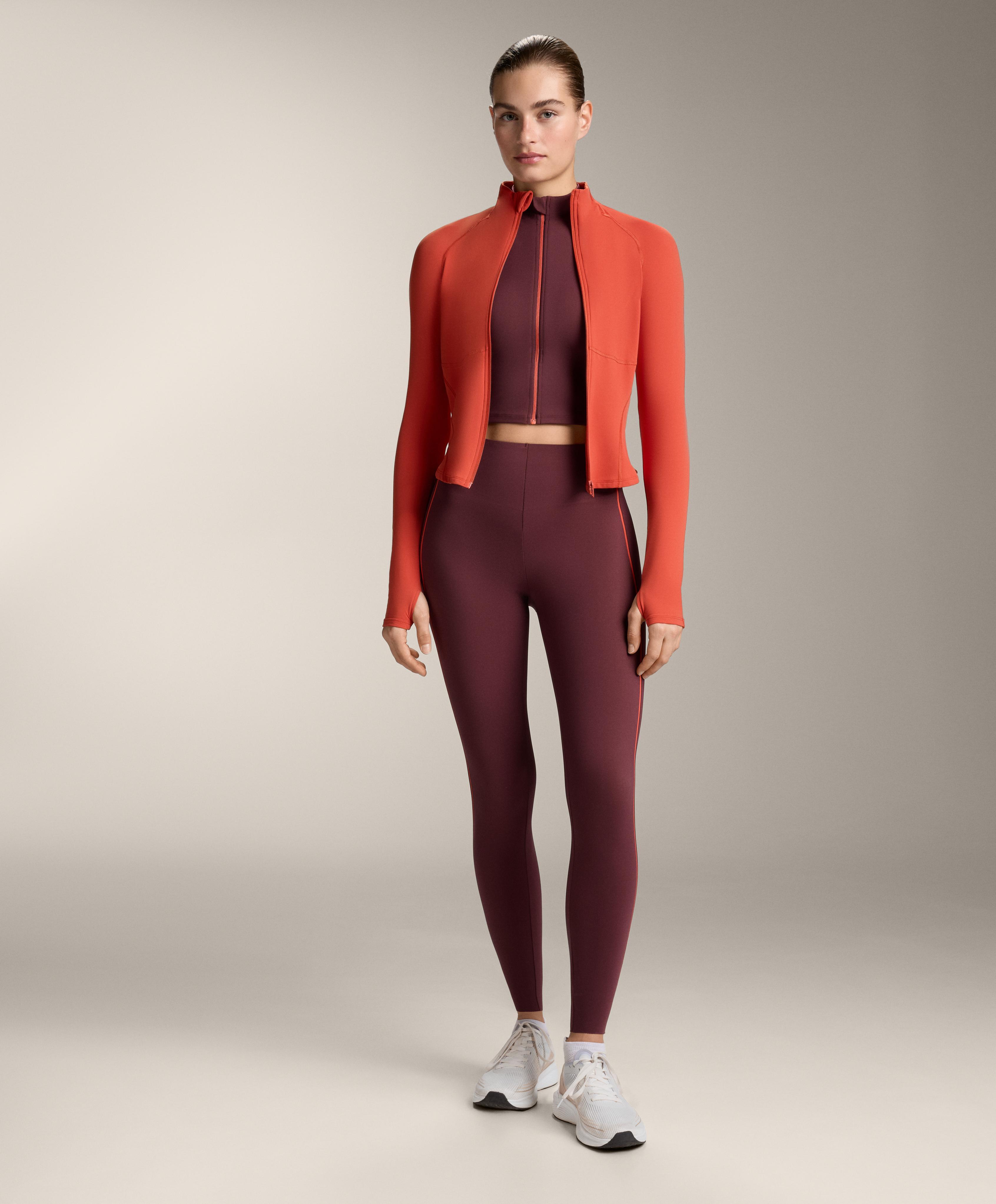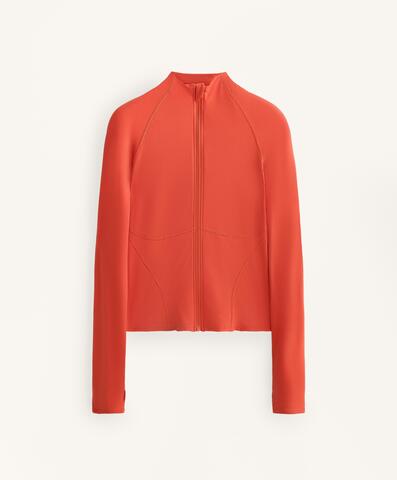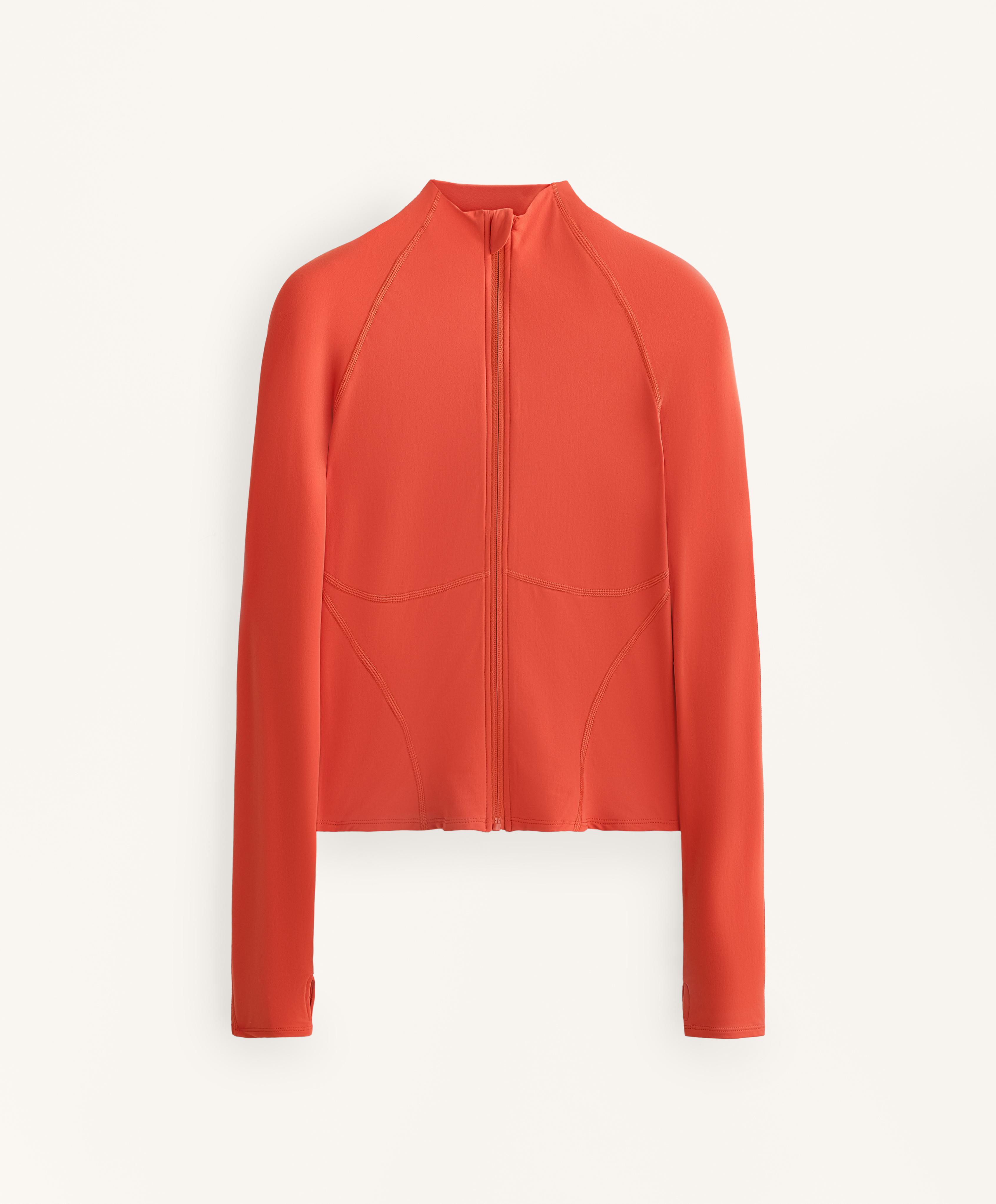 Высокотехнологичная куртка из мягкой ткани с длинными рукавами и застежкой-молнией. Карман на молнии сзади, декоративные швы в тон. В манжетах предусмотрено отверстие для большого пальца, обеспечивающее удобство при движении. Воздухопроницаемая ткань с дезодорирующими свойствами и высокой степенью защиты от ультрафиолетовых лучей UPF 40+. Изделие защищает от холода во время движения при температуре от +16º до -1º (подтверждено испытаниями в лабораторных условиях).