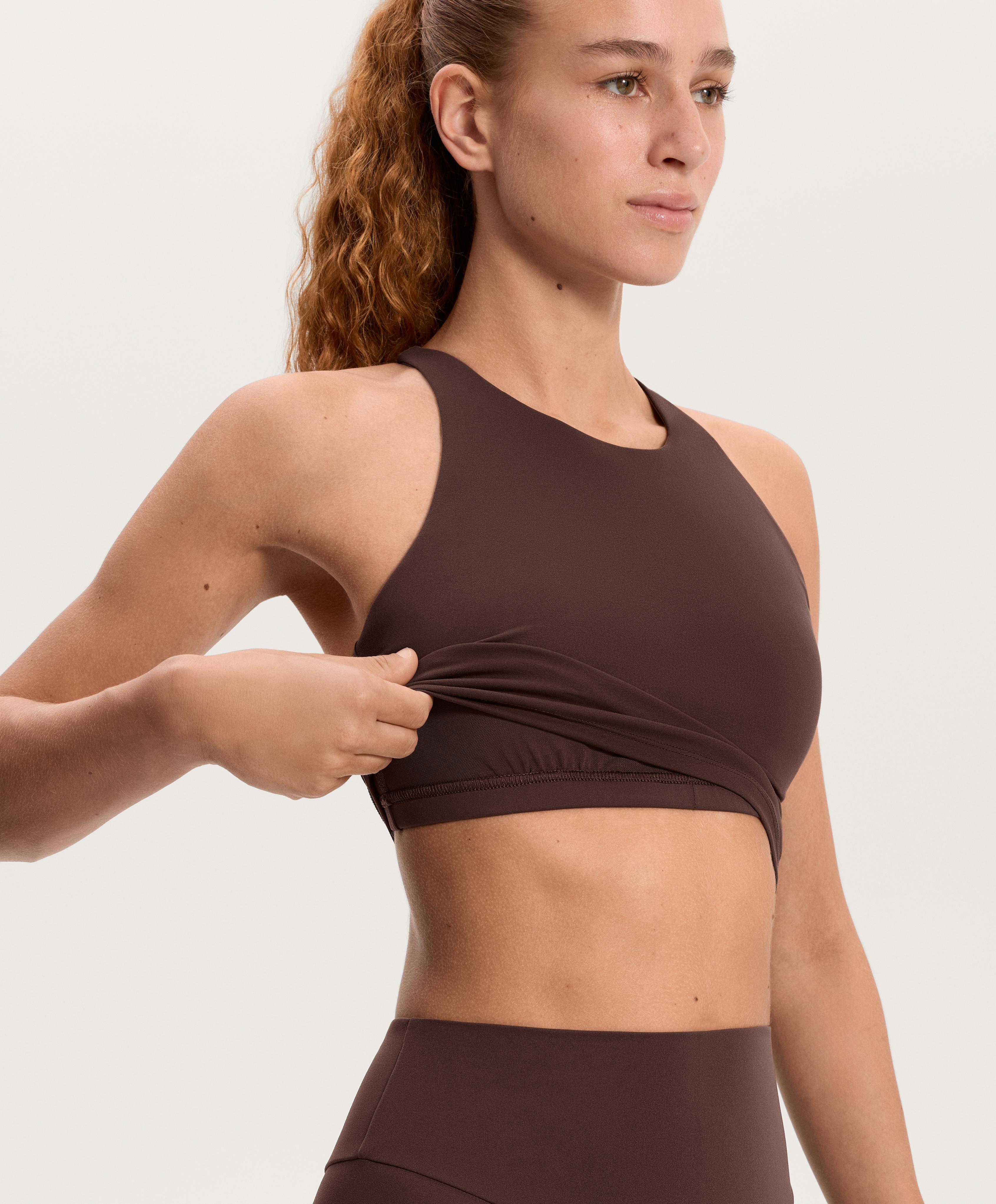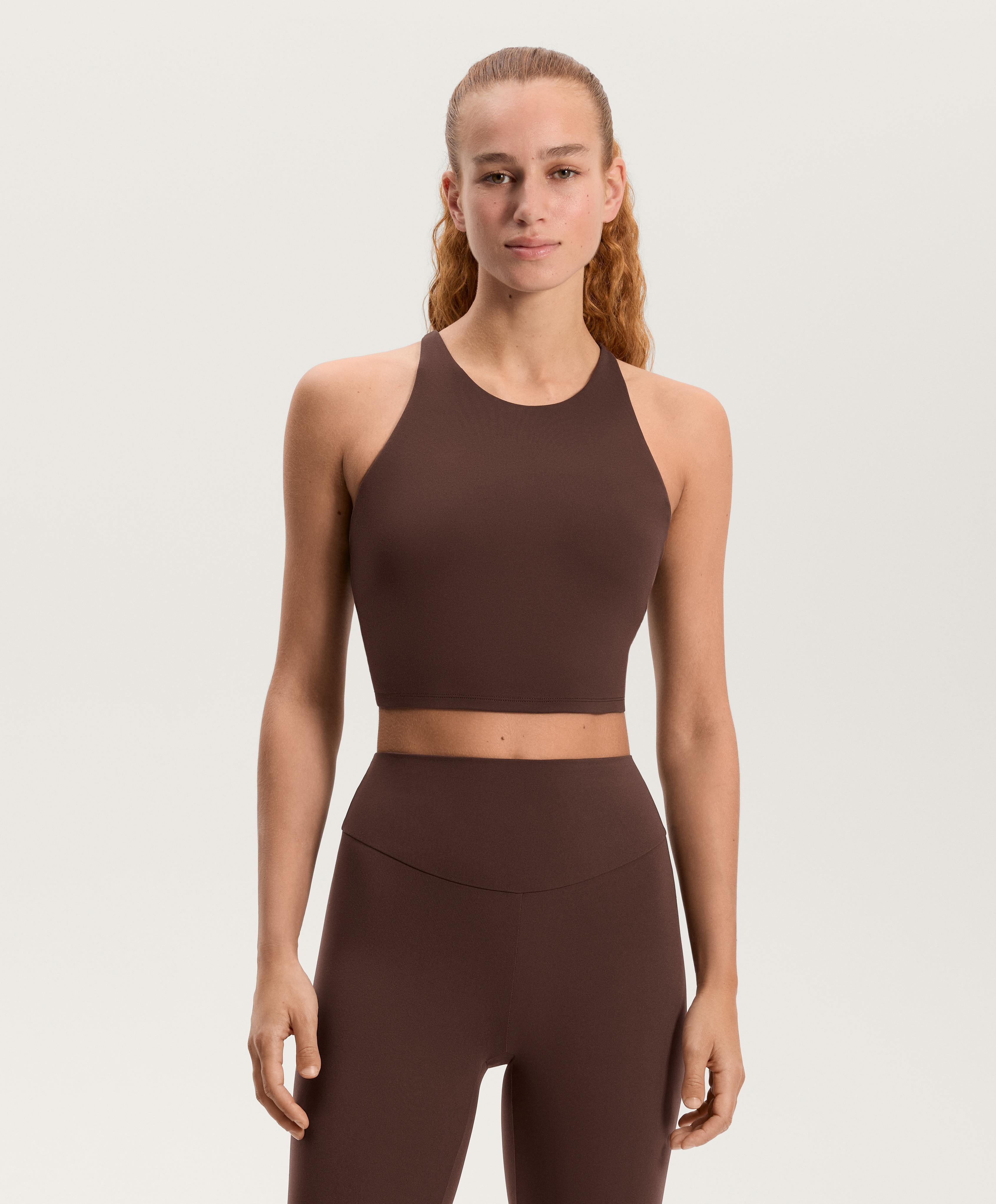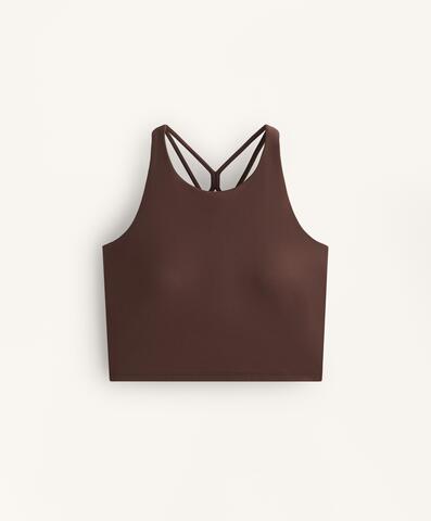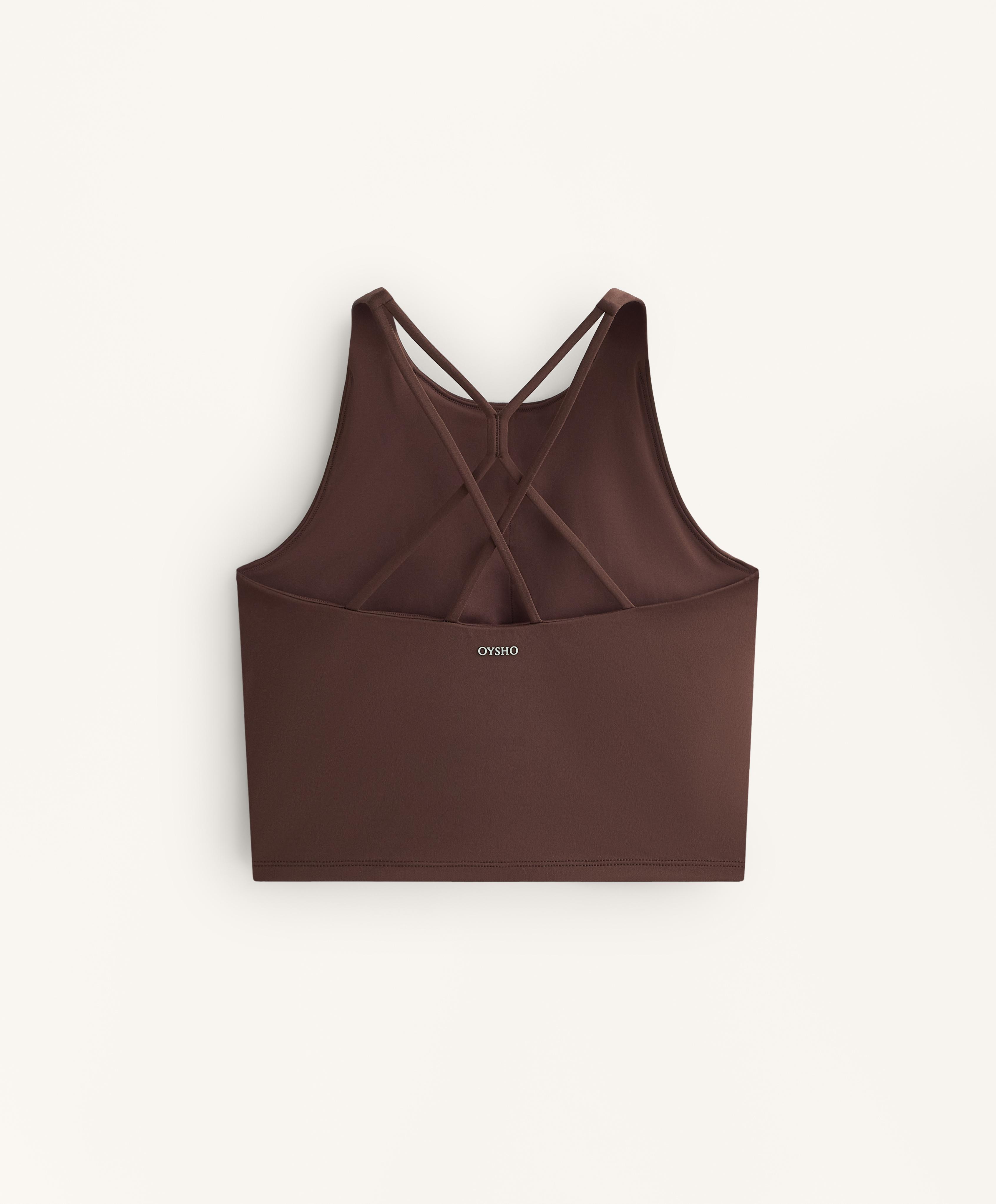 Oysho Майка Comfortlux с чашками и полосками на спине, коричневый