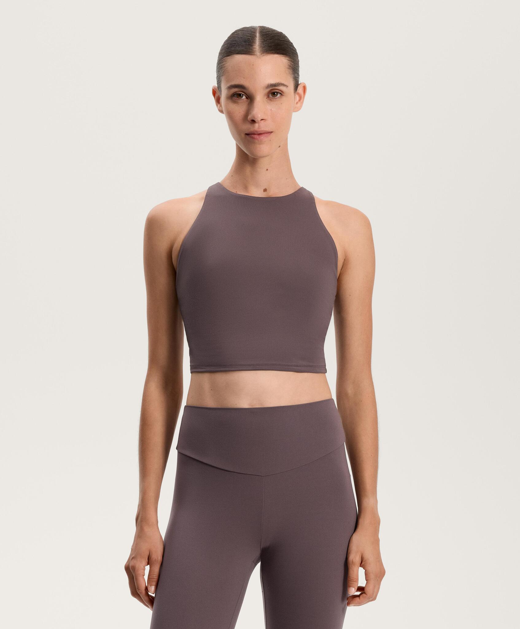 Oysho Майка Comfortlux с чашками и полосками на спине, серо-фиолетовый