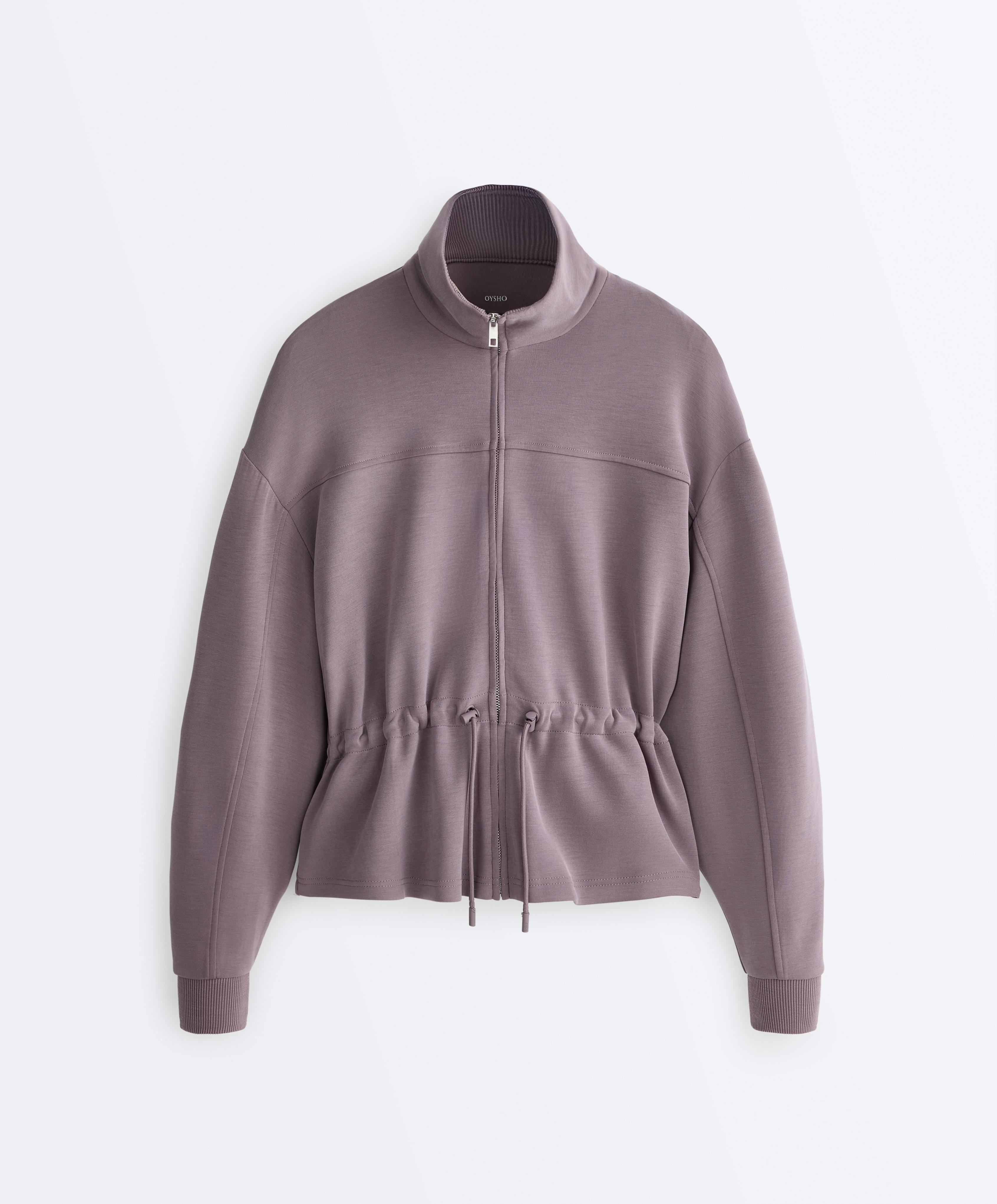 Oysho Мягкая куртка с регулируемой талией и высоким воротником, серо-сиреневый