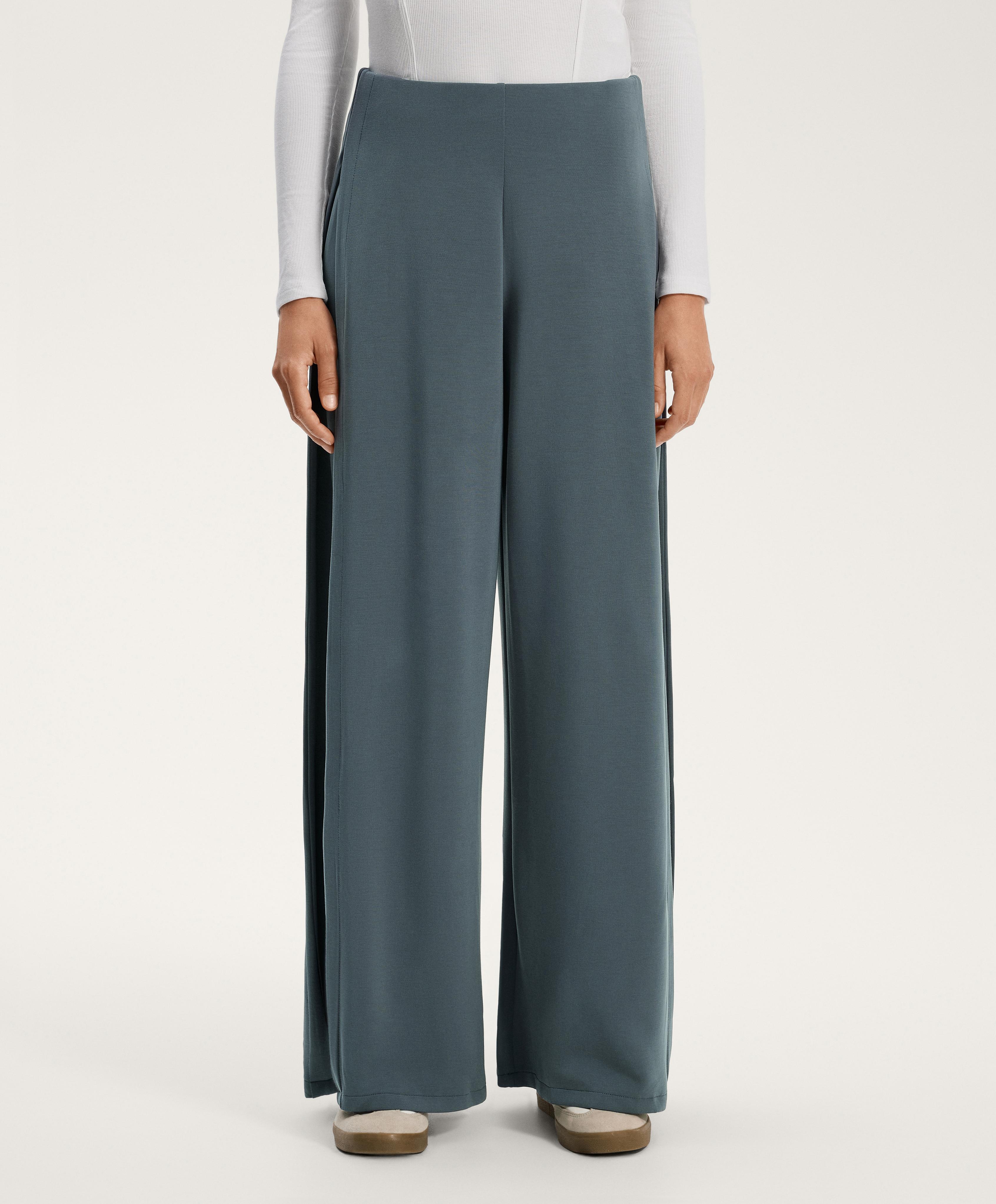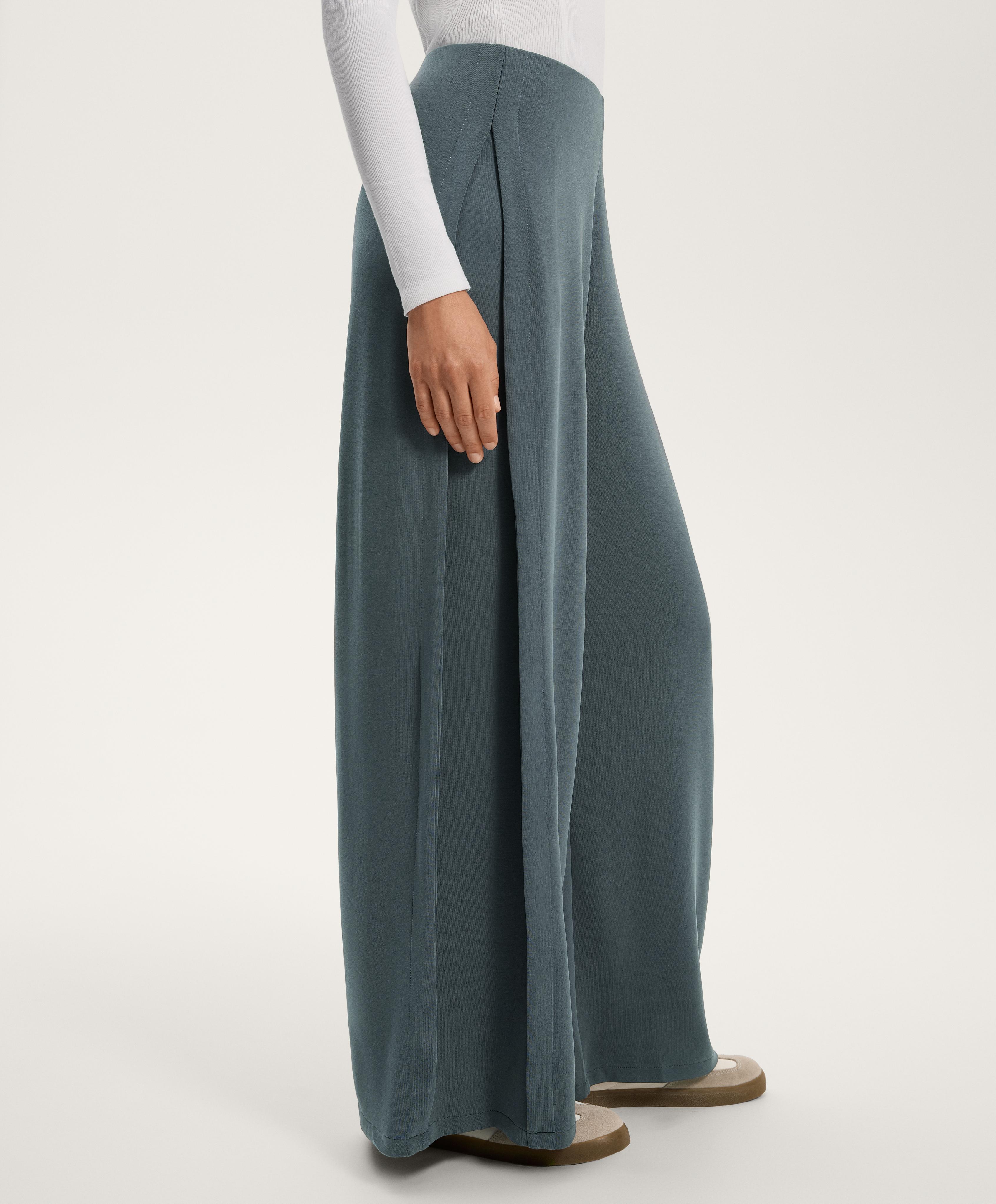 Брюки свободного кроя со складками по бокам. С передними карманами и регулируемой резинкой на талии. Дышащая ткань на основе модала, очень мягкая на ощупь.