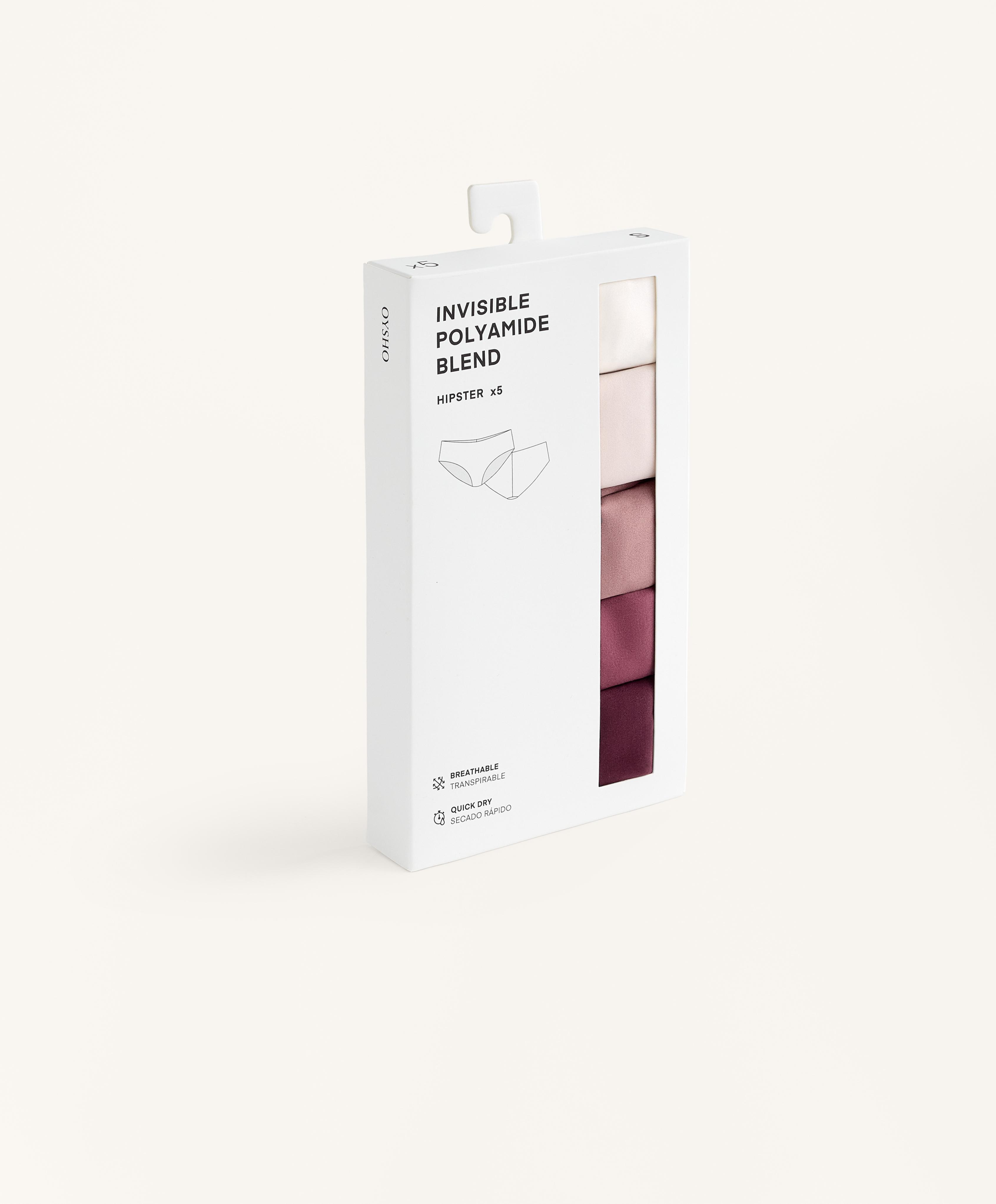 OYSHO Набор из 5 бесшовных трусов-хипстеров, бордовый