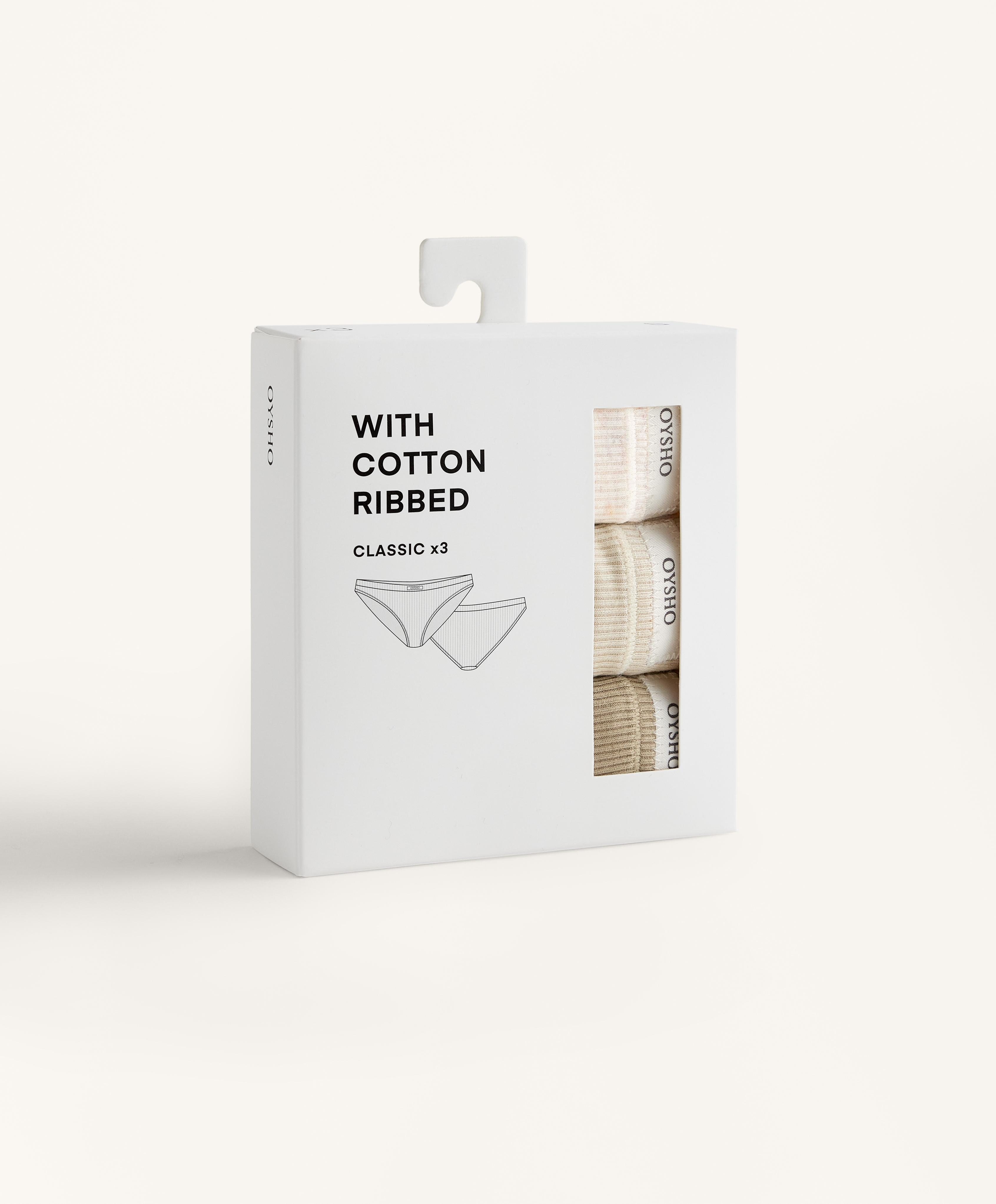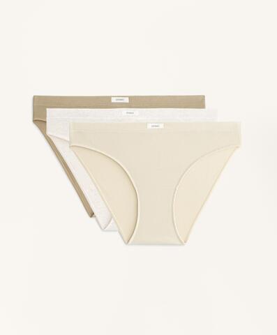 Комплект из 3 классических трусов из хлопковой ребристой ткани разных однотонных цветов. Эластичный пояс и логотип.