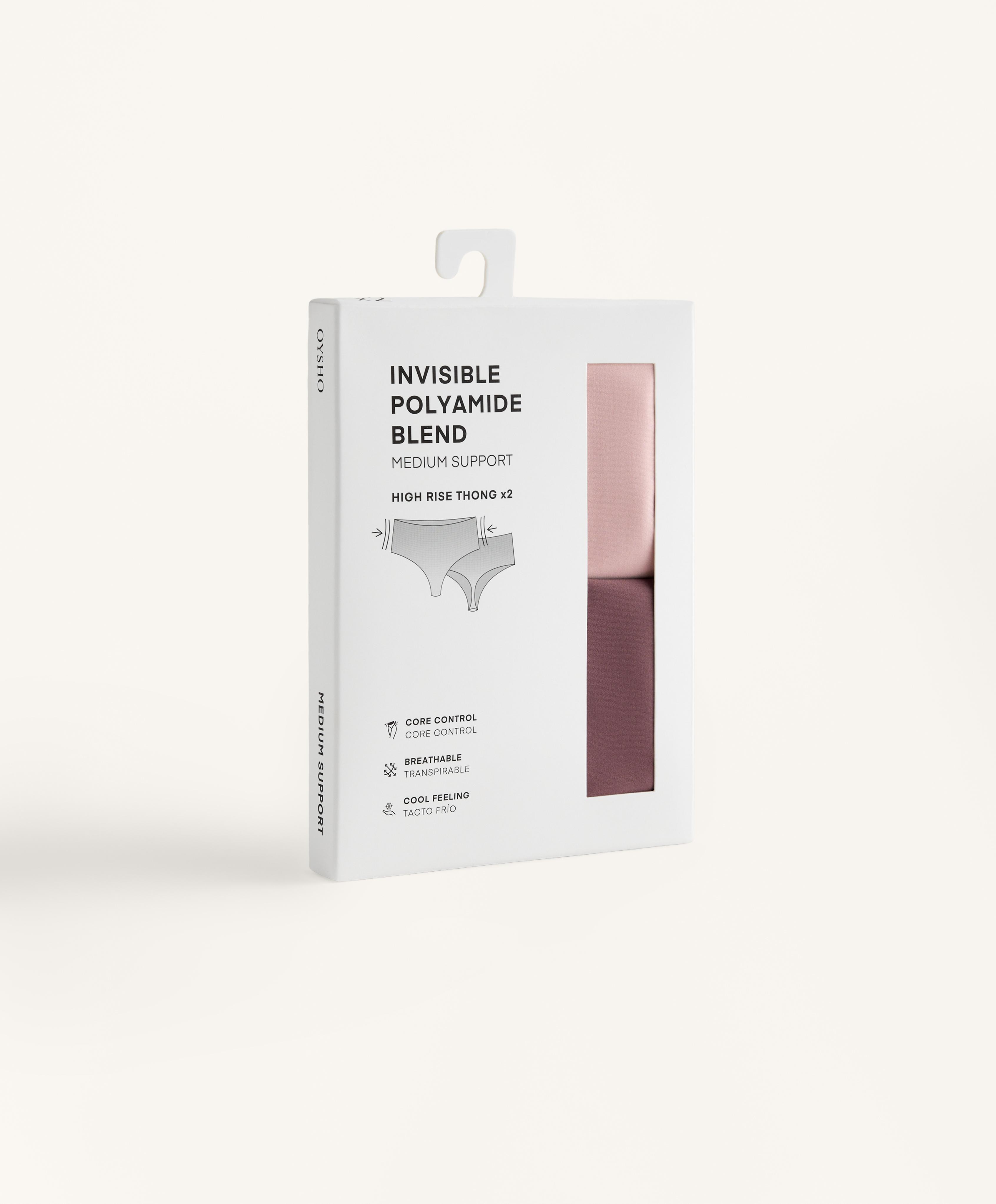 OYSHO Набор из двух трусиков-стрингов средней поддержки из смеси полиамида с высокой посадкой, темный баклажан