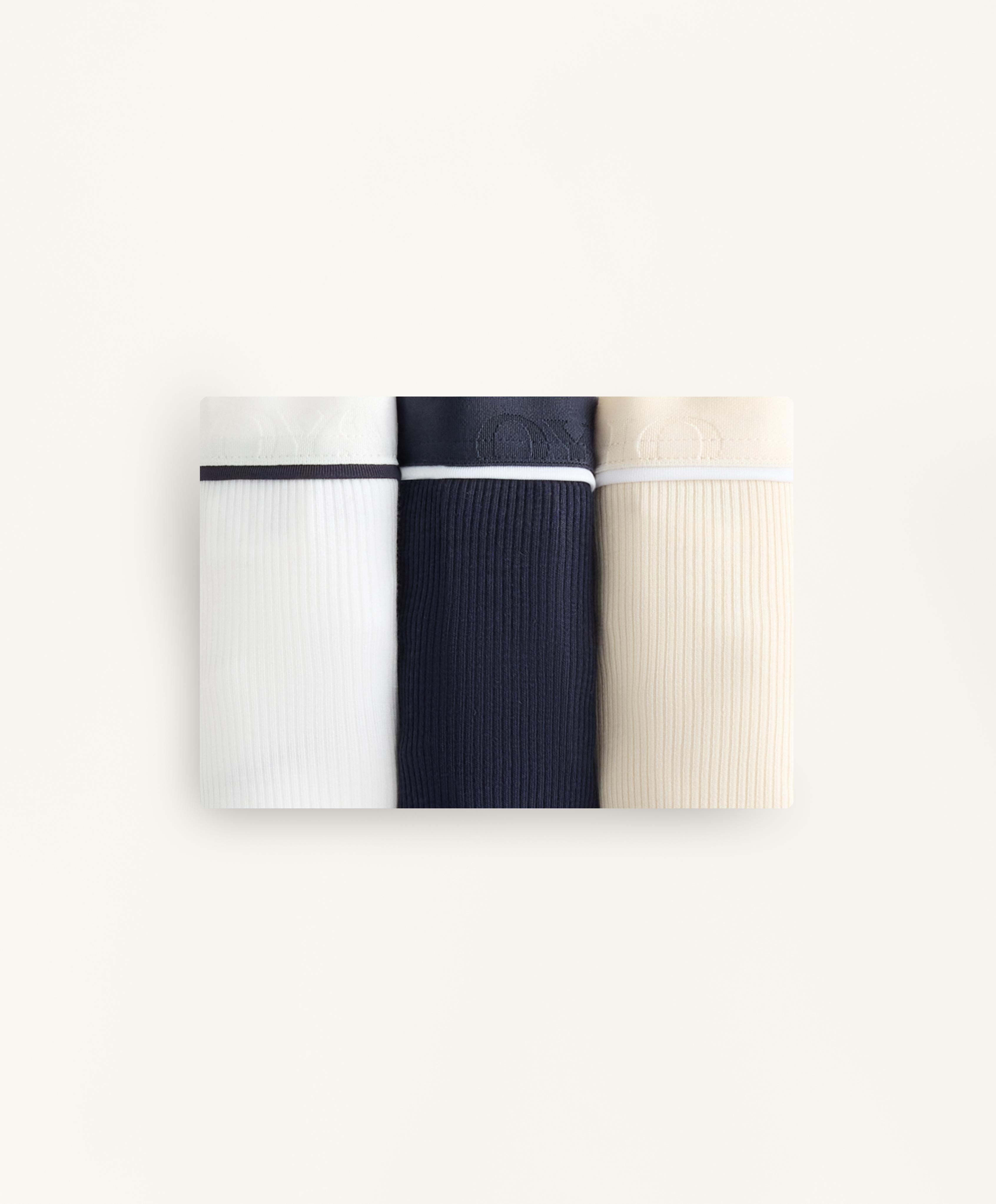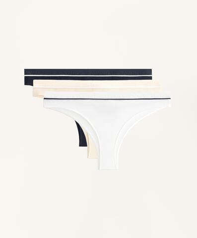 Комплект из 3 трусиков-слипов из бразильской хлопковой смеси разных однотонных цветов. Эластичный пояс, ребристая отделка и контрастная окантовка.