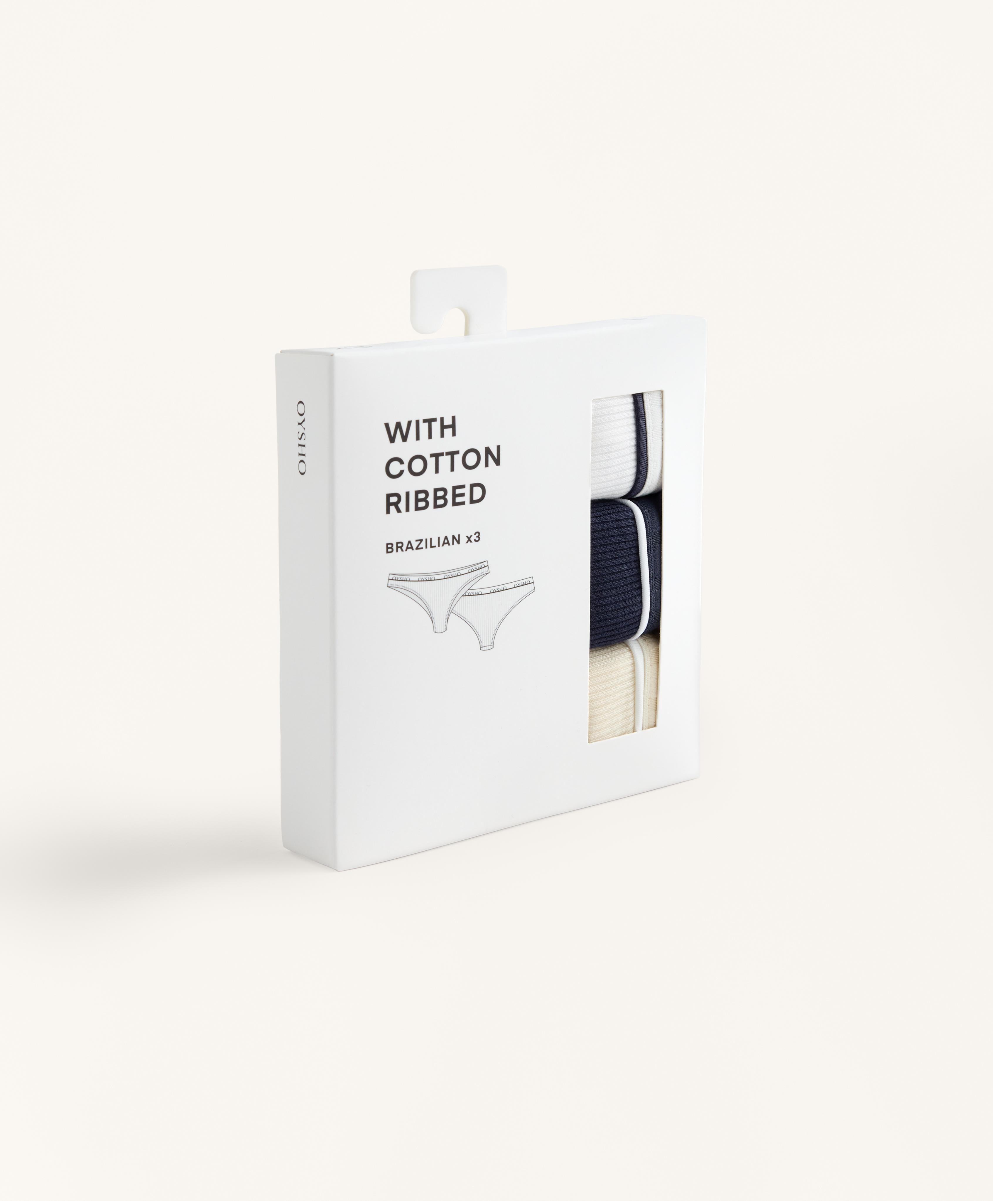 OYSHO Набор из трех трусиков-бразильяно из хлопковой смеси в рубчик, желтый