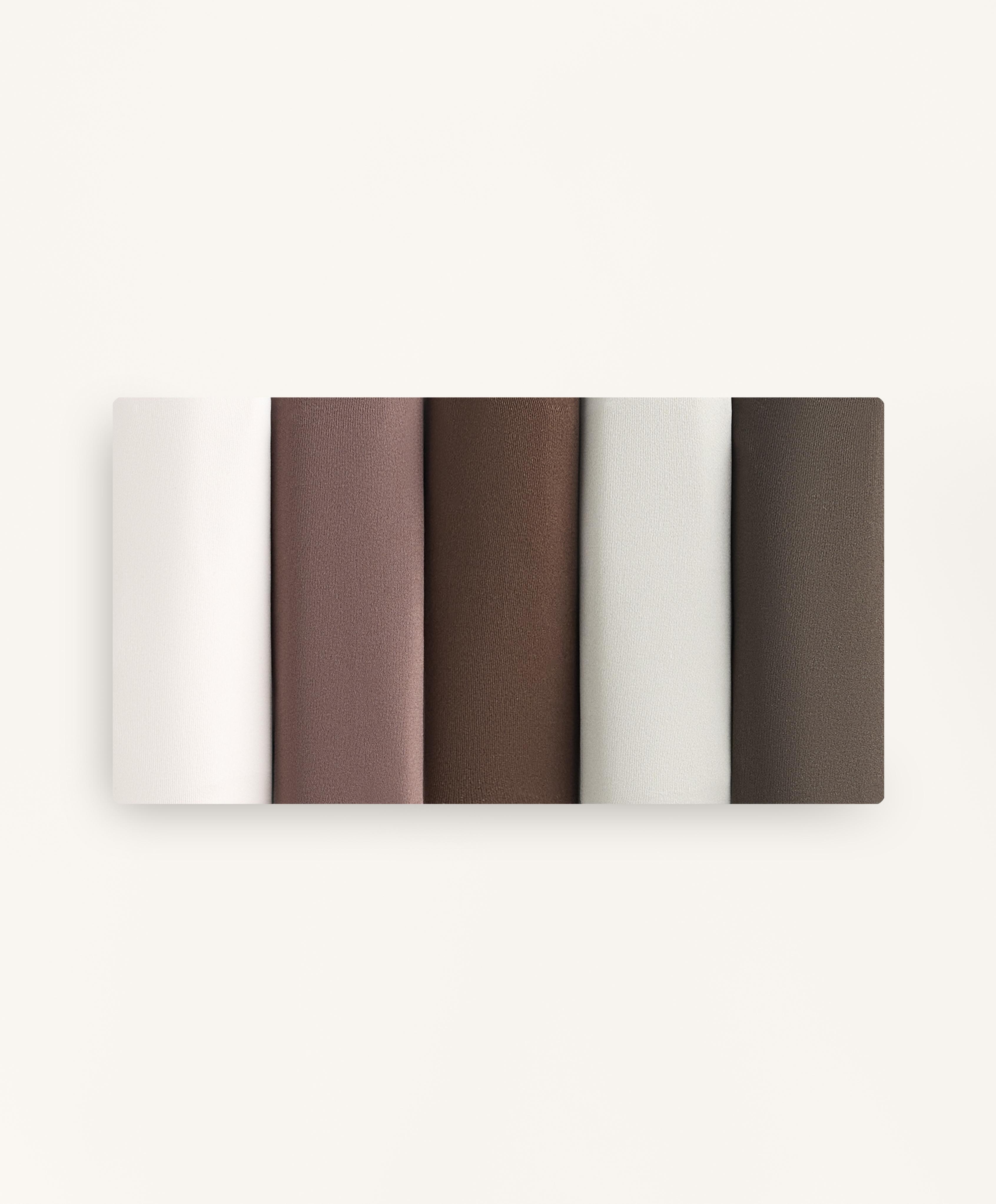 Набор из пяти классических трусиков разных однотонных цветов с V-образным вырезом. Бесшовная ткань из полиамидной смеси с лазерной перфорацией. Дышащие и быстросохнущие.