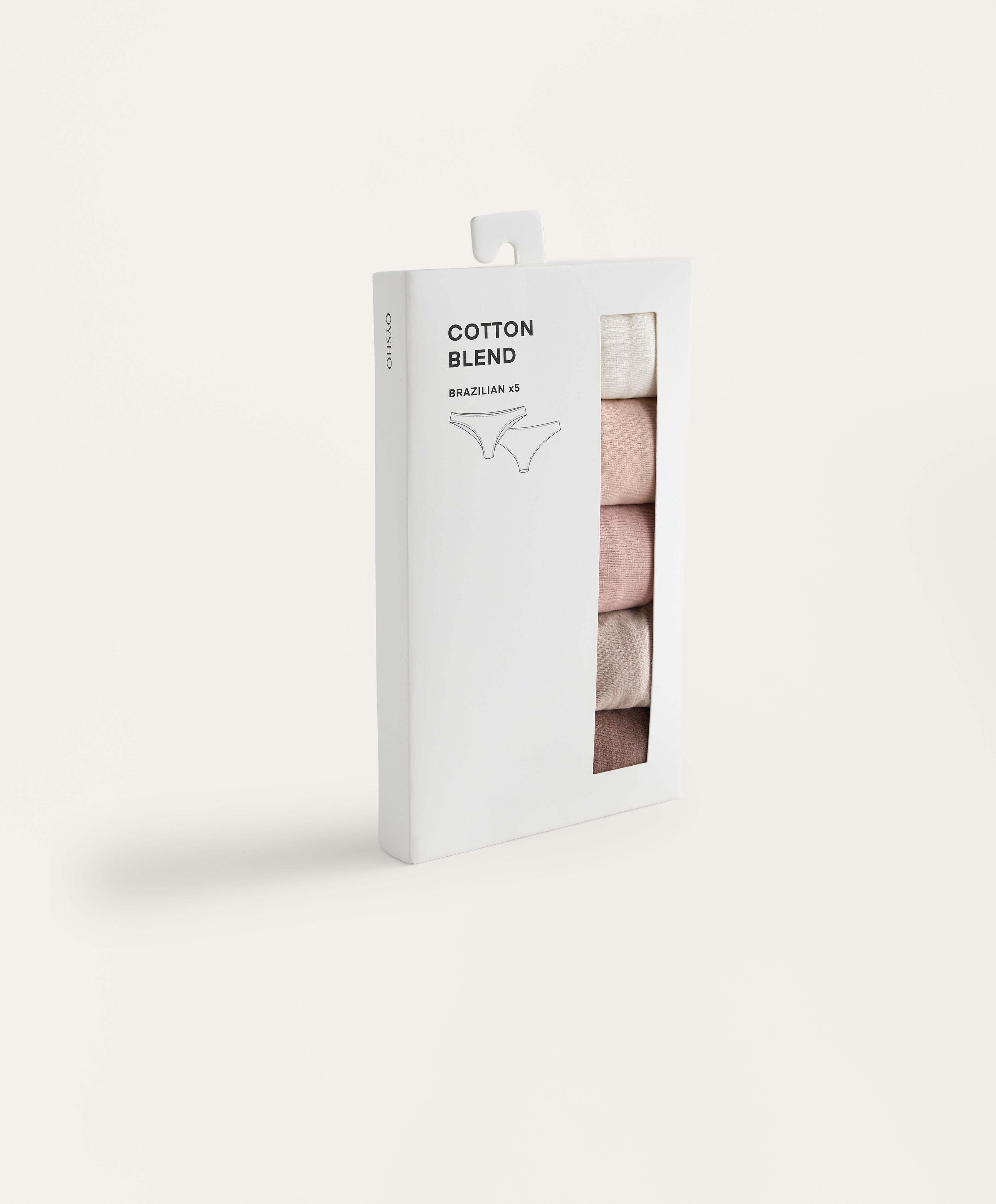 OYSHO Набор из пяти трусиков-бразильских из смесовой хлопковой ткани, бежево-розовый