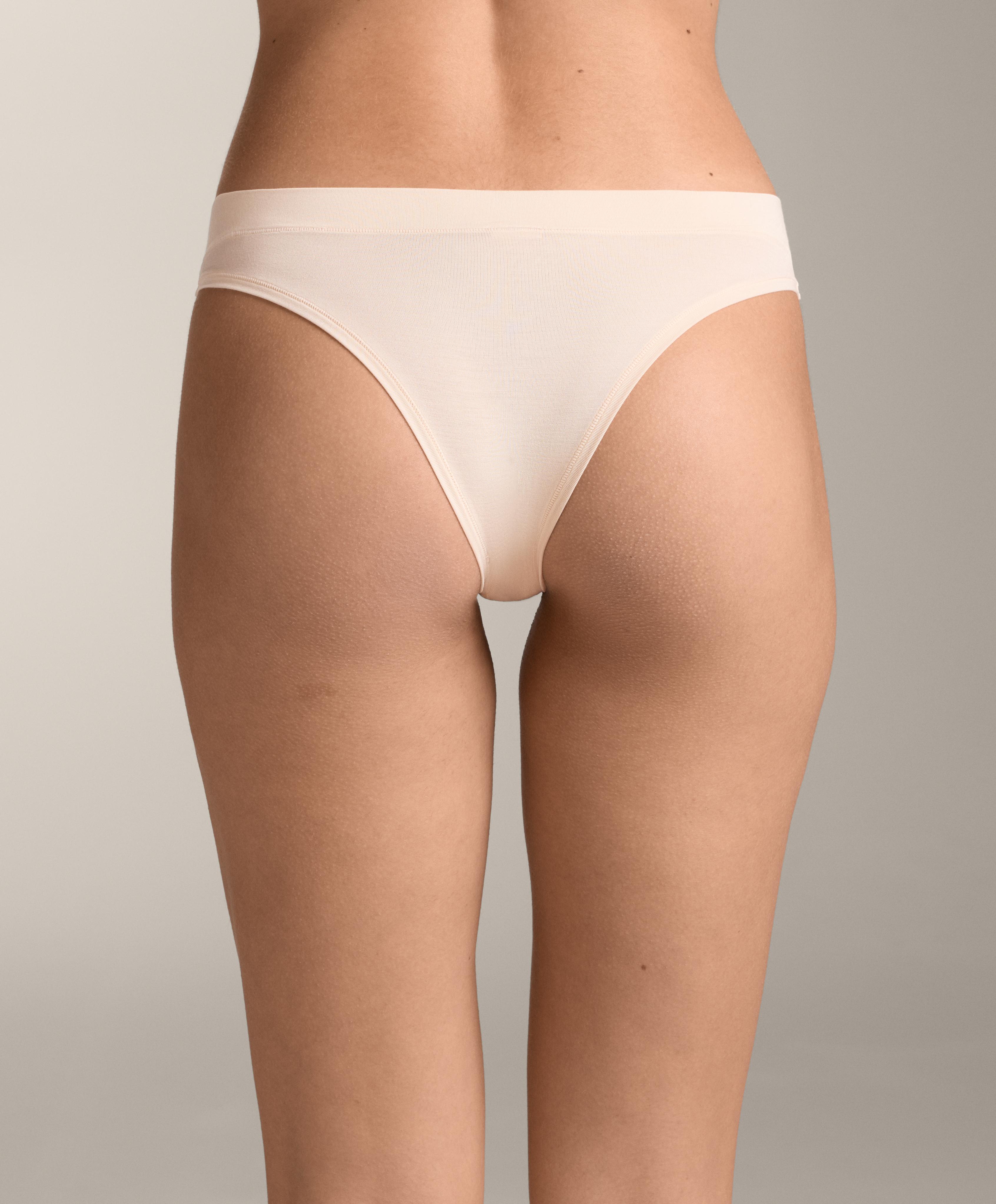 Комплект из трех классических трусиков из смесовой ткани модала разных однотонных цветов с V-образным вырезом. Эластичный пояс.
