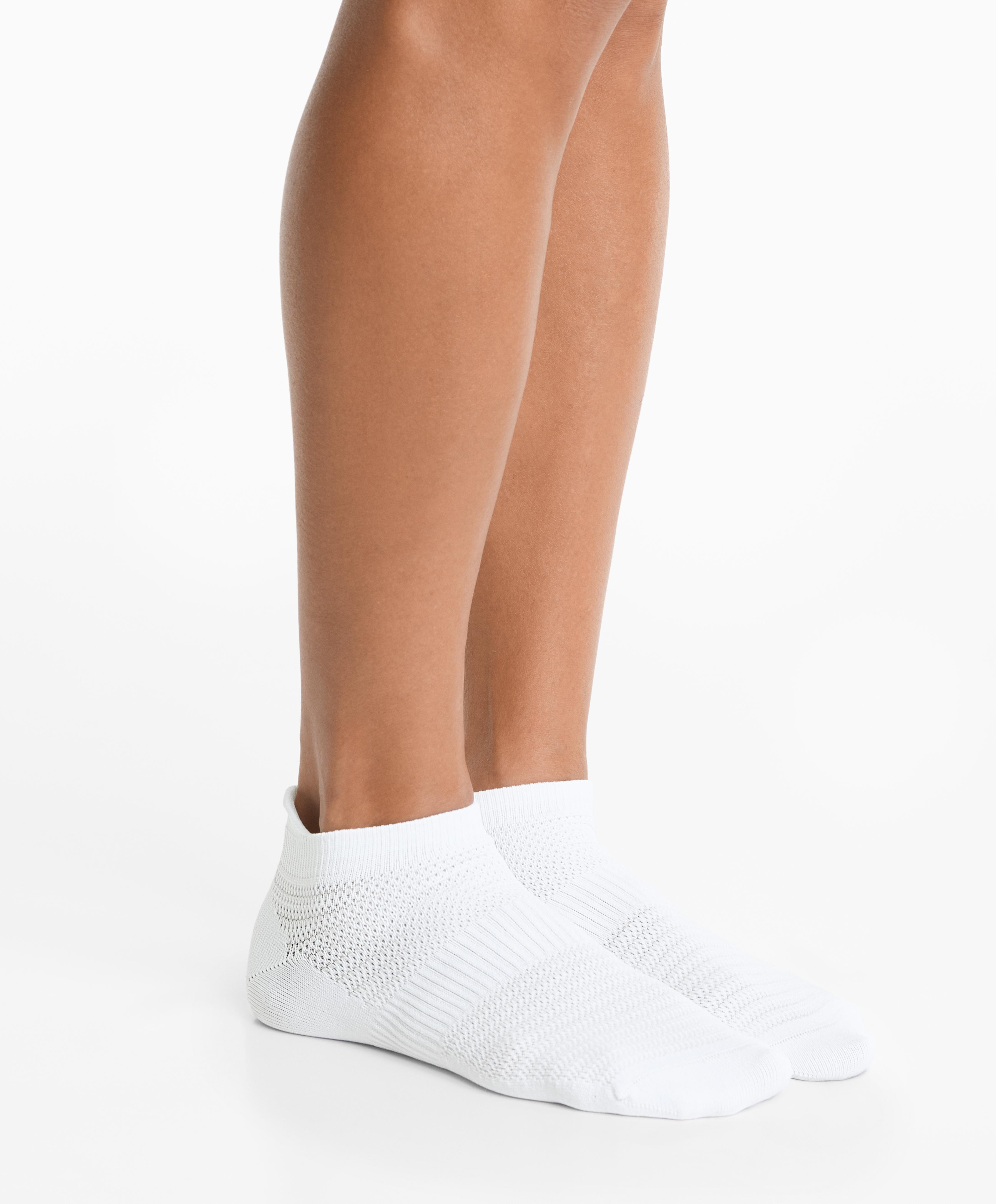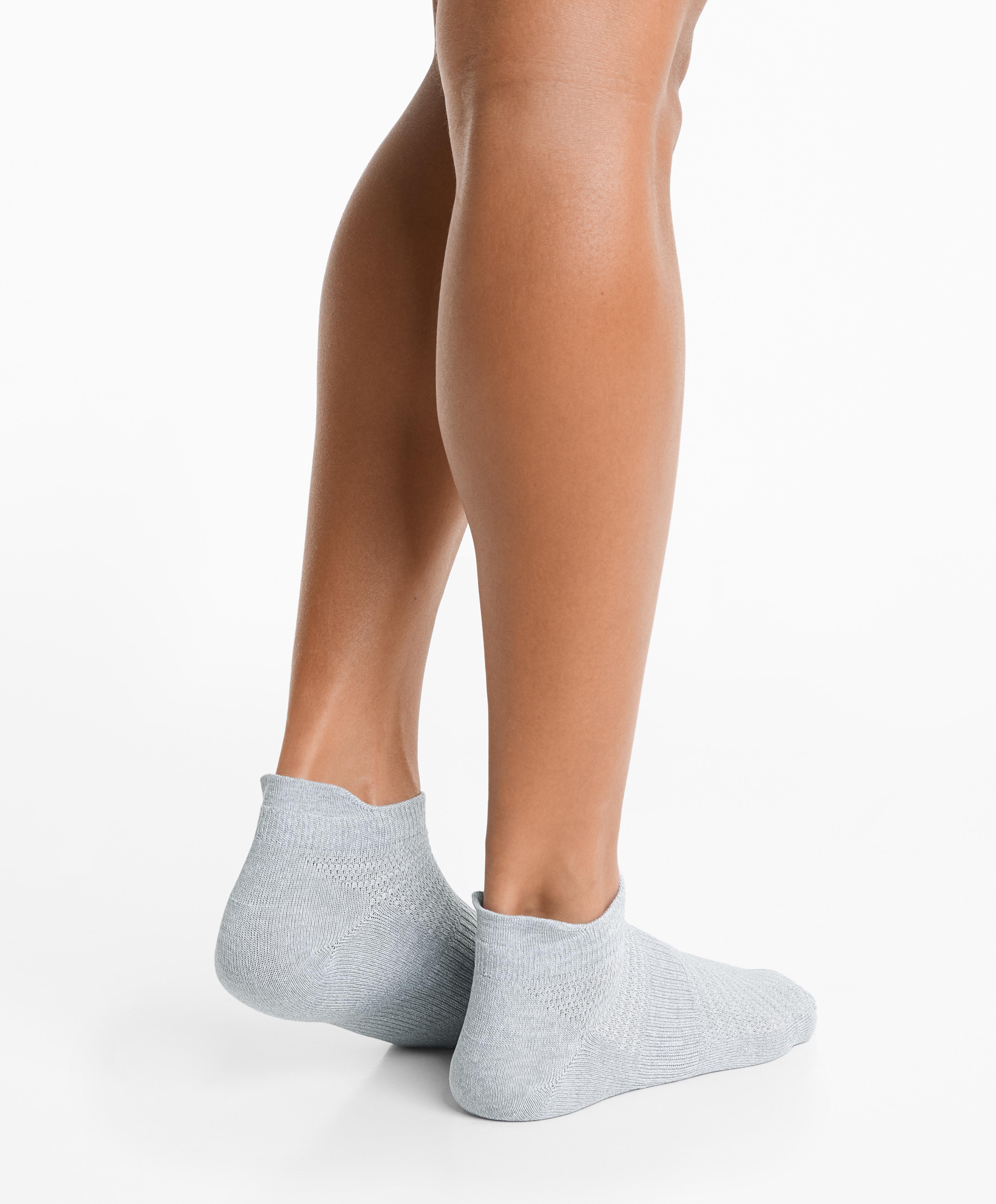 Набор из 3 пар носков для кроссовок из полиамидной смеси с видимым язычком на пятке. Имеют плоские швы, сетчатую вставку на подъеме и поддержку свода стопы для лучшего сцепления.