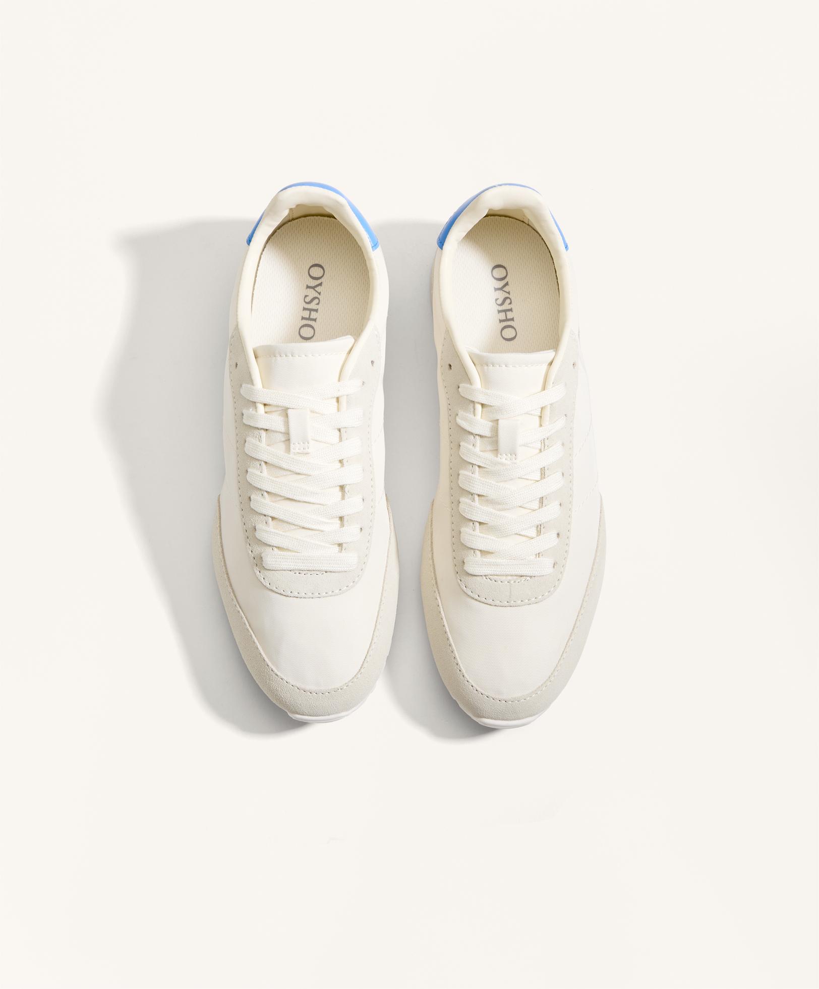 Oysho Нейлоновые кроссовки с вставками из натуральной кожи, экрю