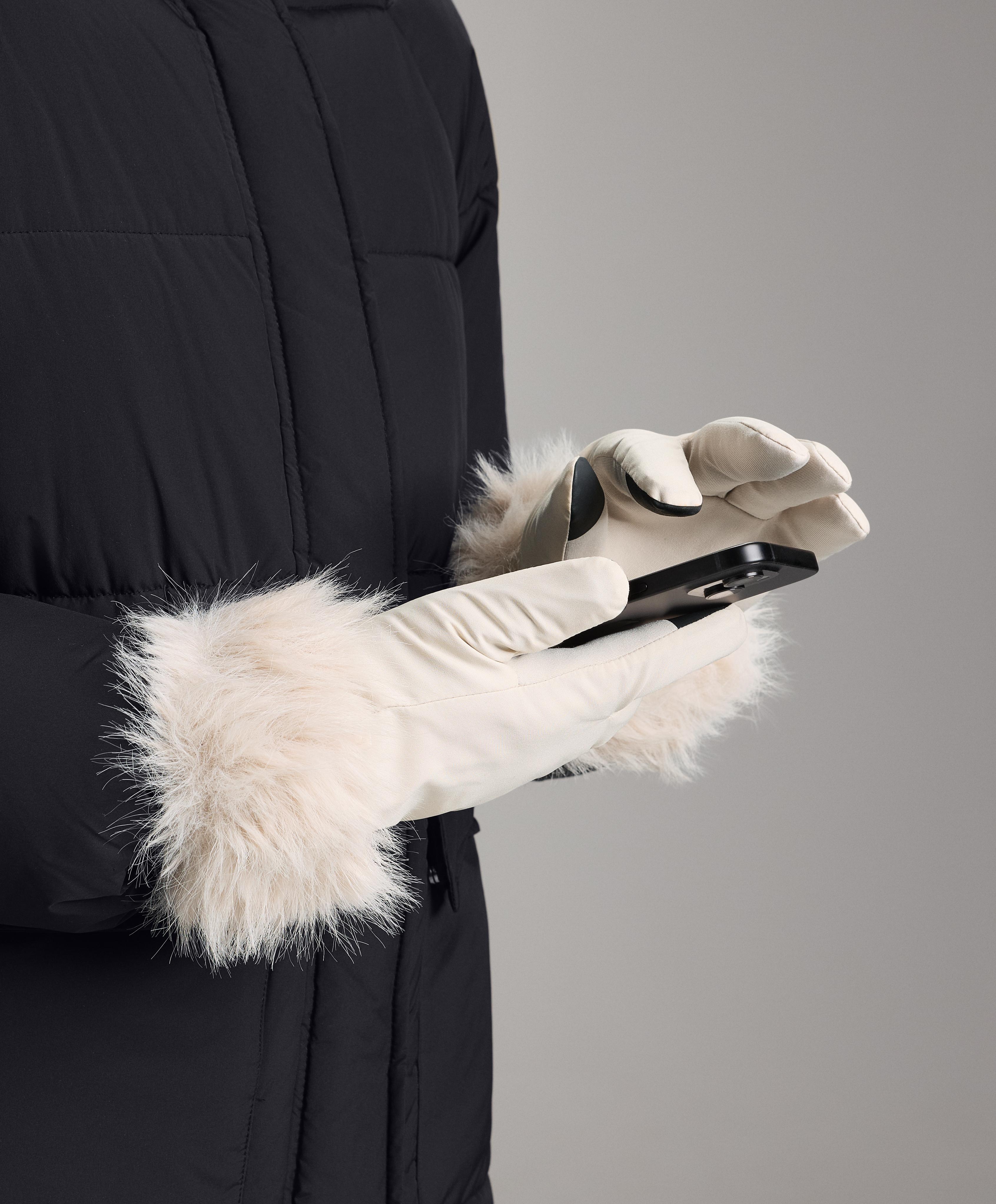 Утепленные перчатки с технологией Primaloft® Feel the Performance TM. Легкий наполнитель, разработанный для занятий спортом. Декоративные элементы с эффектом меха на запястье. Ткань с теплоудерживающими свойствами.