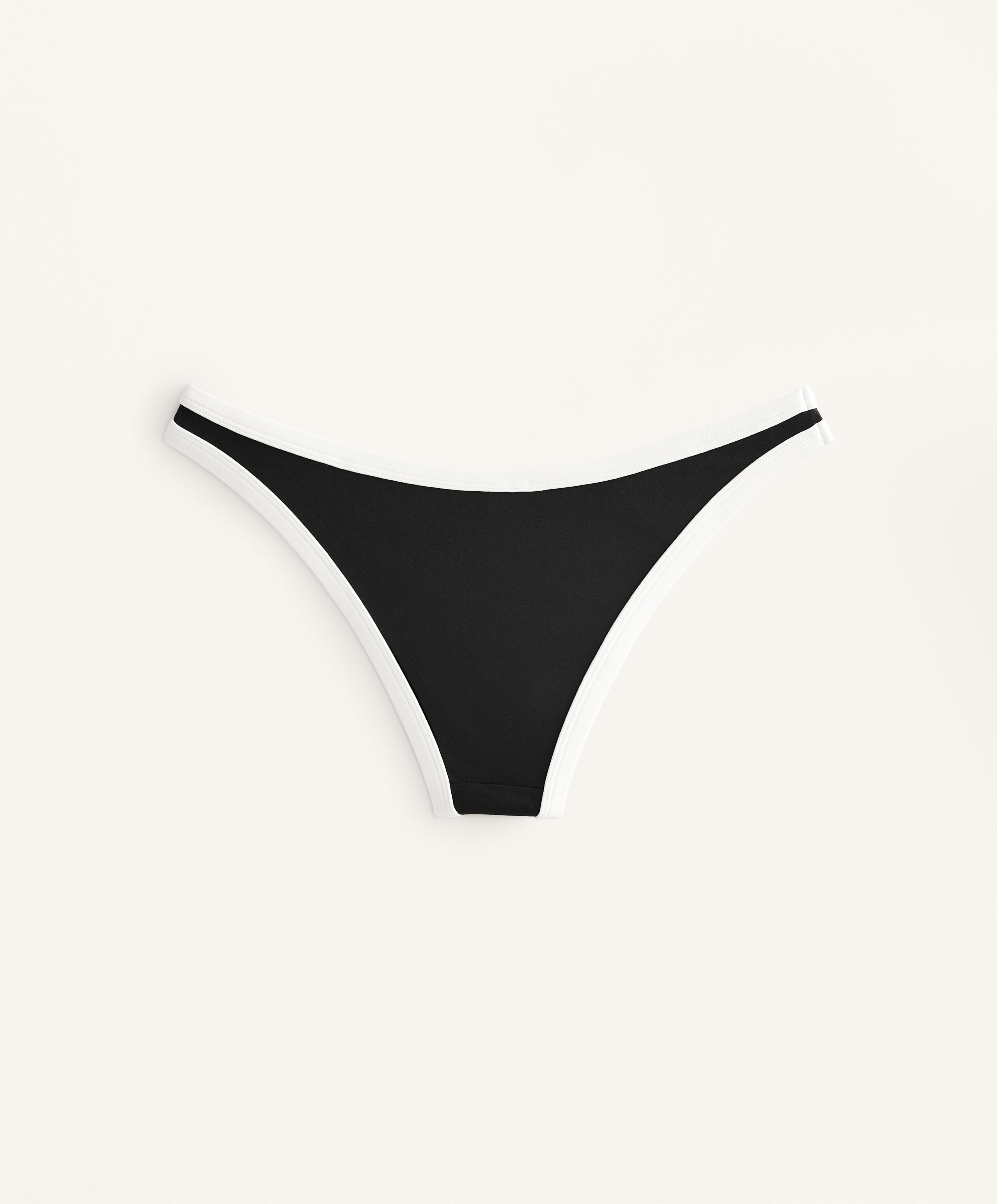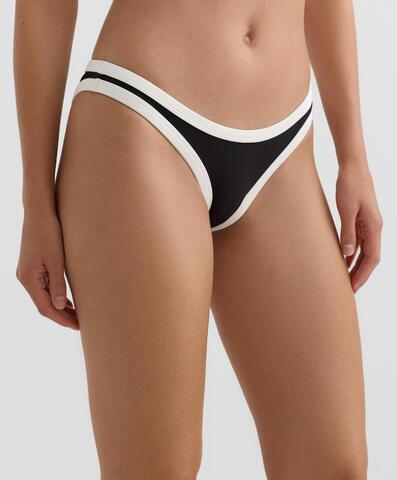 Трусики от бикини с контрастной отделкой и U-образным кроем. Средняя степень закрытости.