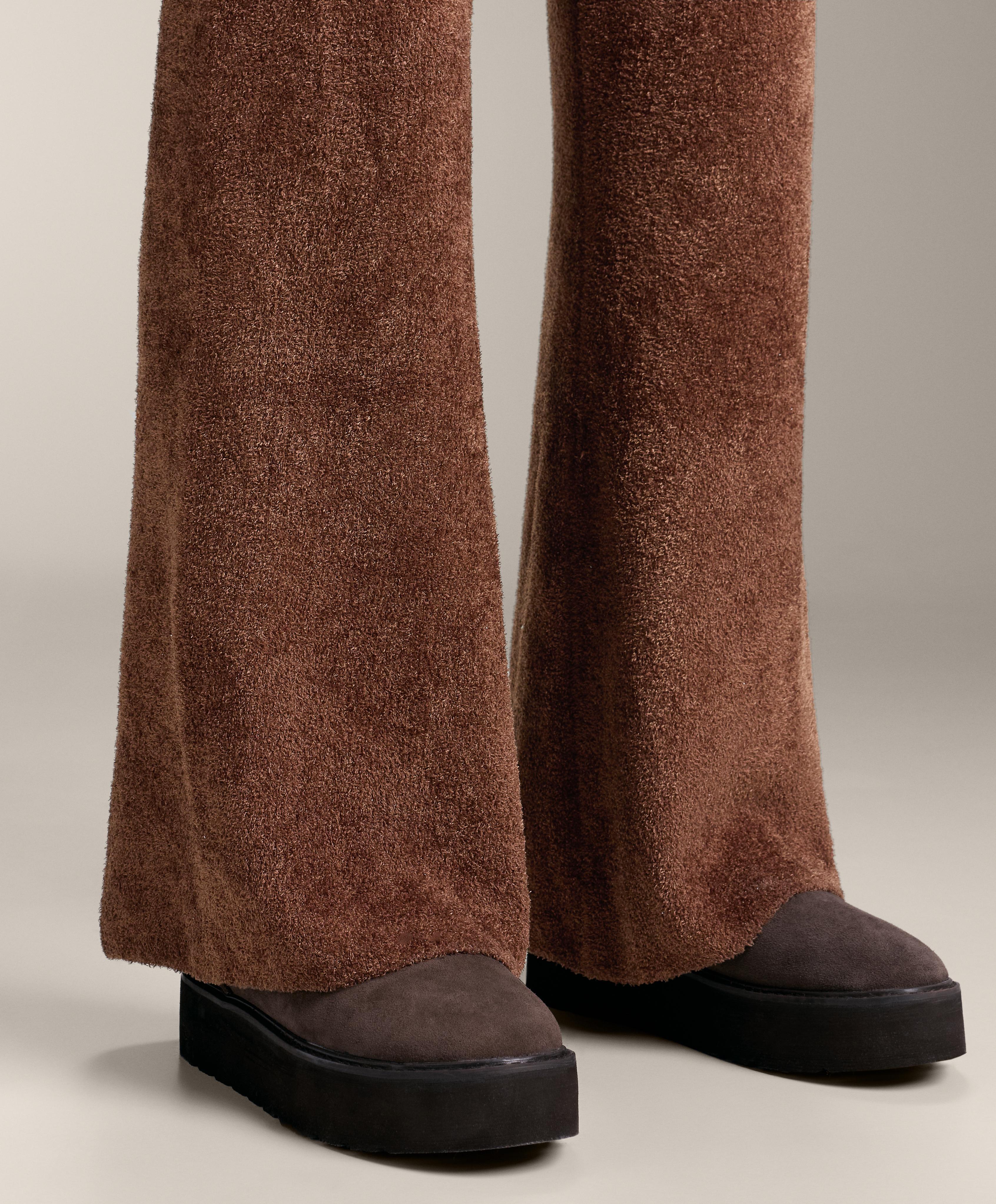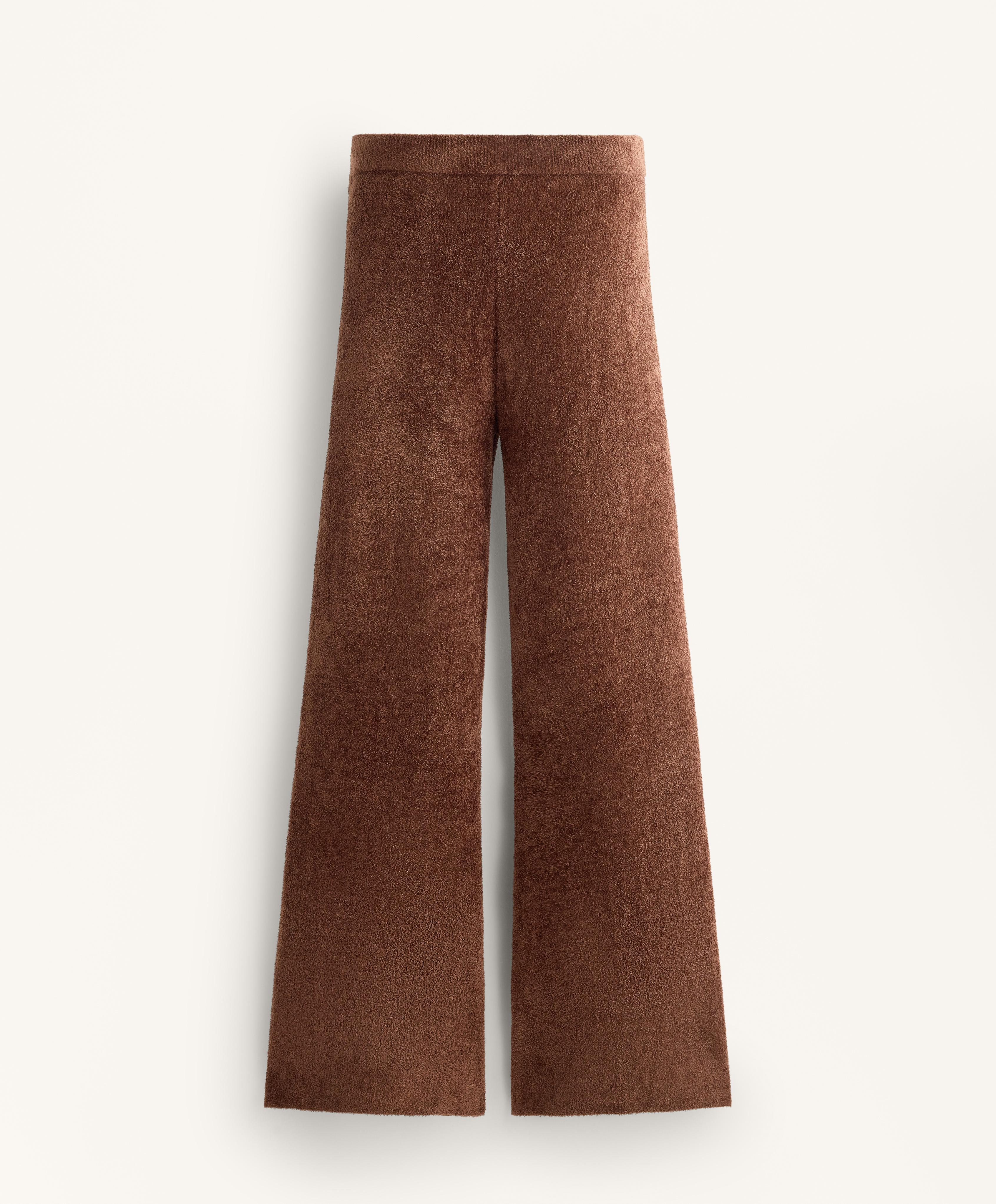 OYSHO Плотные расклешенные брюки из синели, коньячный