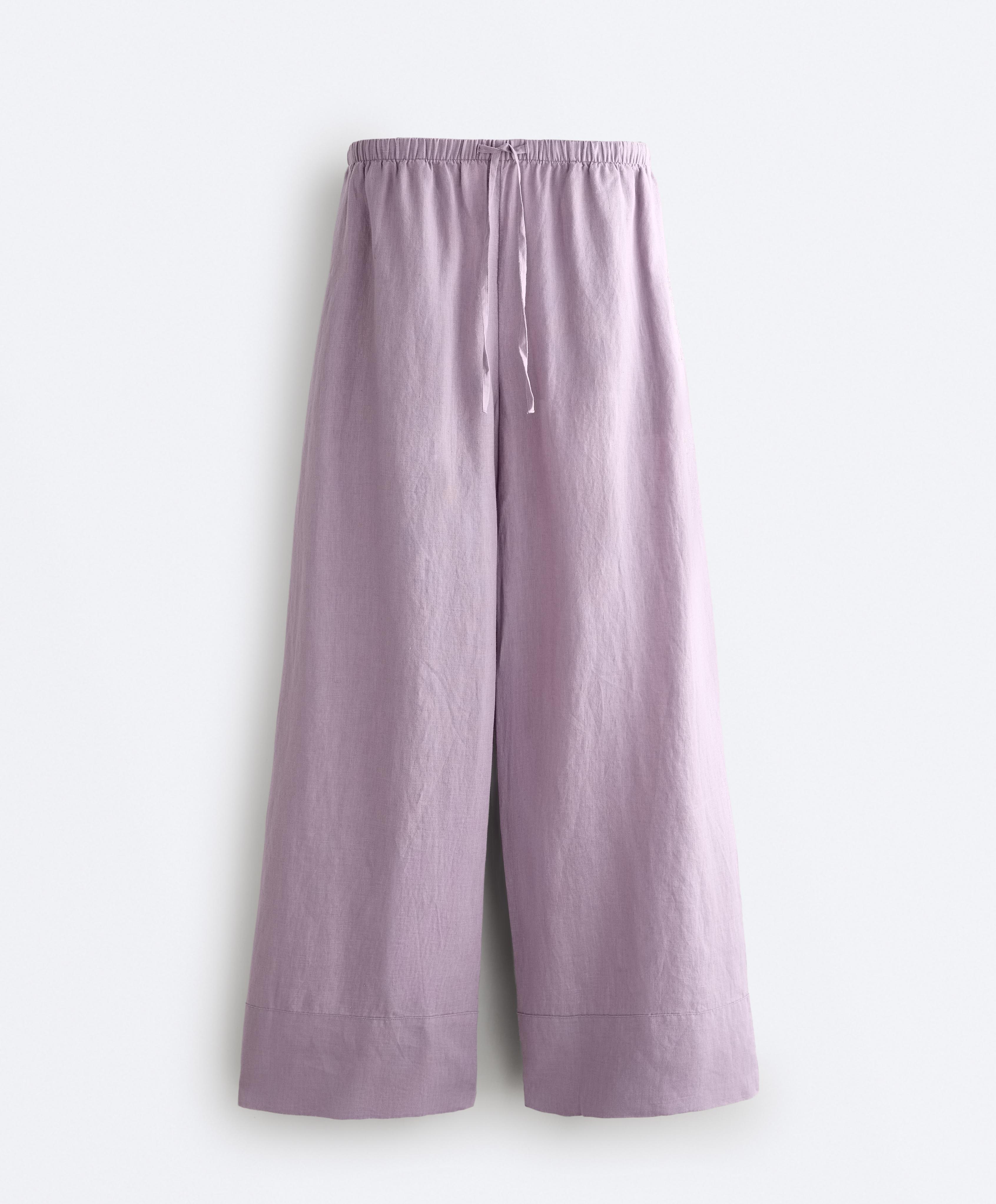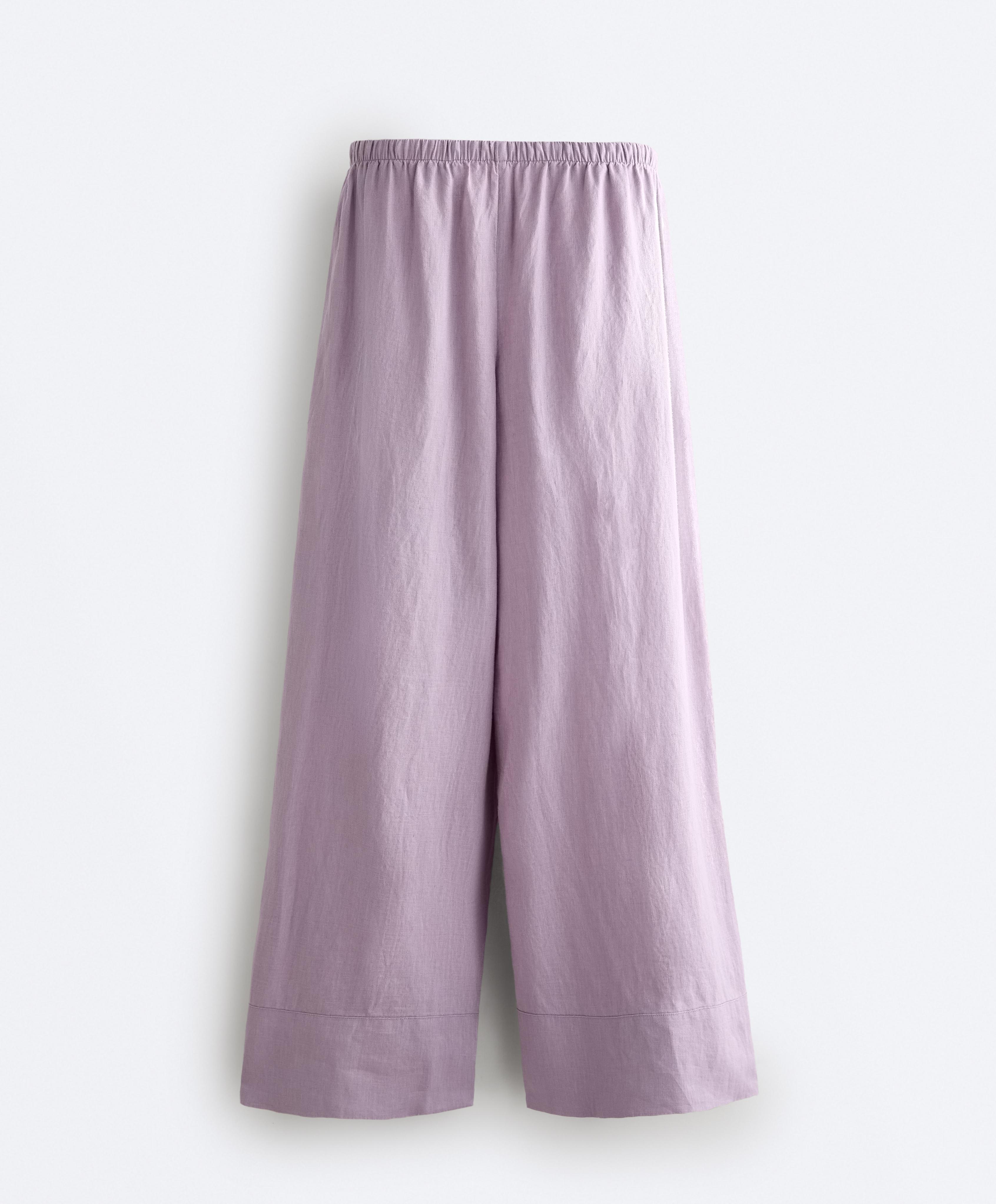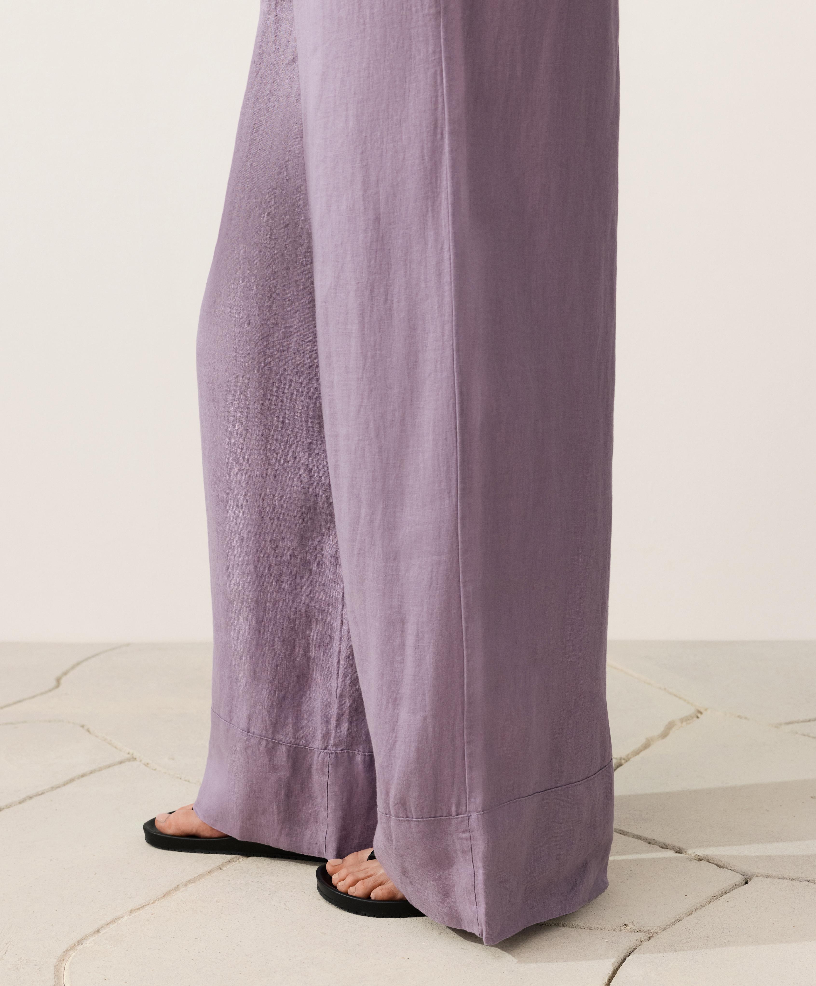 OYSHO Прямые брюки из 100% льна с декоративной строчкой, сиреневый