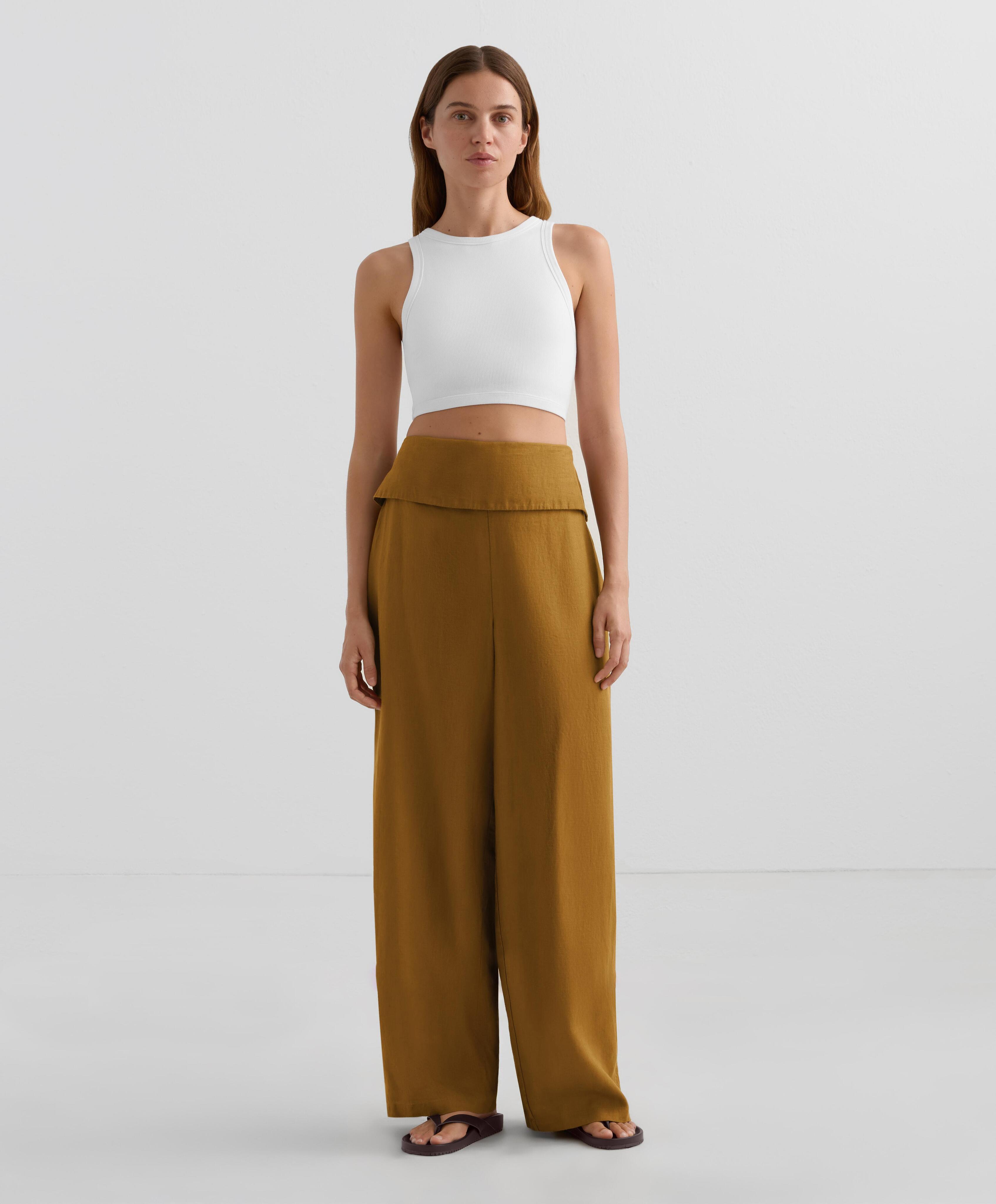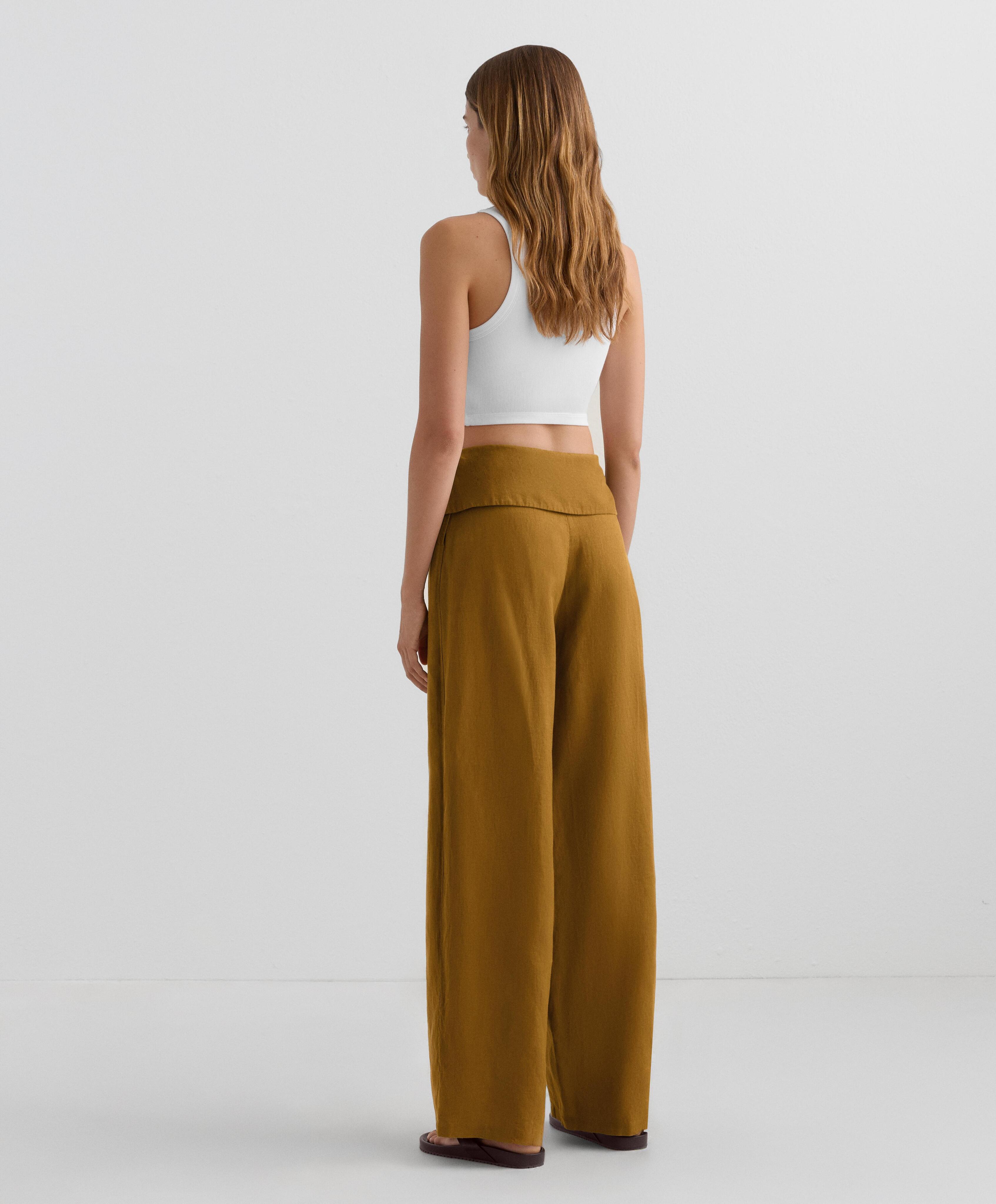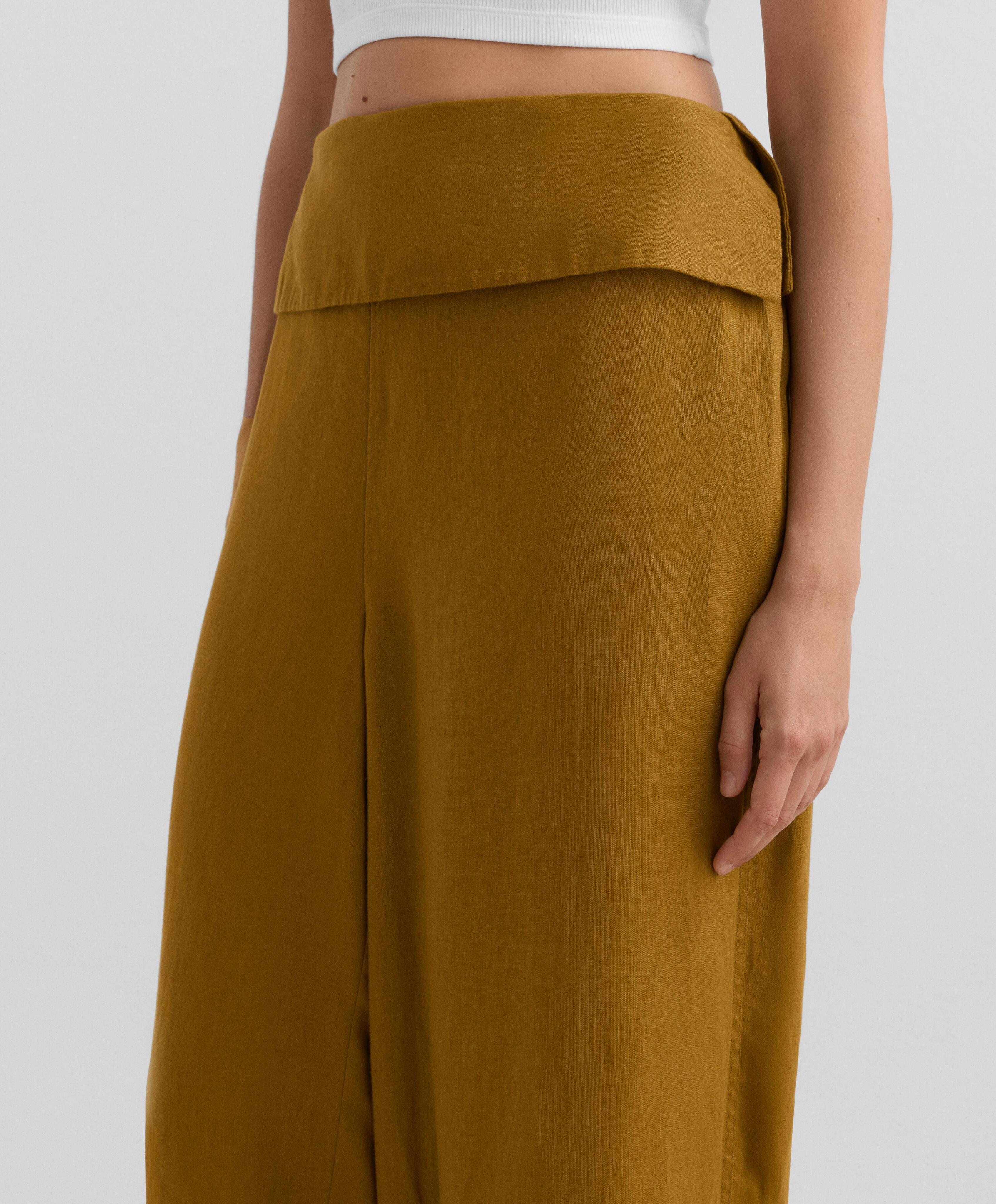 OYSHO Прямые брюки из 100% льна с подвернутым поясом, горчичный