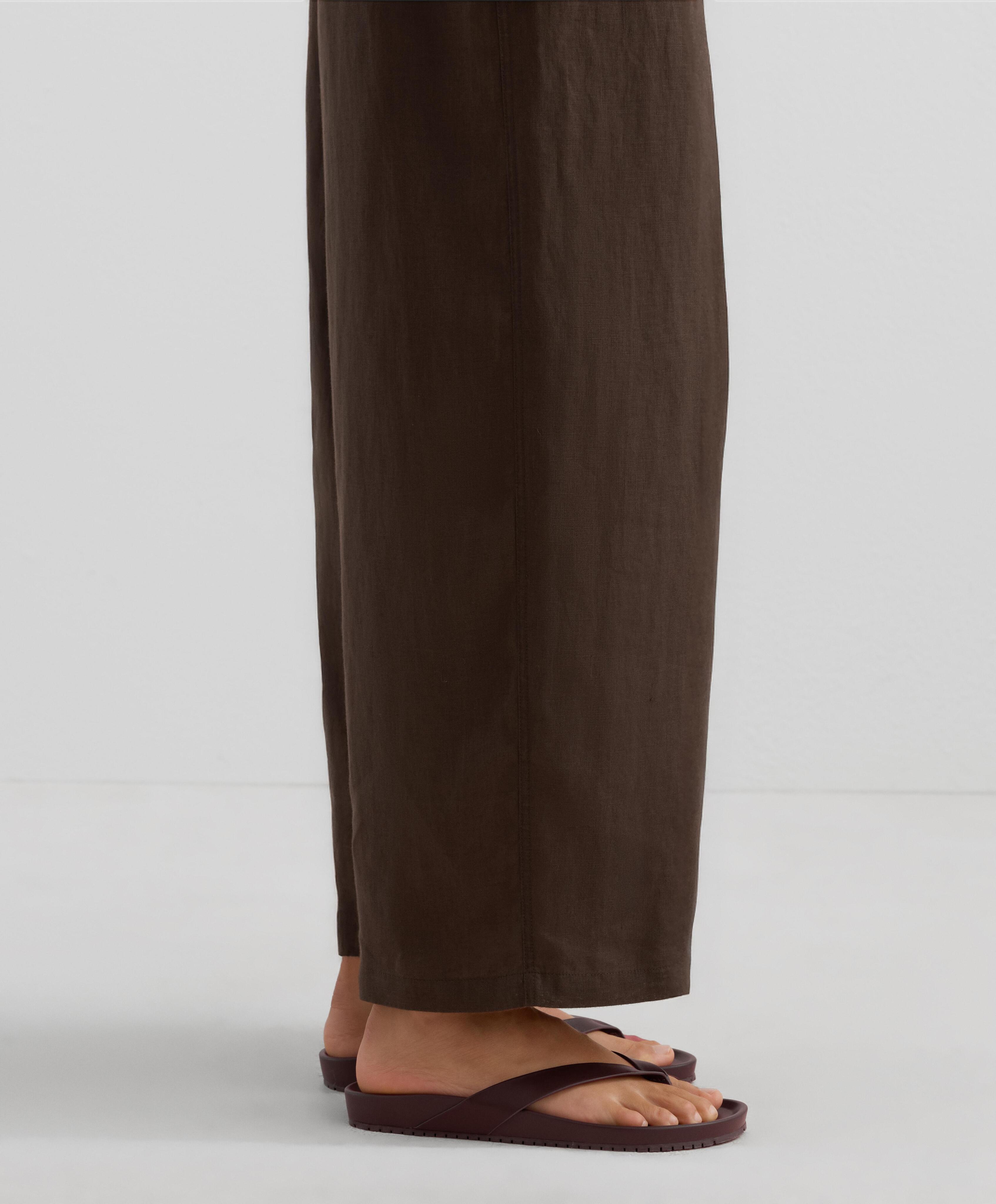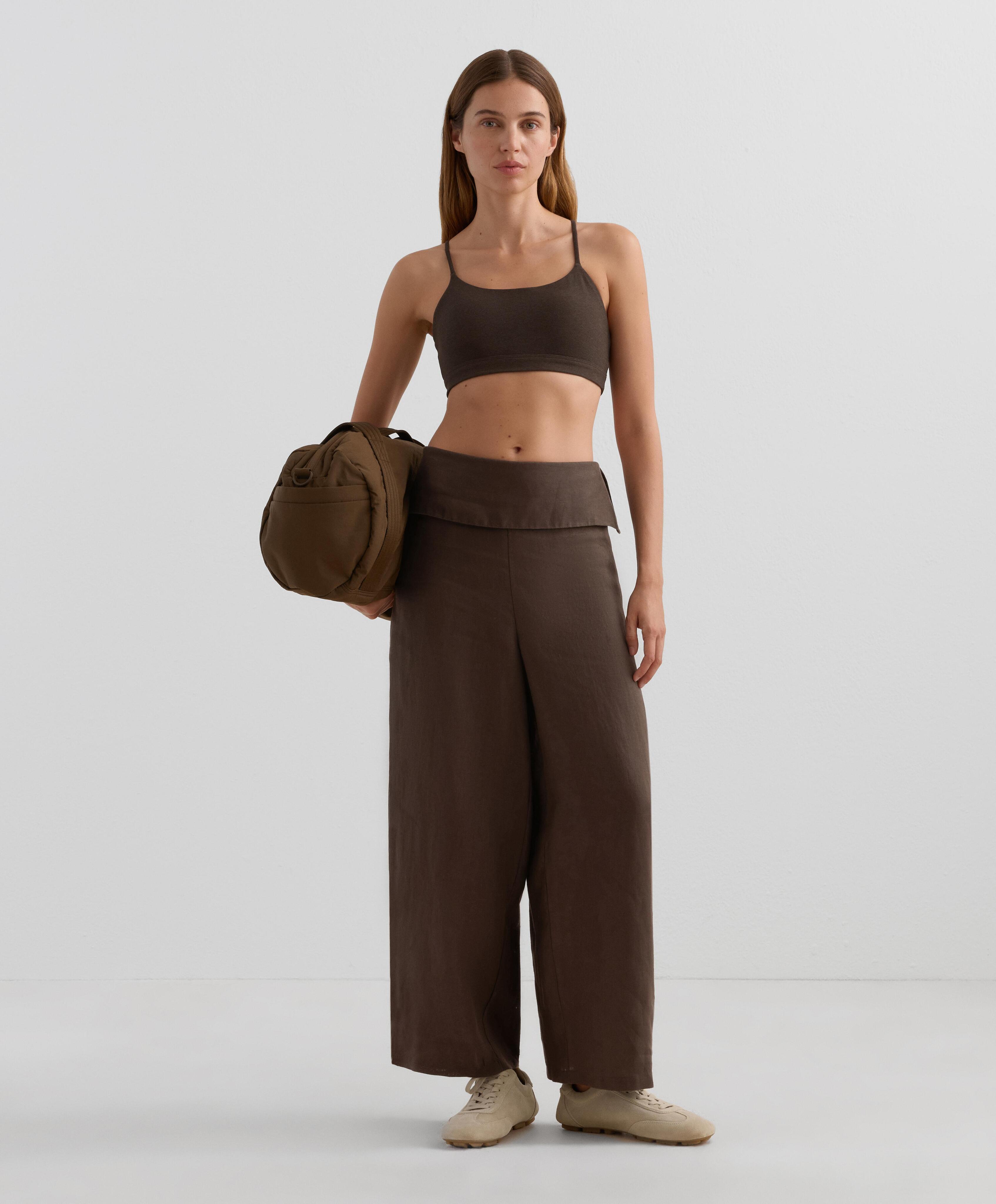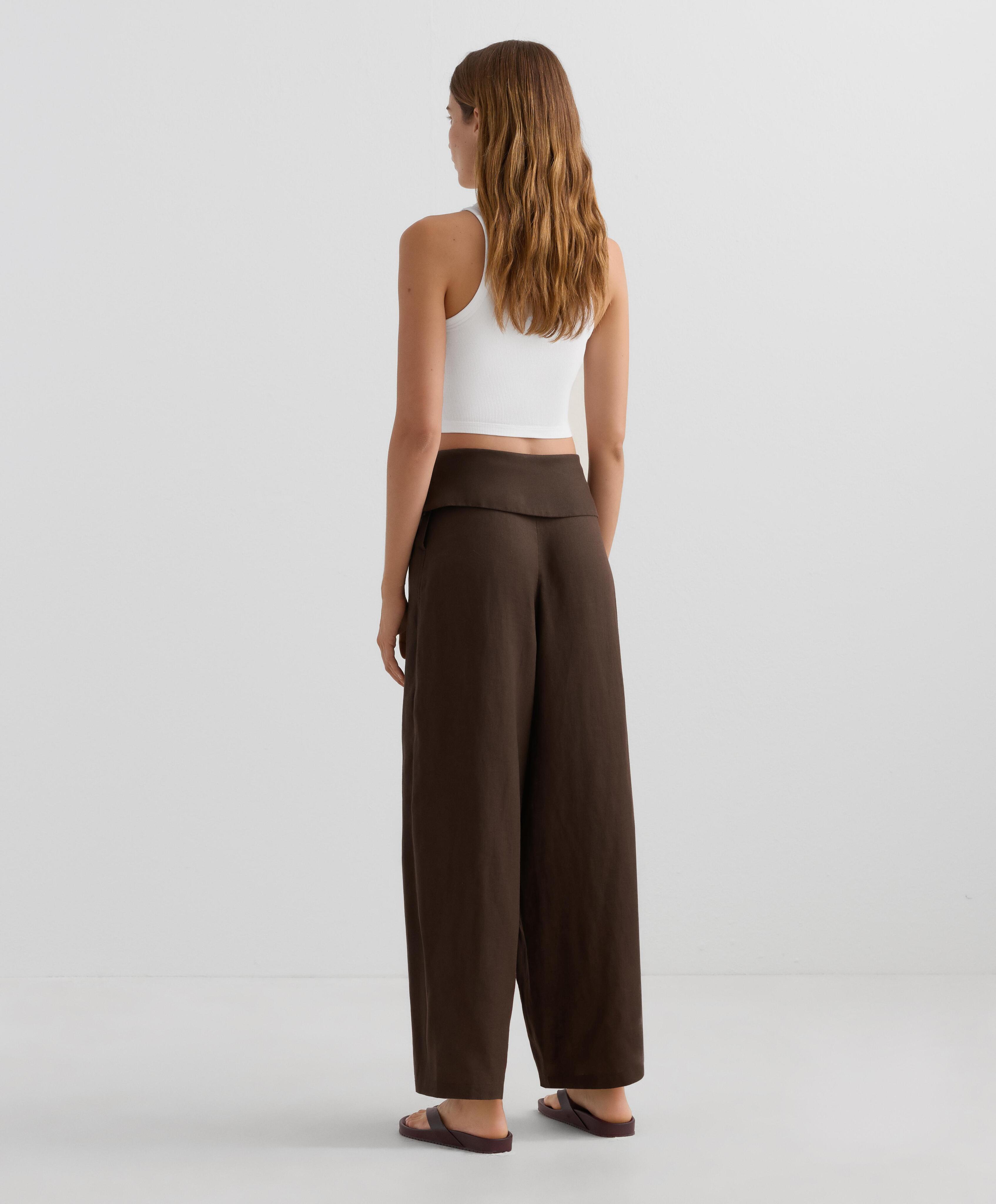 OYSHO Прямые брюки из 100% льна с подвернутым поясом, темно-коричневый