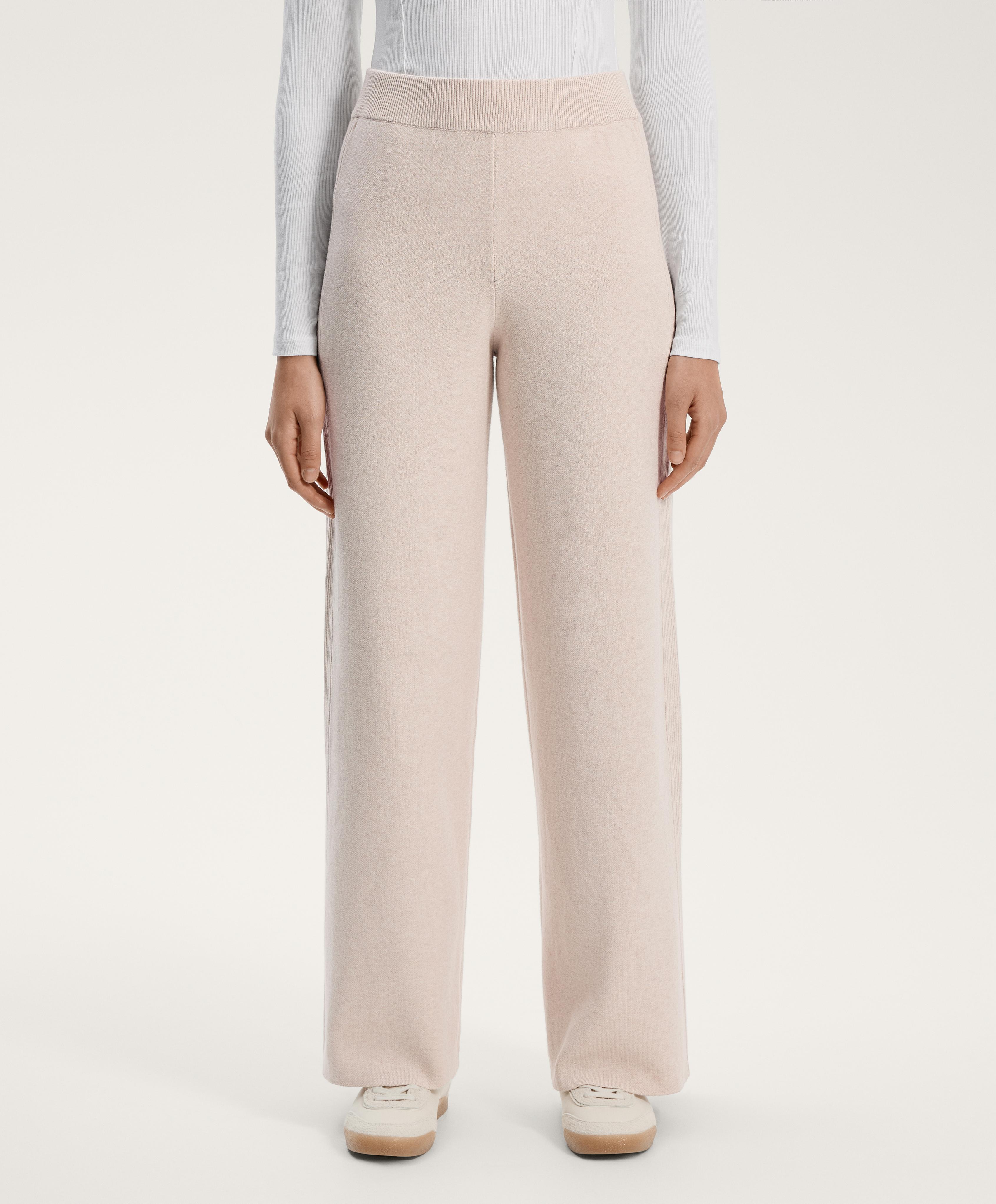 Брюки прямого покроя с регулируемой талией. Трикотажная ткань с резинкой по бокам.