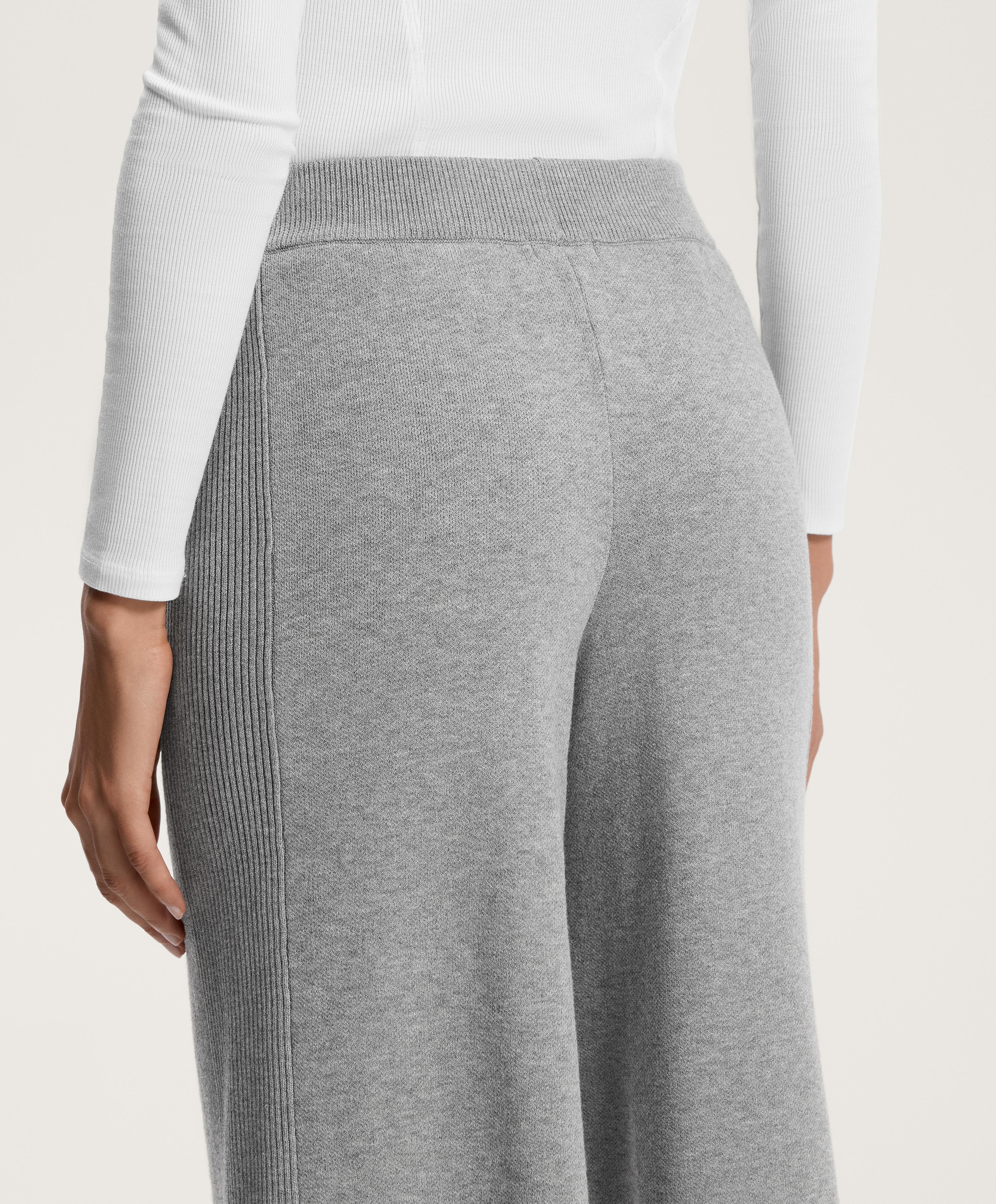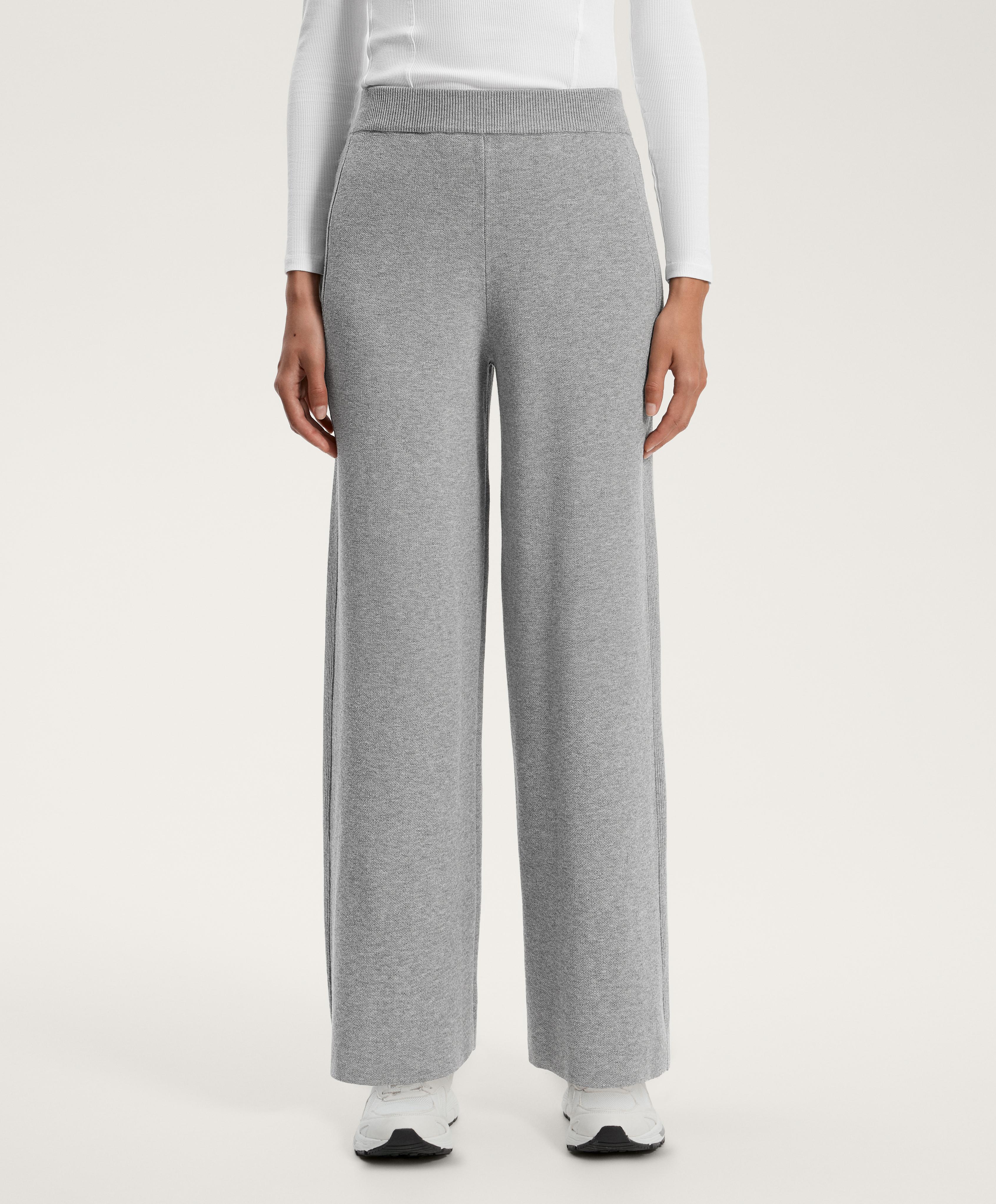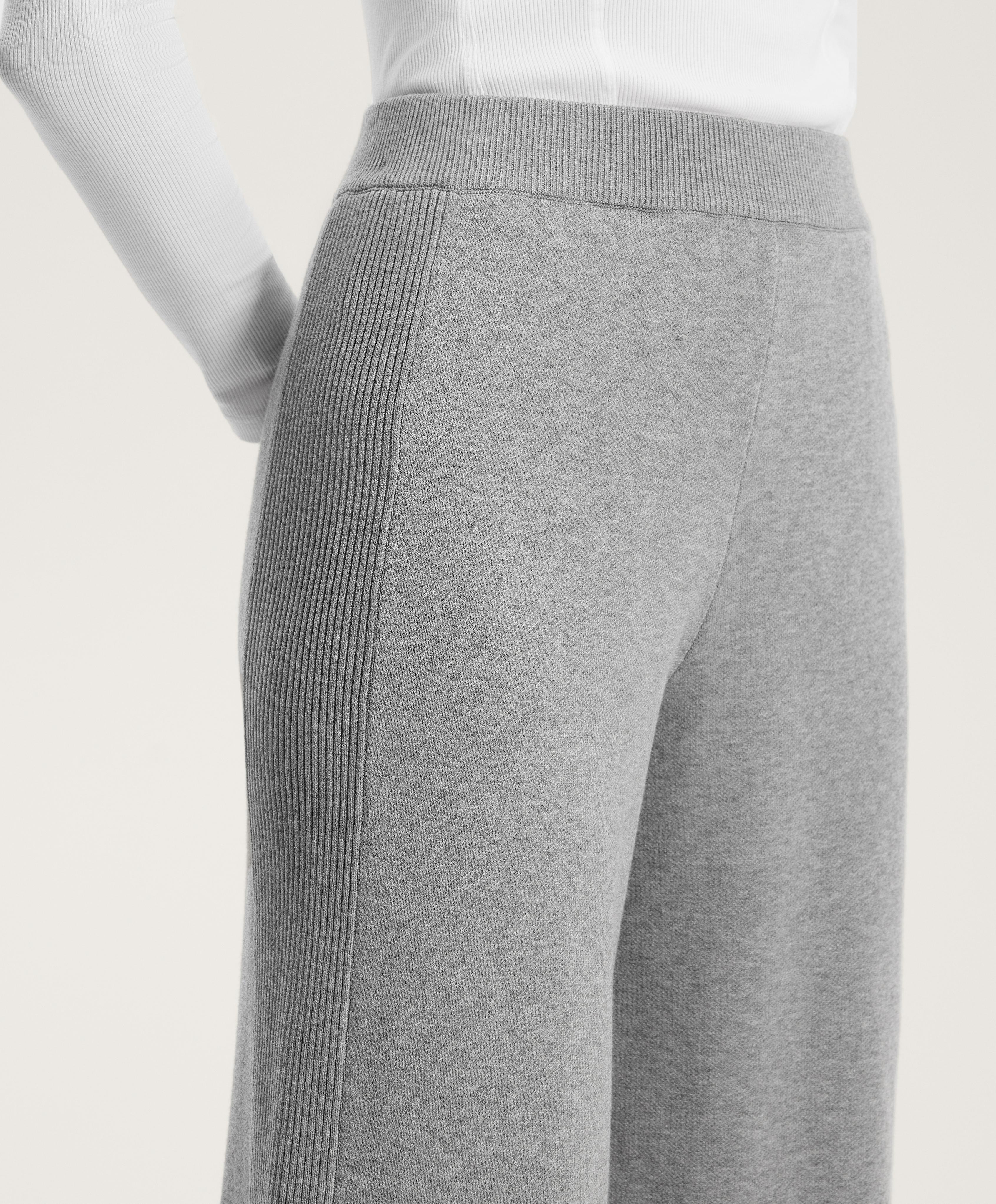 Брюки прямого покроя с регулируемой талией. Трикотажная ткань с резинкой по бокам.