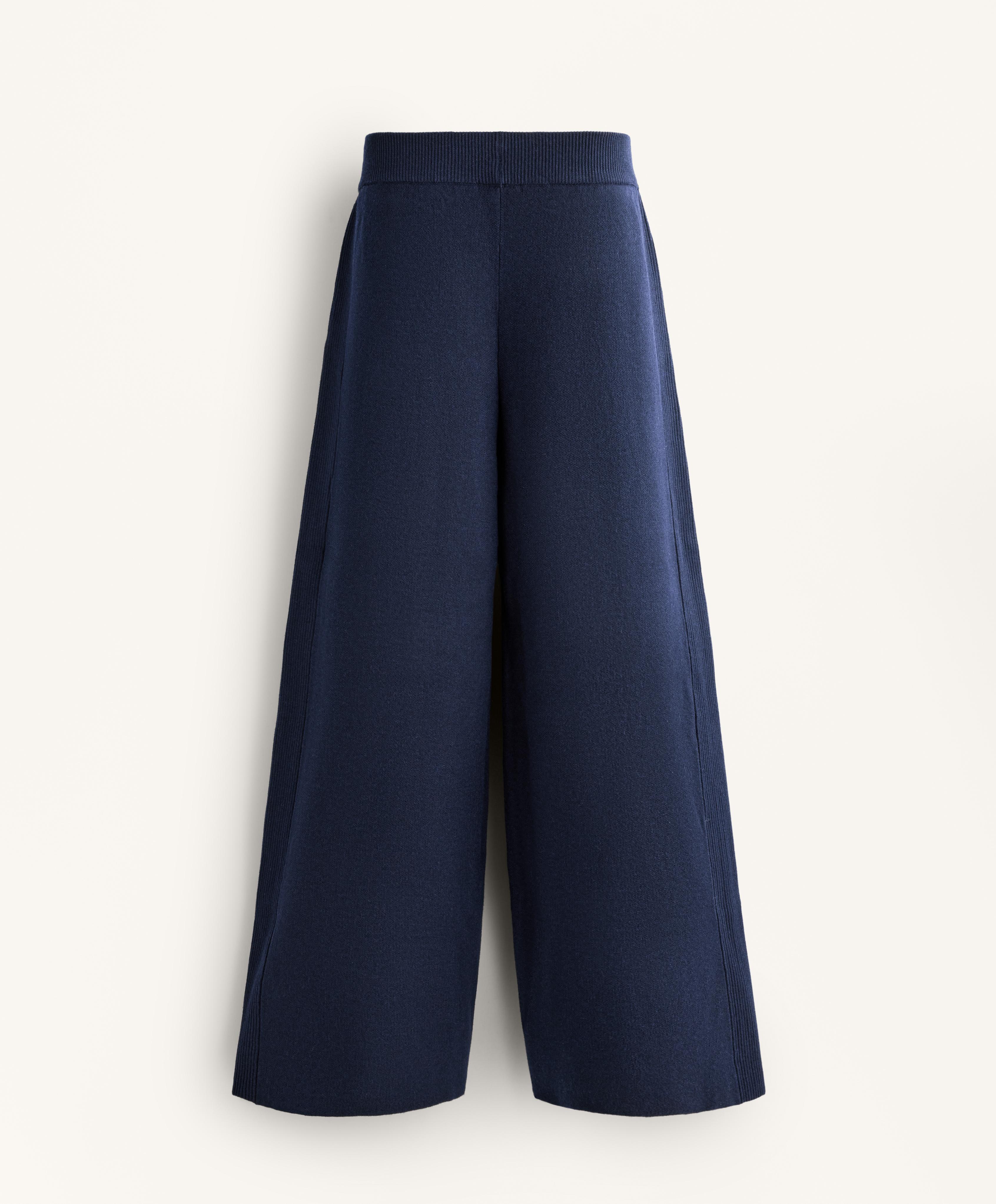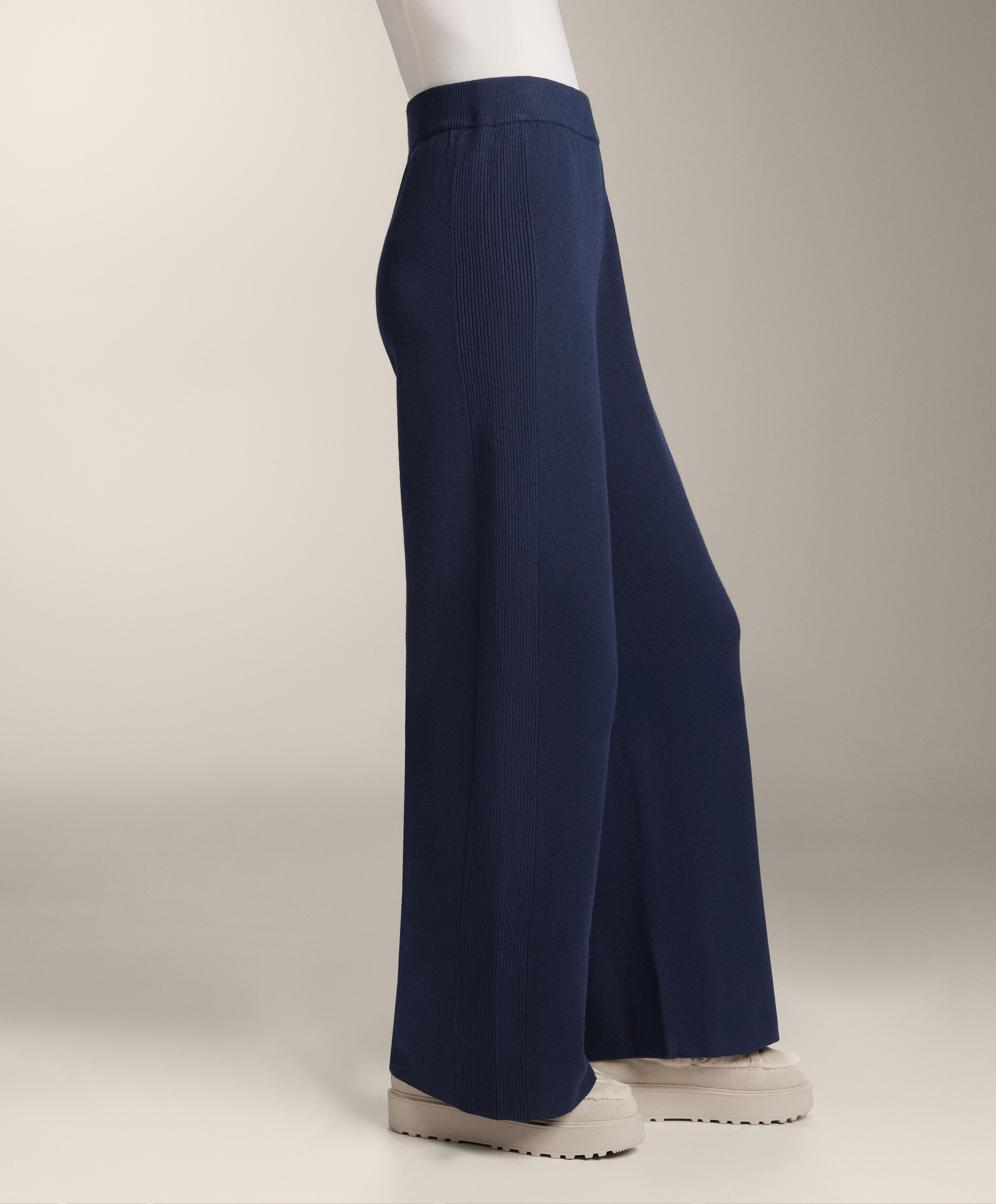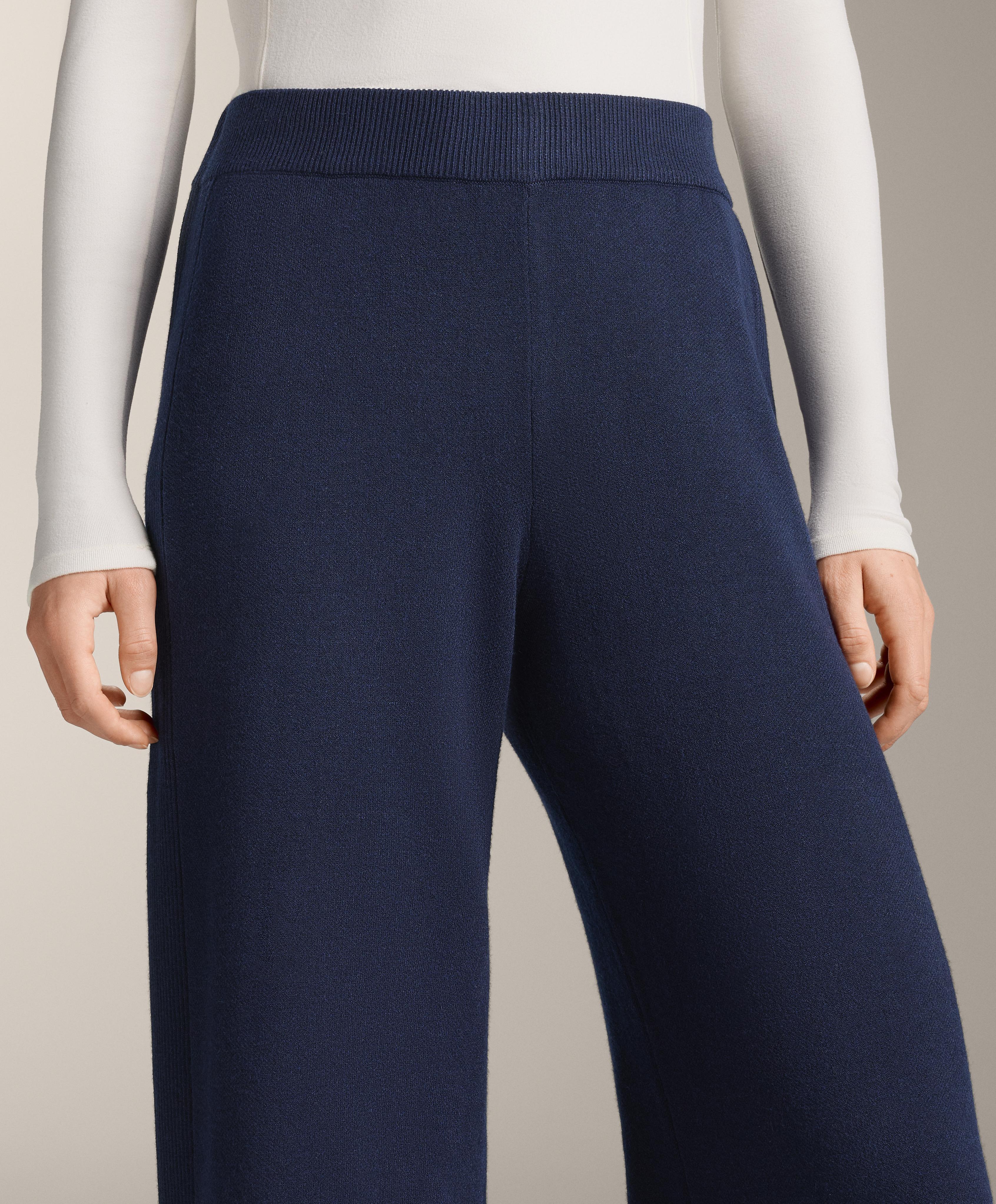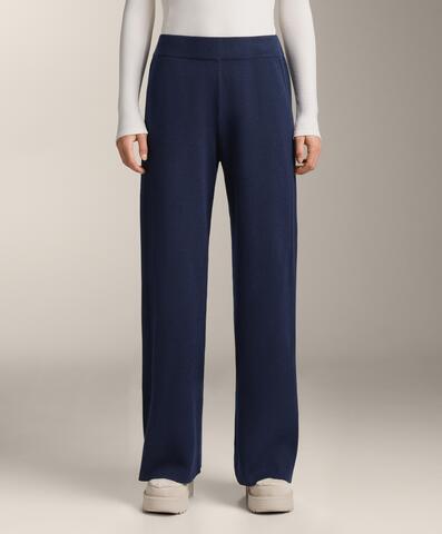 Брюки прямого покроя с регулируемой талией. Трикотажная ткань с резинкой по бокам.
