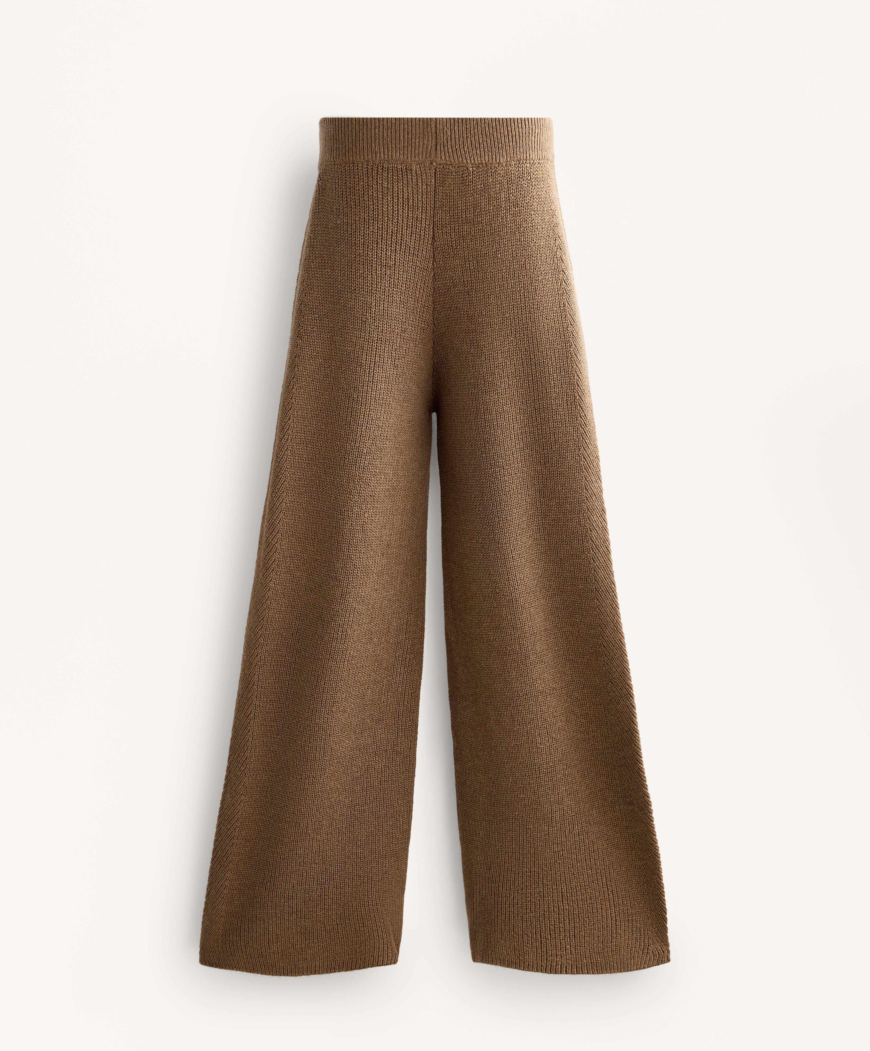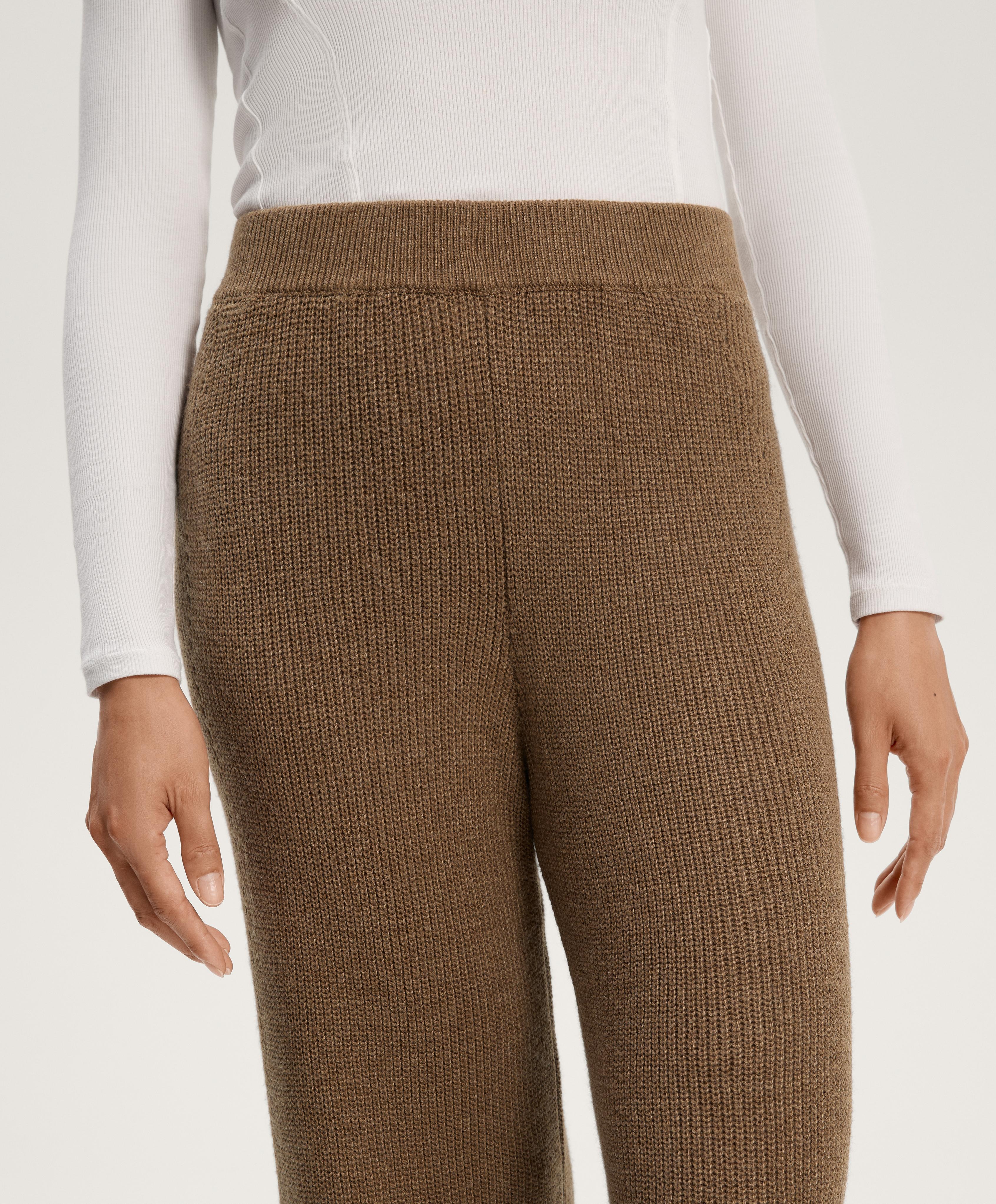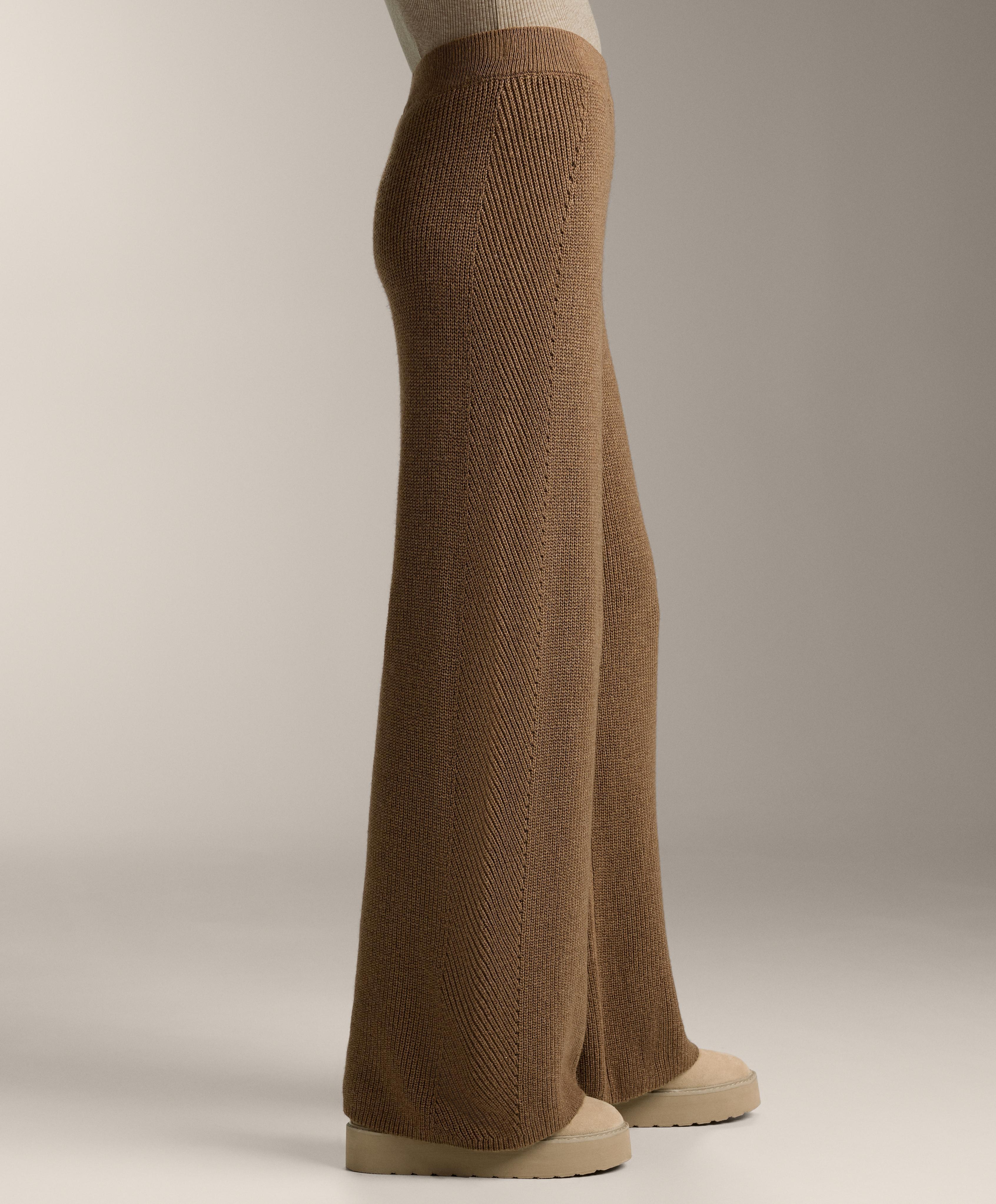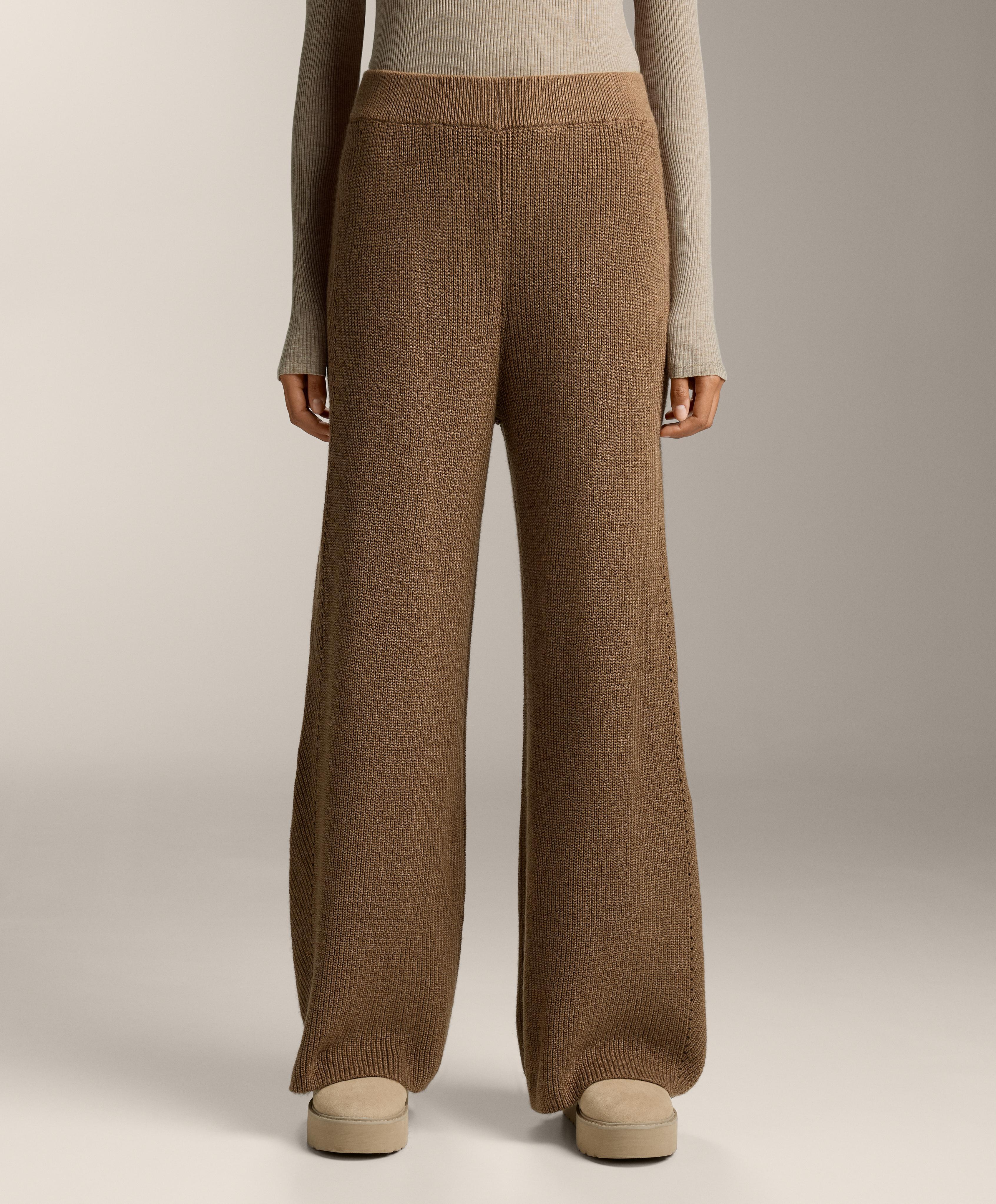 Прямые вязаные брюки с регулируемым эластичным поясом.