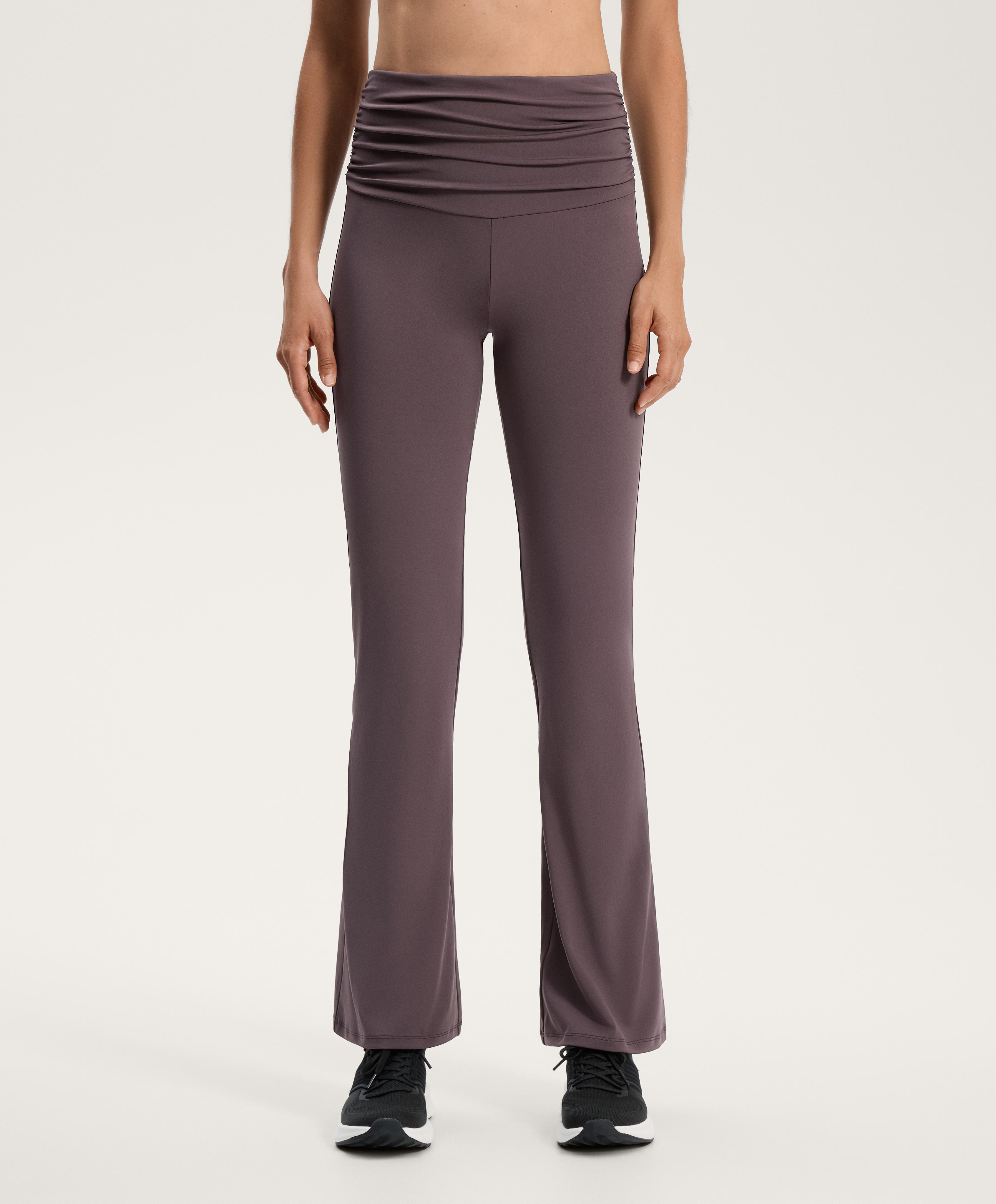 Брюки Comfortlux с высокой талией и расклешенным низом из мягкой, ворсистой ткани, обеспечивающей комфорт без стеснения движений. Драпировка на талии. Дышащая, высокопрочная, быстросохнущая ткань.