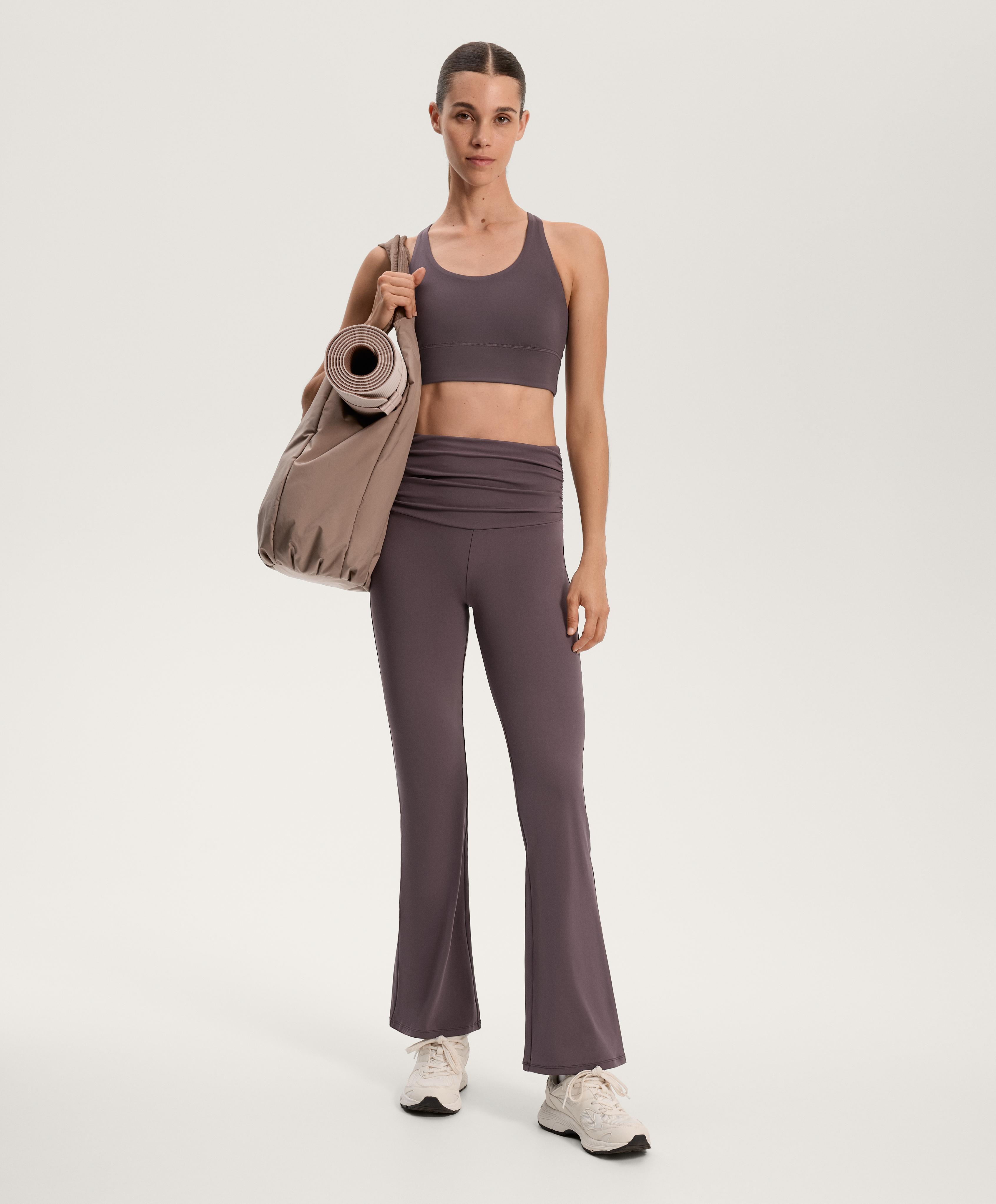 OYSHO Расклешенные брюки Comfortlux с высокой посадкой и сборками на талии, серо-фиолетовый