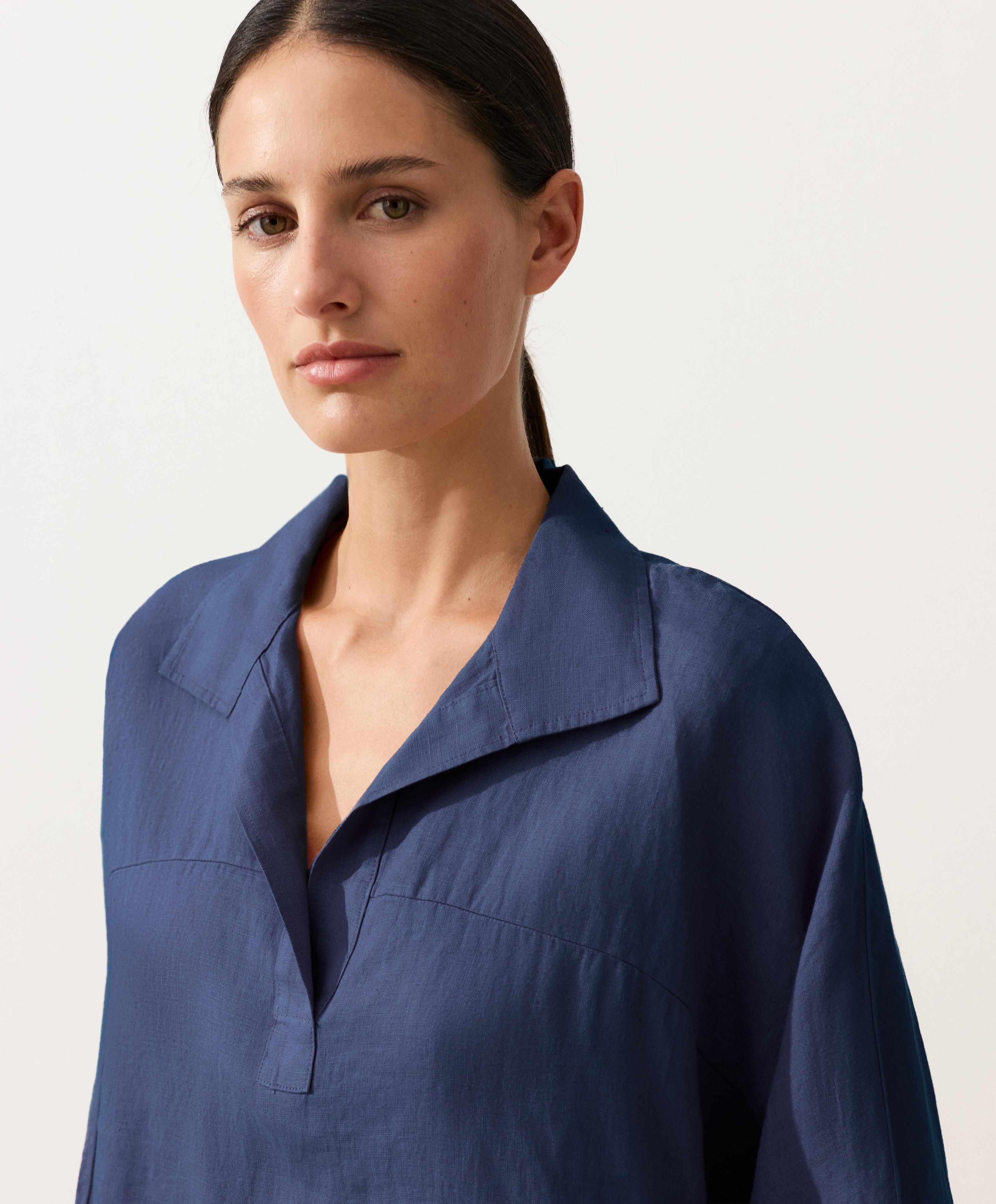 Рубашка-поло оверсайз с длинными рукавами. Материал: 100%-й лен.